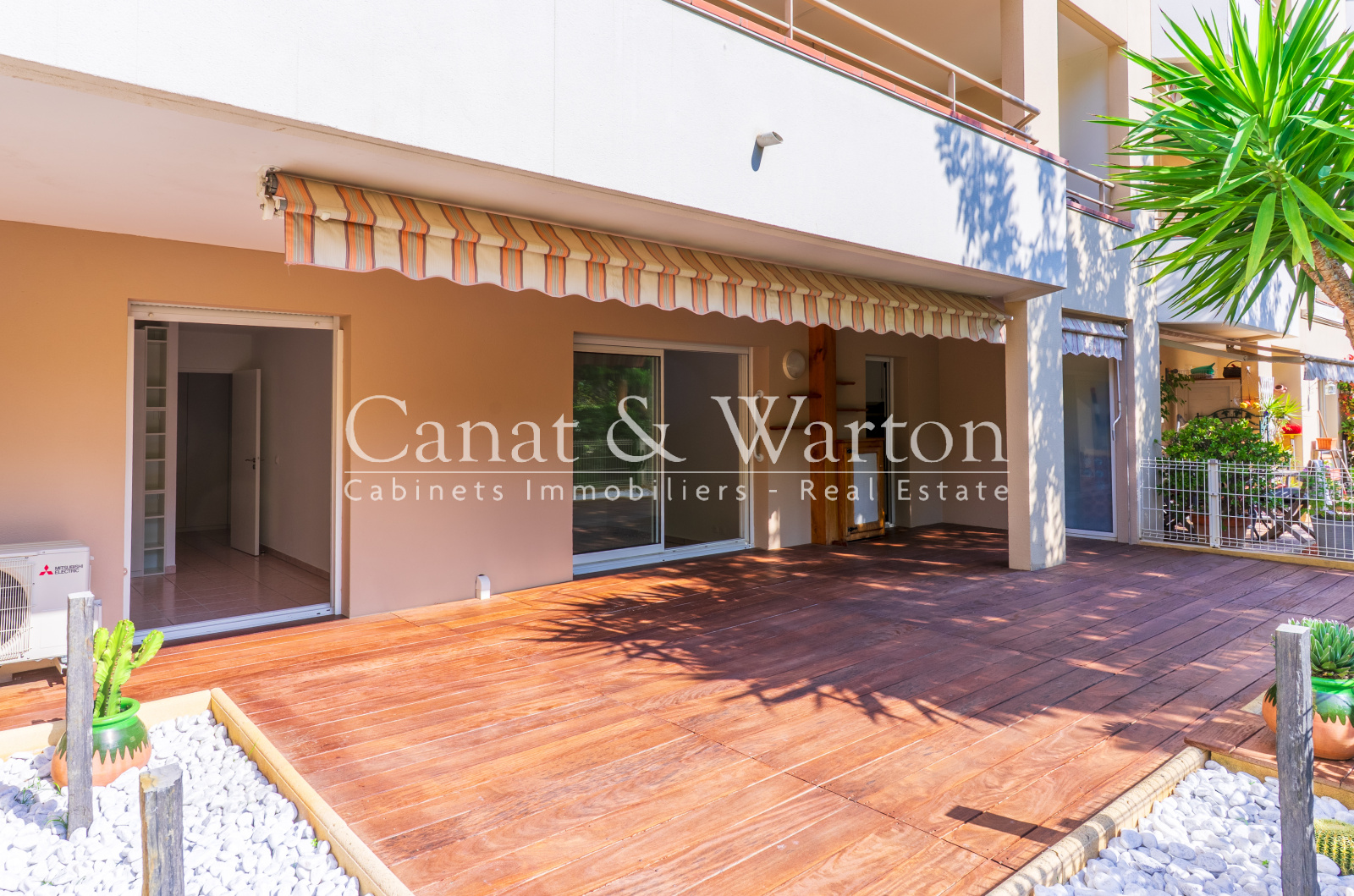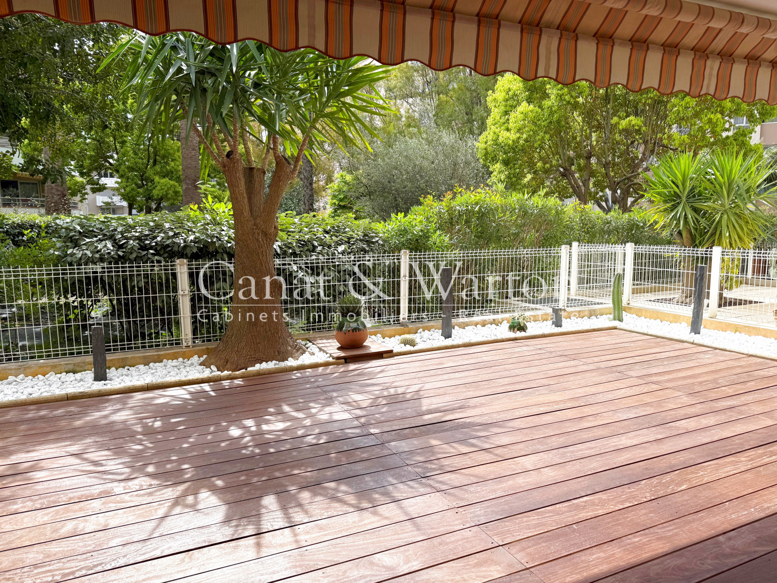 Hyères, centre-ville, en RdJ d'une résidence de bon standing, très bel emplacement, toutes commodités à pied, pour cet appartement de 51 m² ouvert sur vaste terrasse de 44 m² en exposition Sud/Est. L'exterieur est très agréable avec sa vue sur le jardin arboré, au calme, loin du bruit de la ville. Entièrement rénové, il offre salon-séjour, cuisine indépendante entièrement équipée avec espace cellier-buanderie, 1 chambre avec placard, le tout donnant sur l'exterieur, salle d'eau avec Wc, cave. Rare à la vente ! Idéal pour profiter de la ville en toute simplicité. Possibilité d'acquérir un garage de 13 m² pour le prix de 40.000€, ou bien de le louer pour 150€/mois.