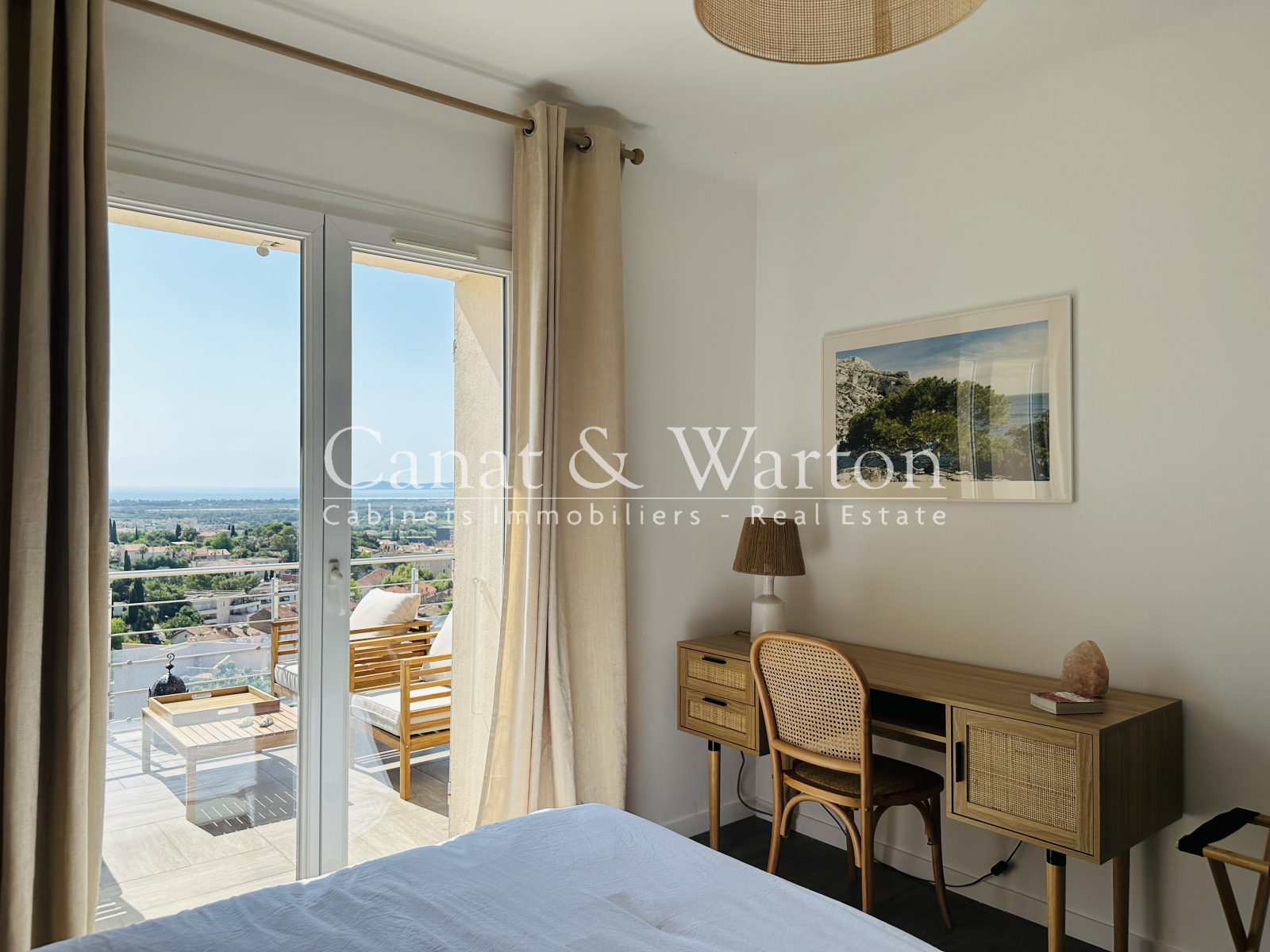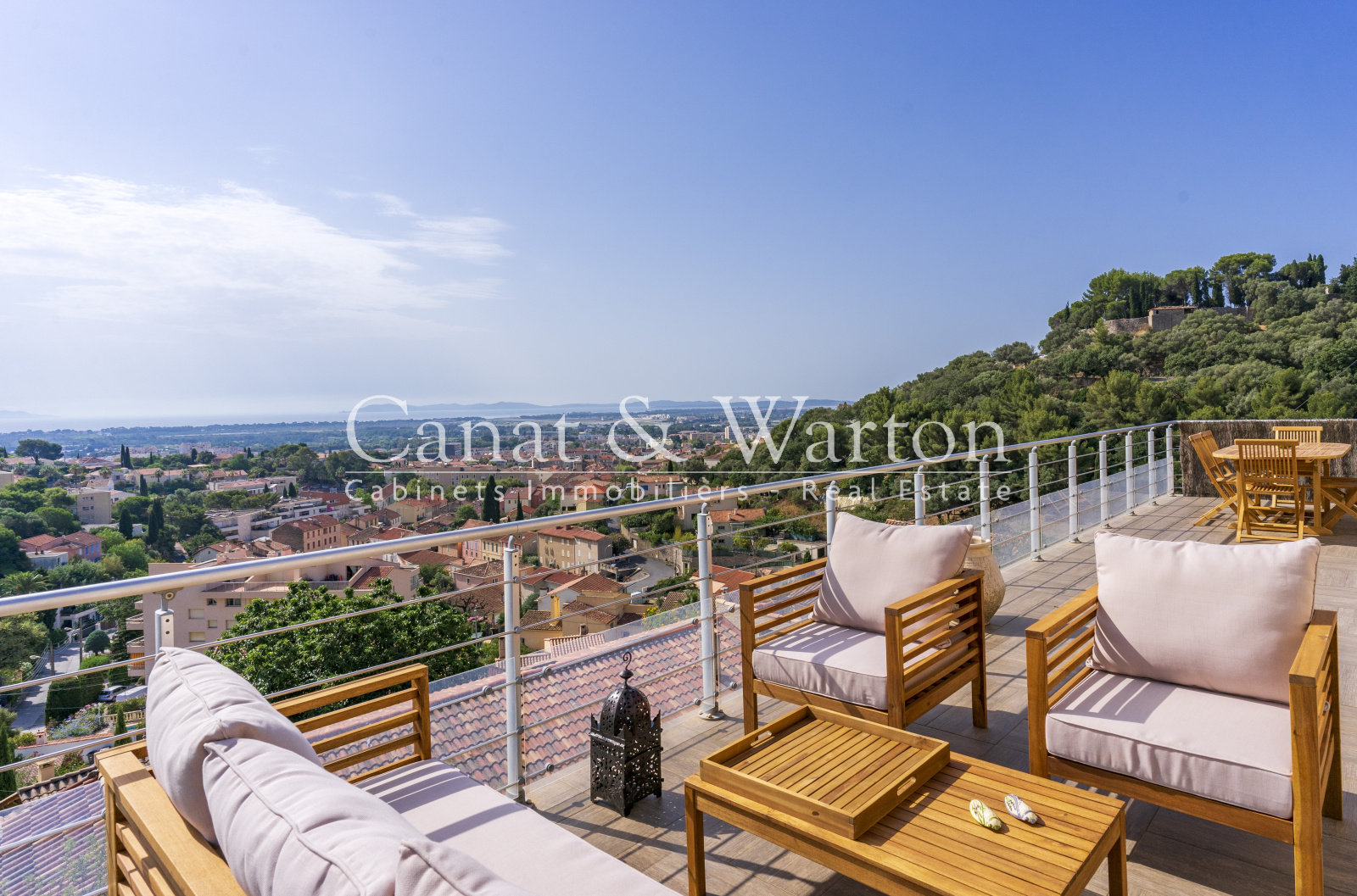 Exclusivité ! Hyères Paradis, au calme, vue exceptionnelle et panoramique sur la mer, la ville, le château pour ce superbe appartement T3 de 72m² ouvert sur 2 terrasses, entièrement rénové et climatisé. Il se compose d'un beau séjour avec cheminée, d'une cuisine américaine entièrement équipée, 2 chambres, une salle de bains, garage et stationnement 2 places. Balades nature, Place Clémenceau à 12 minutes à pied.