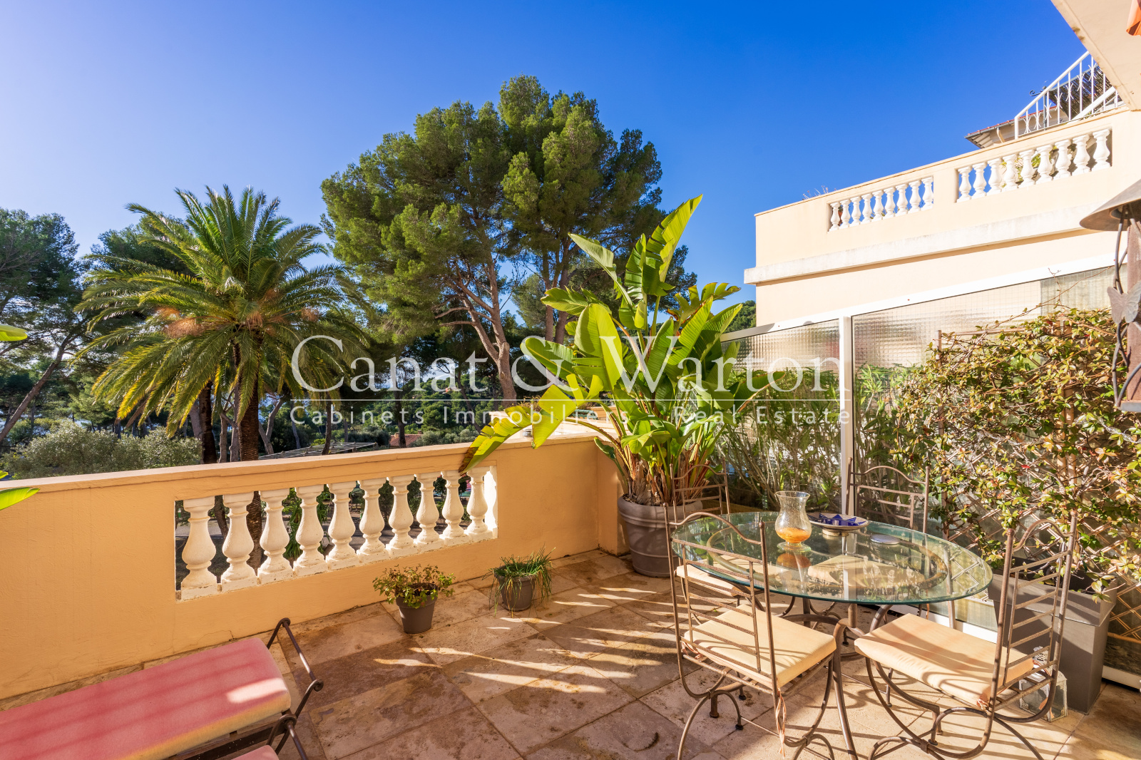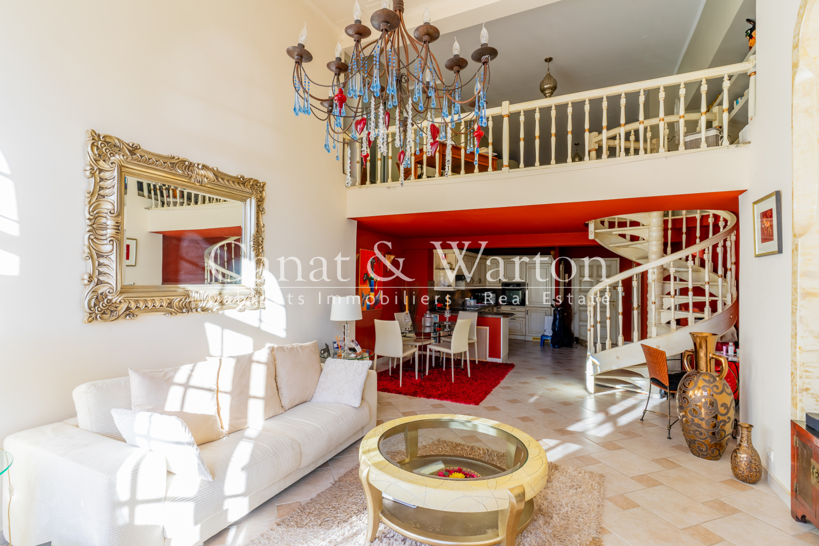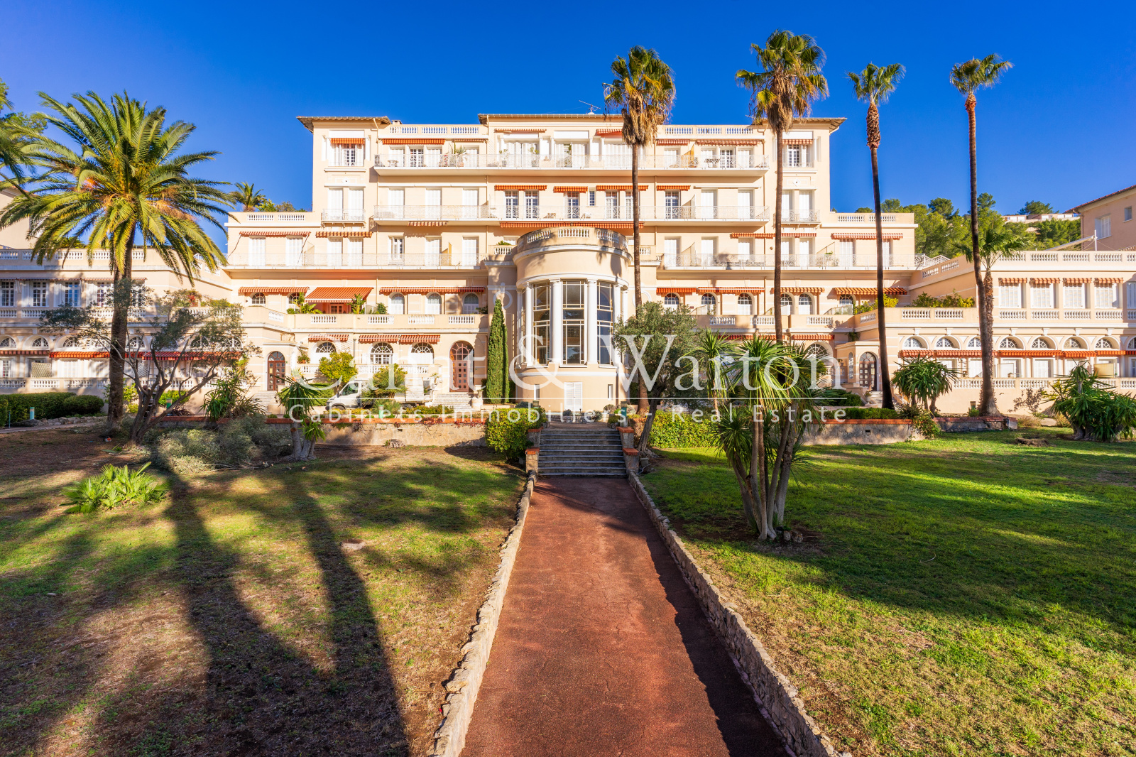 Hyères dans une résidence de très bon standing de la fin du 19ème siècle avec deux hectares de parc, un terrain de tennis et une piscine en libre accès. Appartement de Maître en duplex d'environ 90m² comprenant un très beau séjour avec cuisine américaine donnant sur une charmante terrasse avec vue mer et parc, à l'étage une chambre salle de bains-salle d'eau + studio indépendant.
