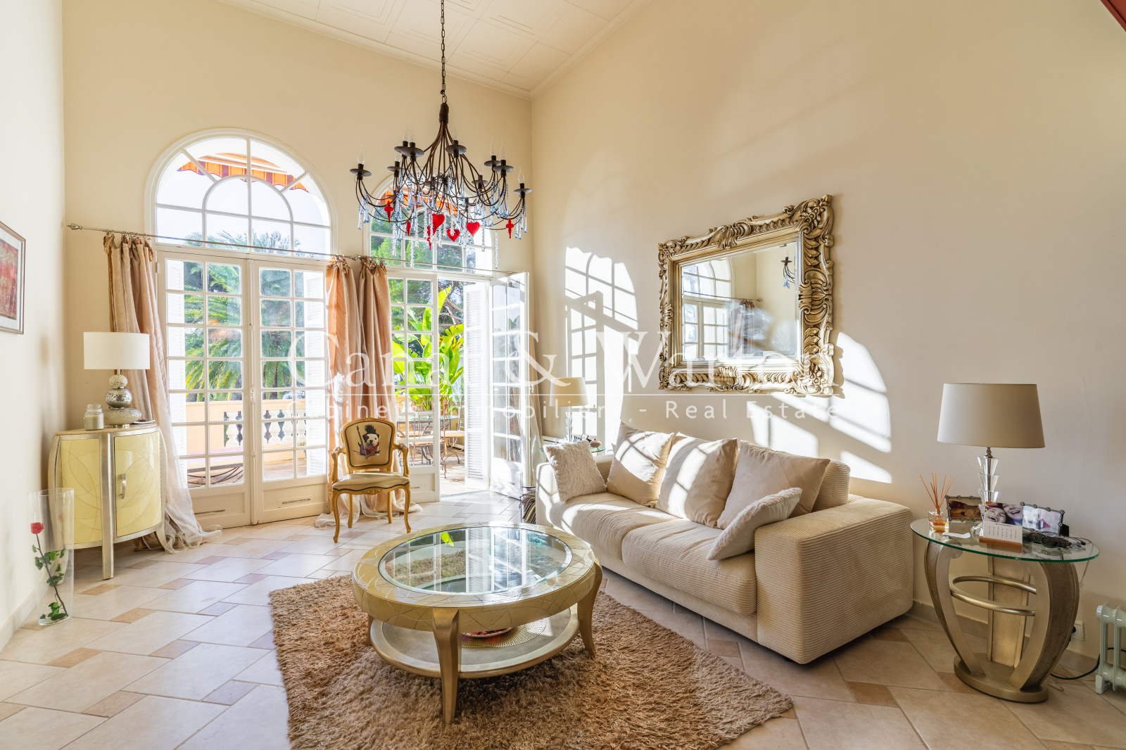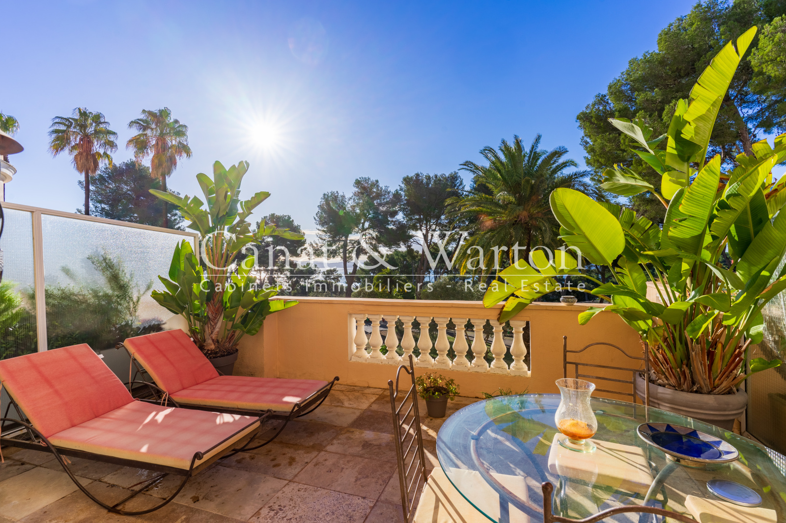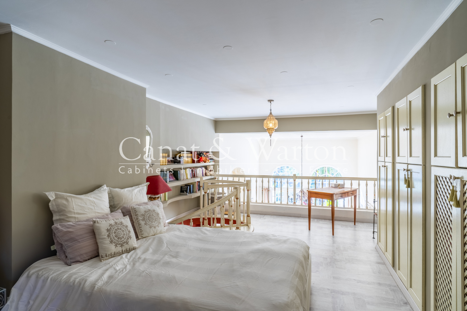 Hyères dans une résidence de très bon standing de la fin du 19ème siècle avec deux hectares de parc, un terrain de tennis et une piscine en libre accès. Appartement de Maître en duplex d'environ 90m² comprenant un très beau séjour avec cuisine américaine donnant sur une charmante terrasse avec vue mer et parc, à l'étage une chambre salle de bains-salle d'eau + studio indépendant.