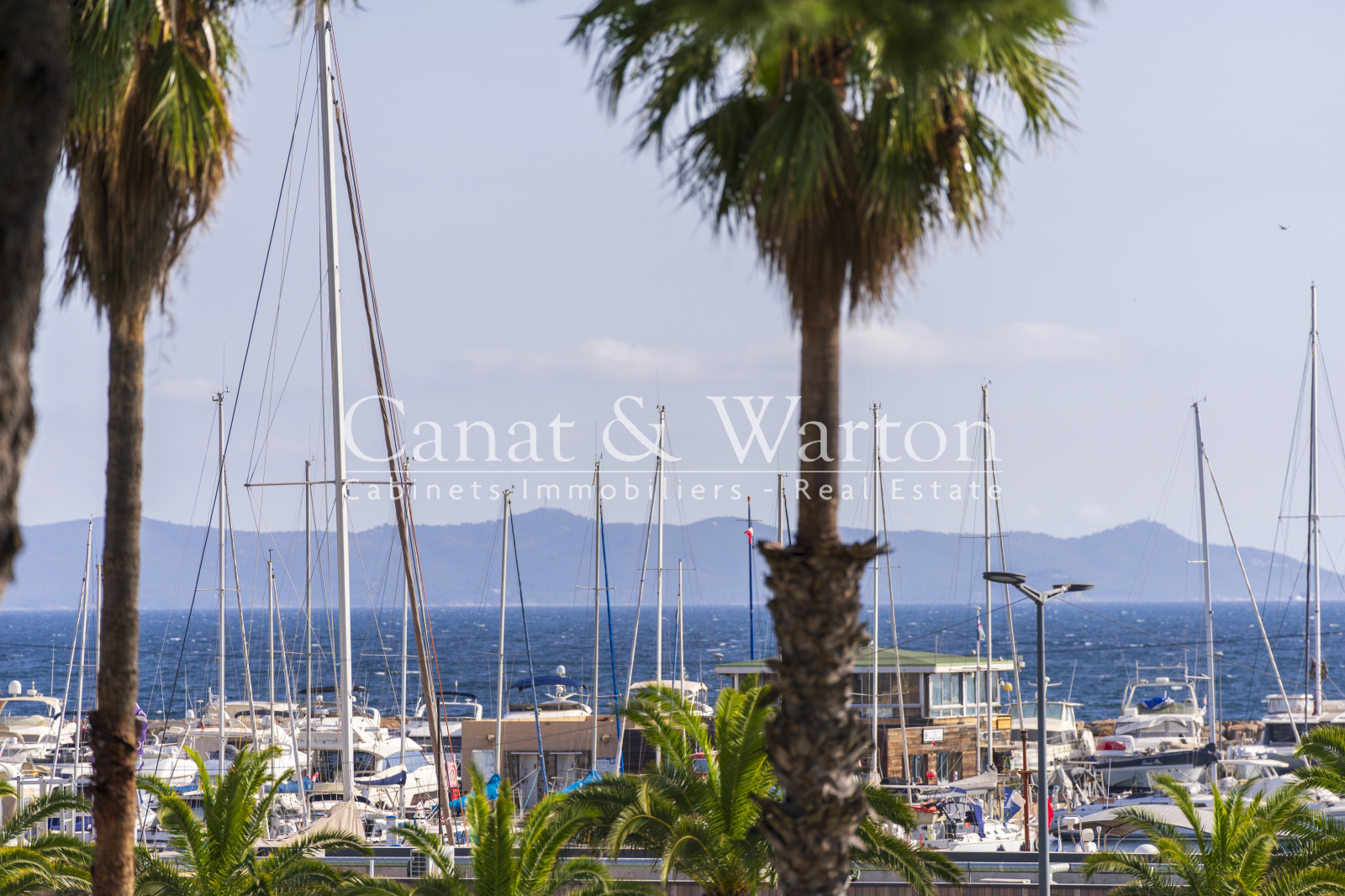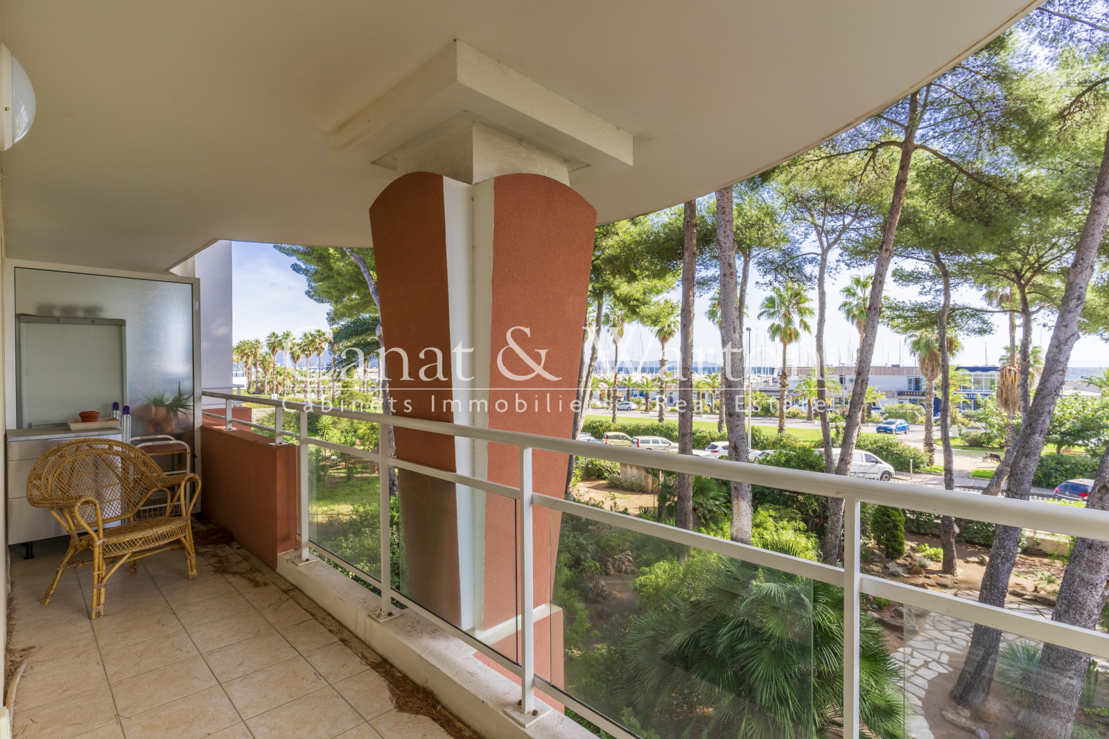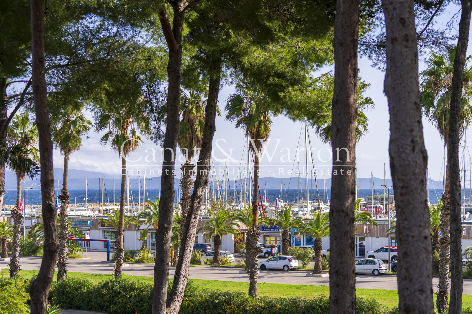 Hyères, bord de mer, au sein d'une résidence de très bon standing avec piscine, Appartement T3 en parfait état comprenant un beau séjour-salle à manger ouvert sur terrasse avec vue mer, marina et pinède, belle cuisine américaine aménagée et équipée, 2 chambres, chacune avec leur salle de bains et salle d'eau privative (douche à l'italienne), garage. Emplacement idéal proche des commodités et des plages.