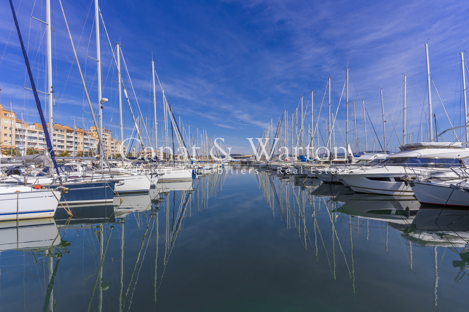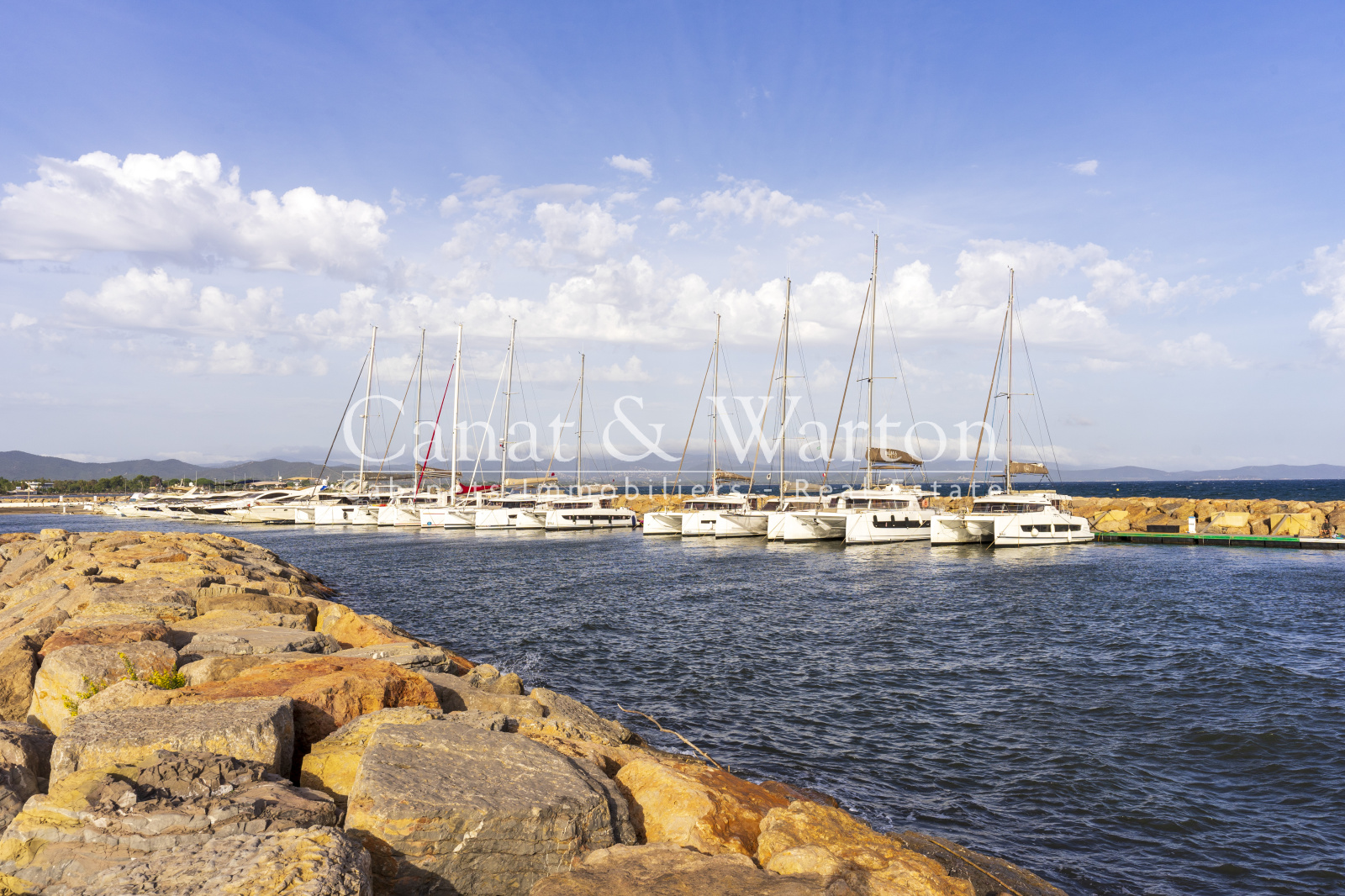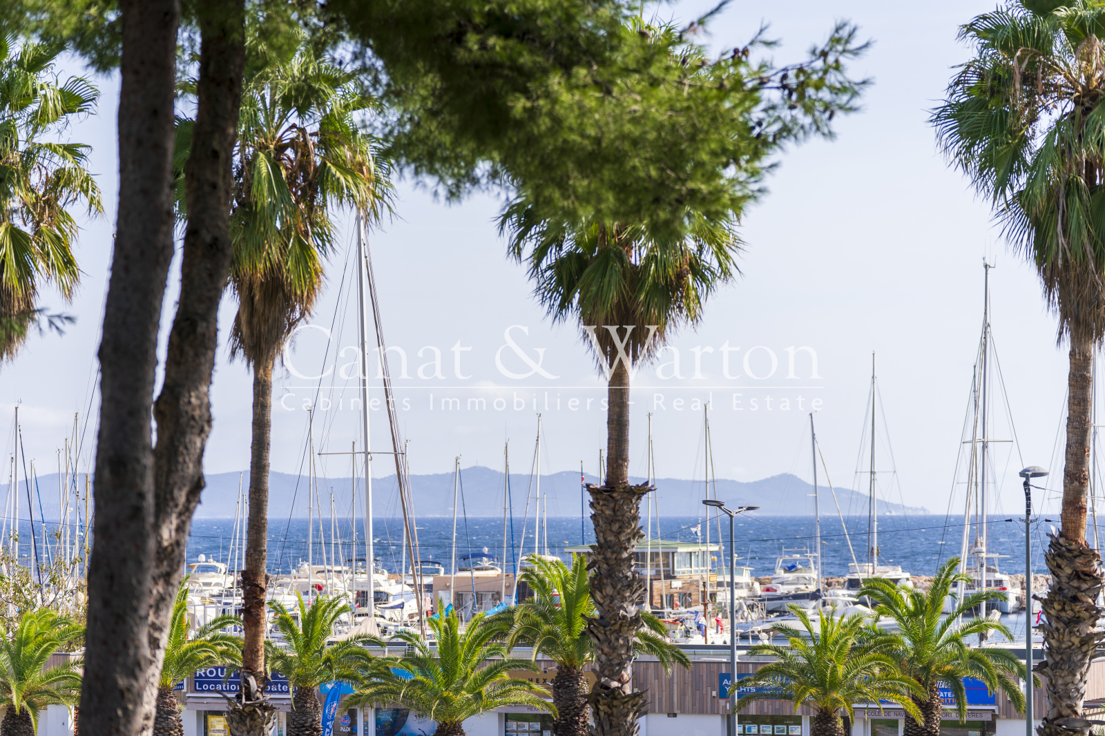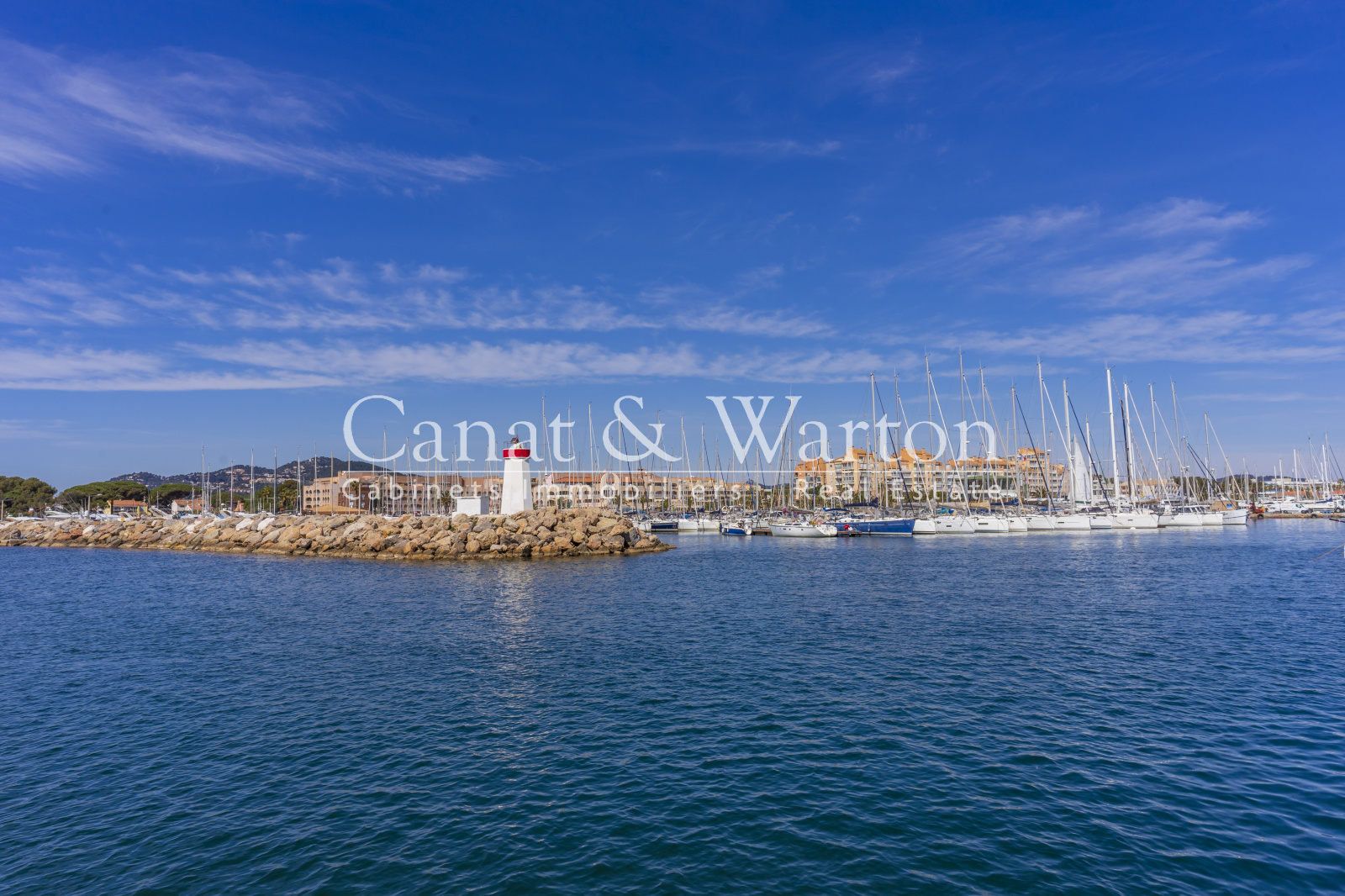 Hyères, bord de mer, au sein d'une résidence de très bon standing avec piscine, Appartement T3 en parfait état comprenant un beau séjour-salle à manger ouvert sur terrasse avec vue mer, marina et pinède, belle cuisine américaine aménagée et équipée, 2 chambres, chacune avec leur salle de bains et salle d'eau privative (douche à l'italienne), garage. Emplacement idéal proche des commodités et des plages.
