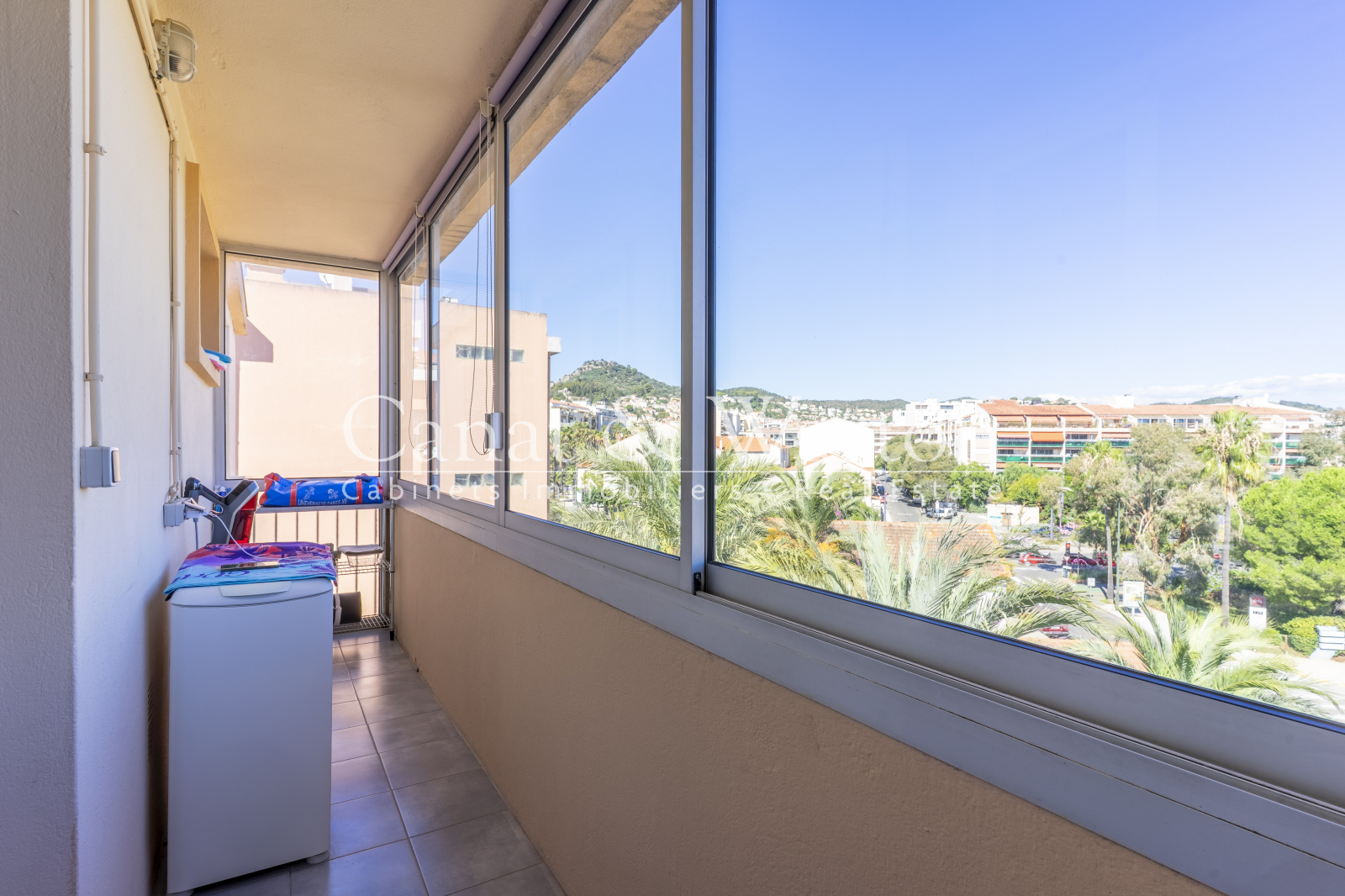 La cuisine indépendante, moderne et entièrement équipée, est prolongée par une loggia fermée de 6,10 m² offrant une jolie vue dégagée sur la Villa Noailles.