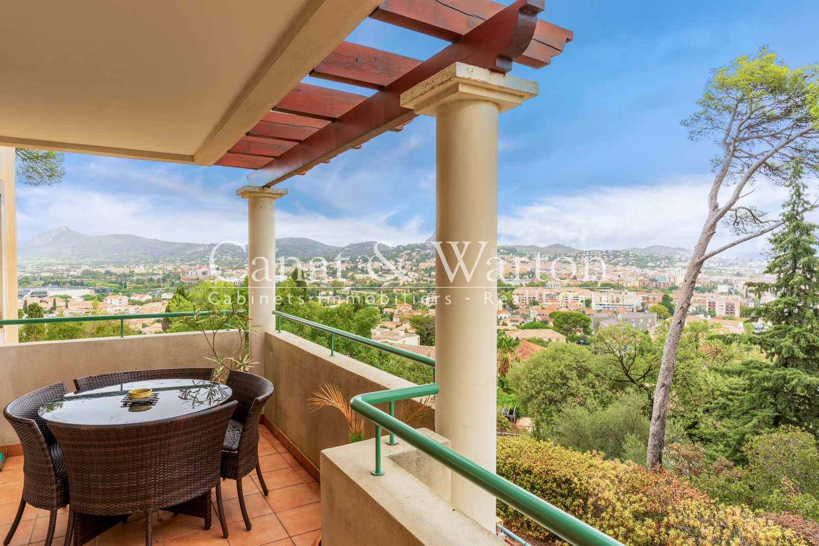 Hyères entre mer et ville, très jolie vue dégagée, au sein d'une residence de bon standing, appartement T4 de 97m² donnant sur terrasse de 12m² comprenant entrée, séjour, cuisine ouverte, 3 chambres dont une avec sa salle d'eau et son dressing, une salle de bains, une cave et un garage double. A 5 minutes des plages, gare et commodités. A 10 minutes de l'aéroport.