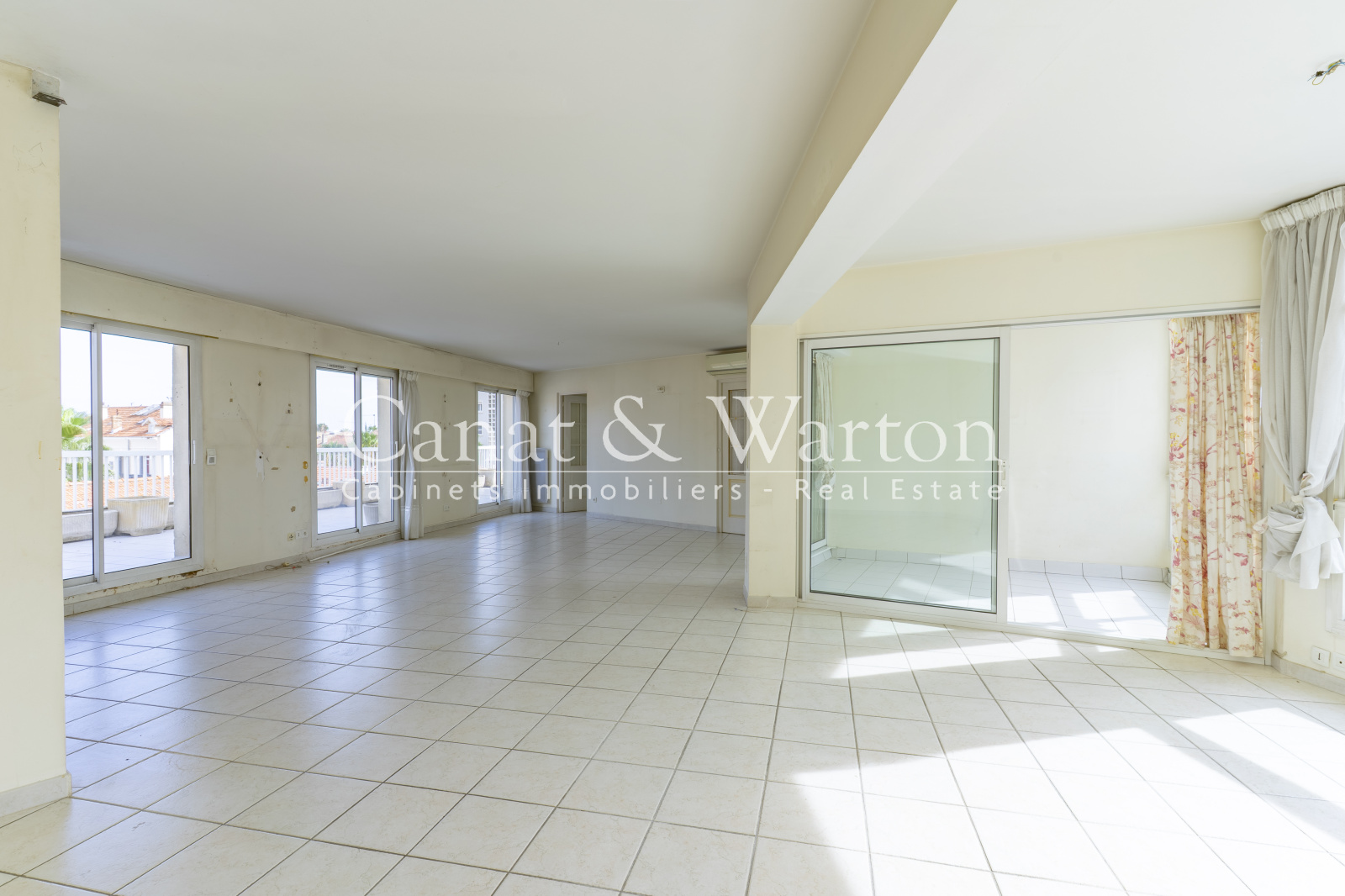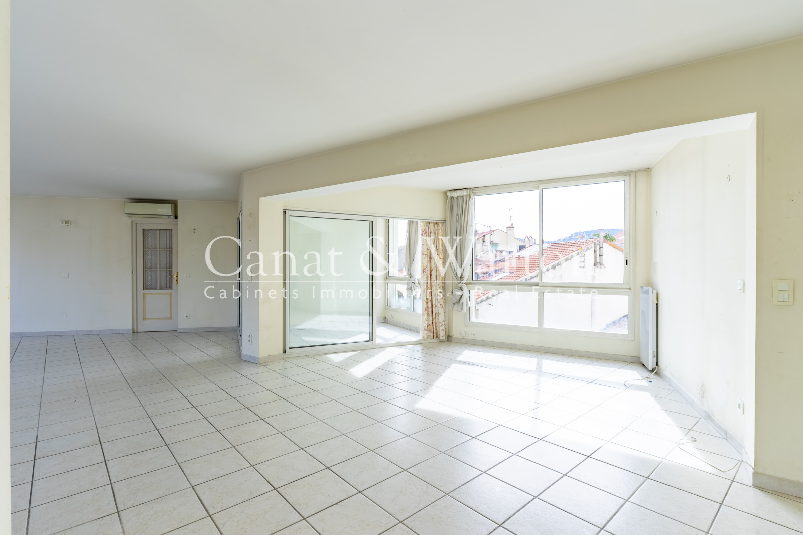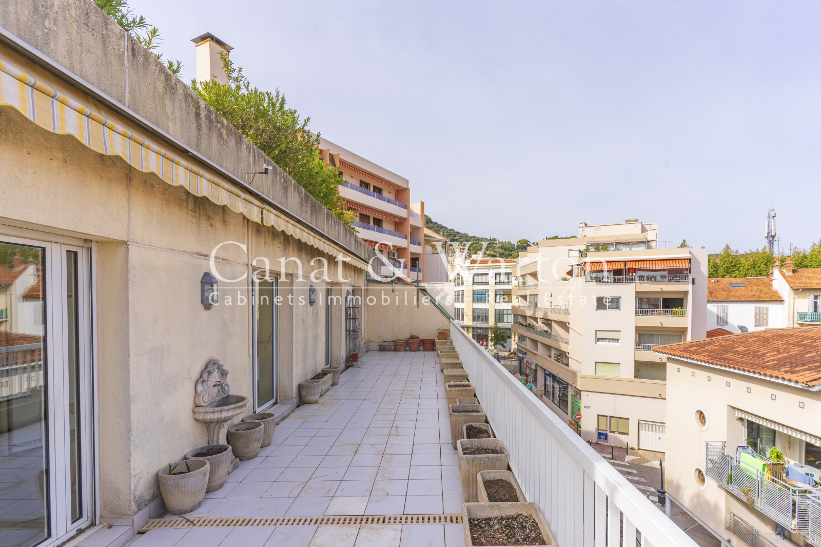 HYERES Centre-Ville, toute la ville à pied pour cet appartement situé en dernier étage avec palier et ascenseur privatif. Donnant sur une rue à sens unique, il domine la ville avec sa vue sur les toits Hyérois et offre une généreuse terrasse de près de 40m². Ses grands volumes abritent une vaste pièce de vie, une cuisine séparée, 2 chambres, 2 salles d'eau, 2 wc et un espace buanderie. Son palier privatif est équipé de placards, très pratiques pour ne pas encombrer l'appartement. Il est vendu avec un box fermé en sous-sol et sa cave attenante. Idéal pour les citadins en quête de commodités à pied. Travaux à prévoir.