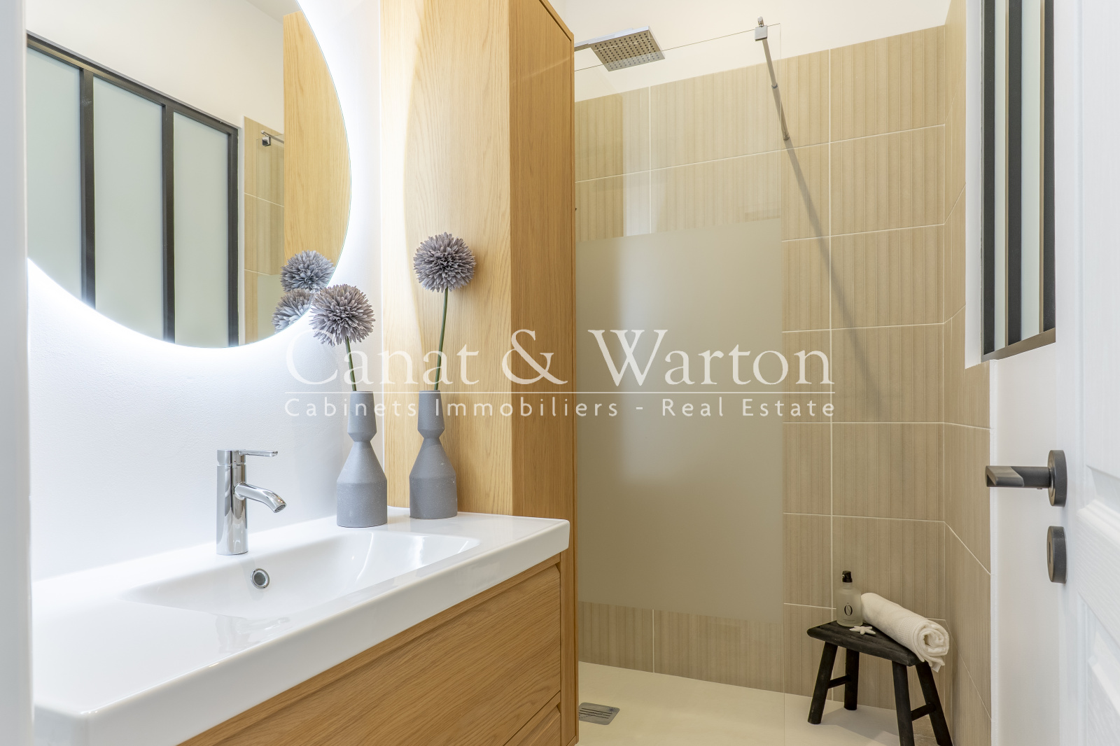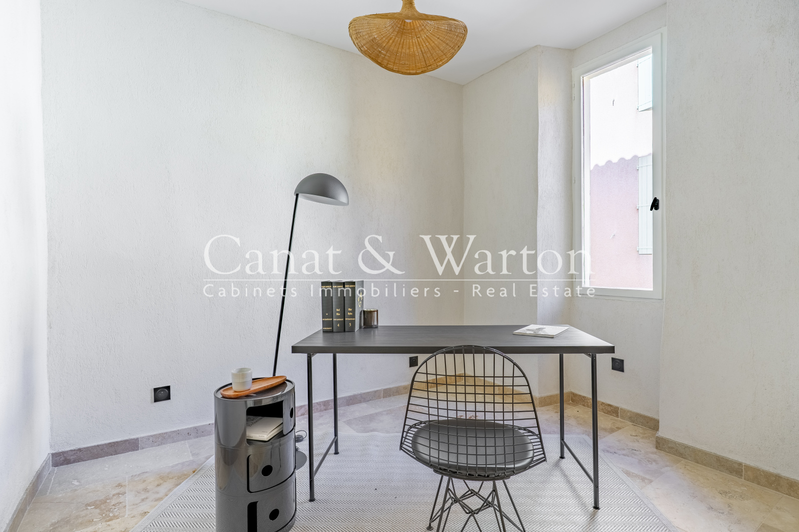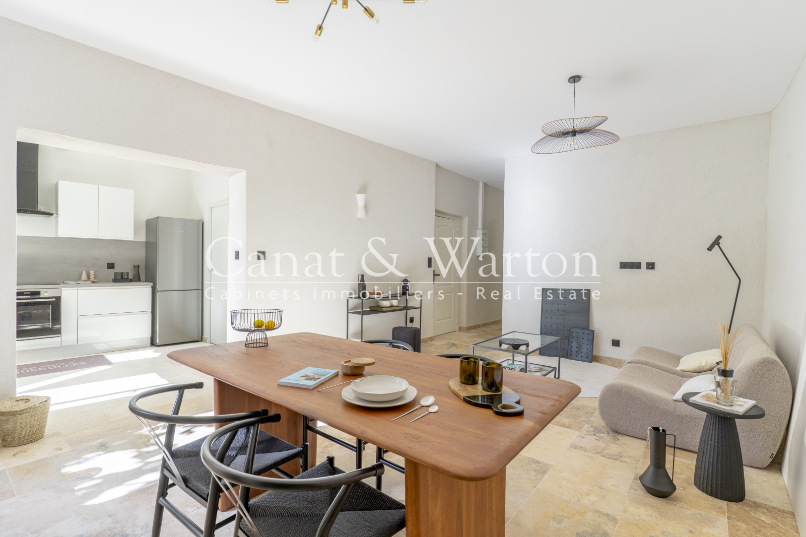 HYERES, au début du quartier historique, passez la porte d'une ancienne demeure typique de la vieille ville ou vous retrouverez le charme de l'ancien et des vieilles tomettes au sol et découvrez cet appartement T4 situé au 1er étage, aux volumes généreux, entièrement rénové avec des matériaux de qualité : travertin, meubles bois chaleureux pour les salles d'eau, cuisine sobre et élégante entièrement équipée. Il offre un vaste séjour avec cuisine semi-ouverte, arrière cuisine-buanderie et toilettes, une suite avec salle d'eau, une chambre, une grande salle d'eau avec toilettes et un bureau. L'ensemble dégage une ambiance apaisante et zen qui se poursuit lorsque l'on arrive sur l'exterieur : un beau patio privatif de 130 m² arboré et terrassé de bois invite à la détente. Véritable hâvre de paix en coeur de ville, ce bien est idéal pour profiter de la ville à pied, à quelques pas du centre et de ses commerces. Vie à l'année ou pied à terre, pour les amoureux du vieux Hyères. Stationnement libre à quelques rues, parking Olbia et clemenceau à proximité