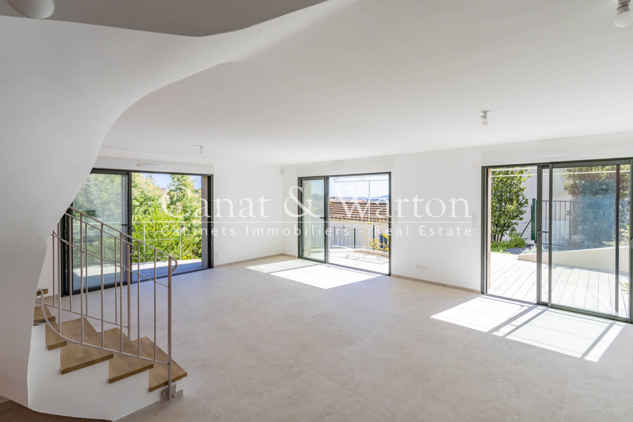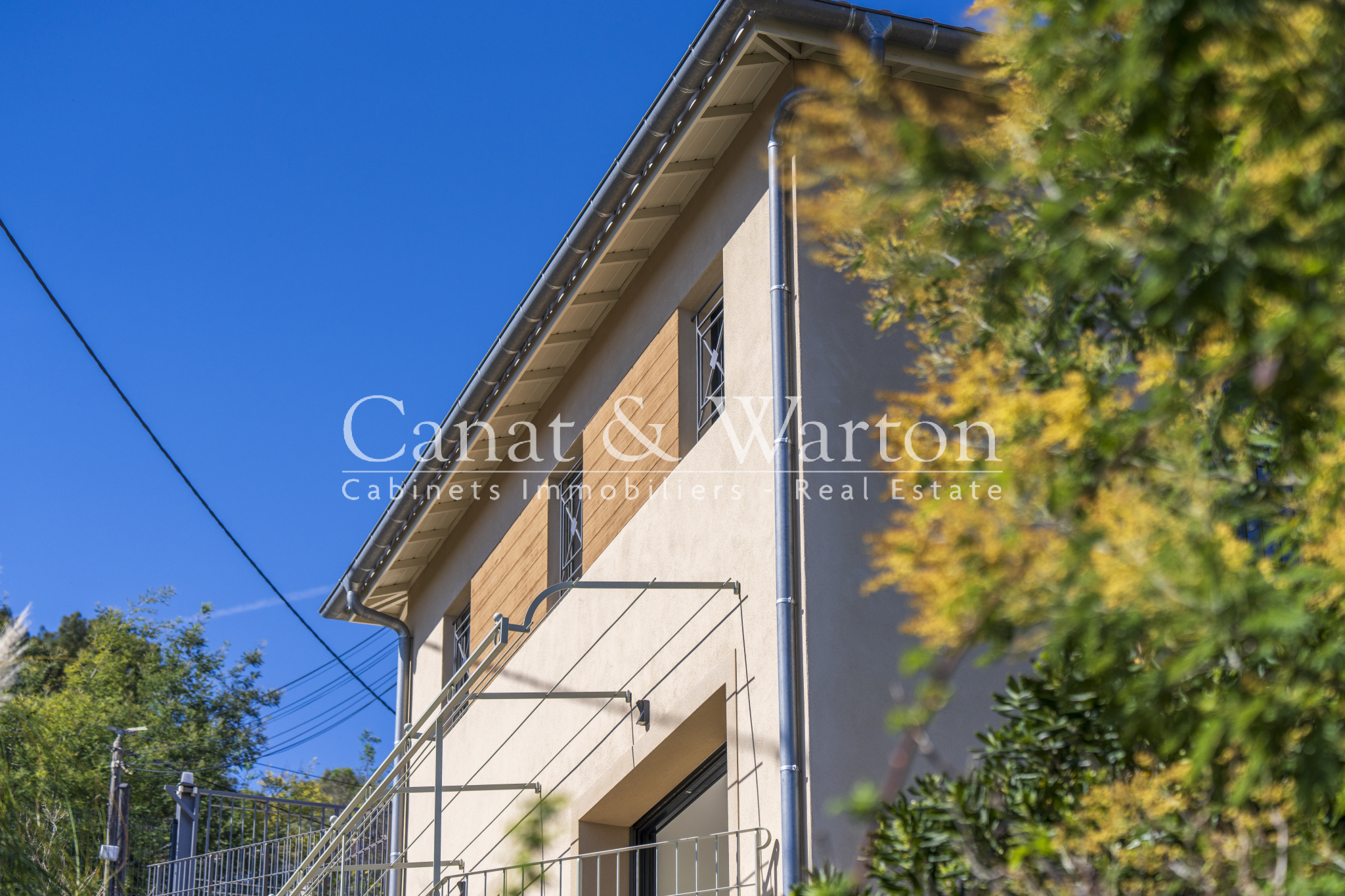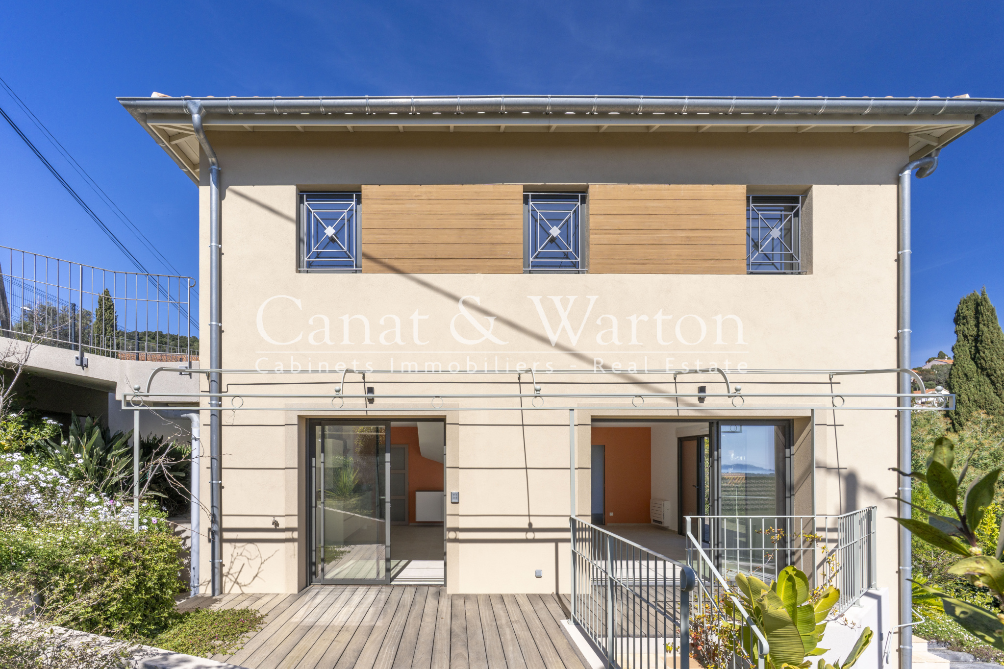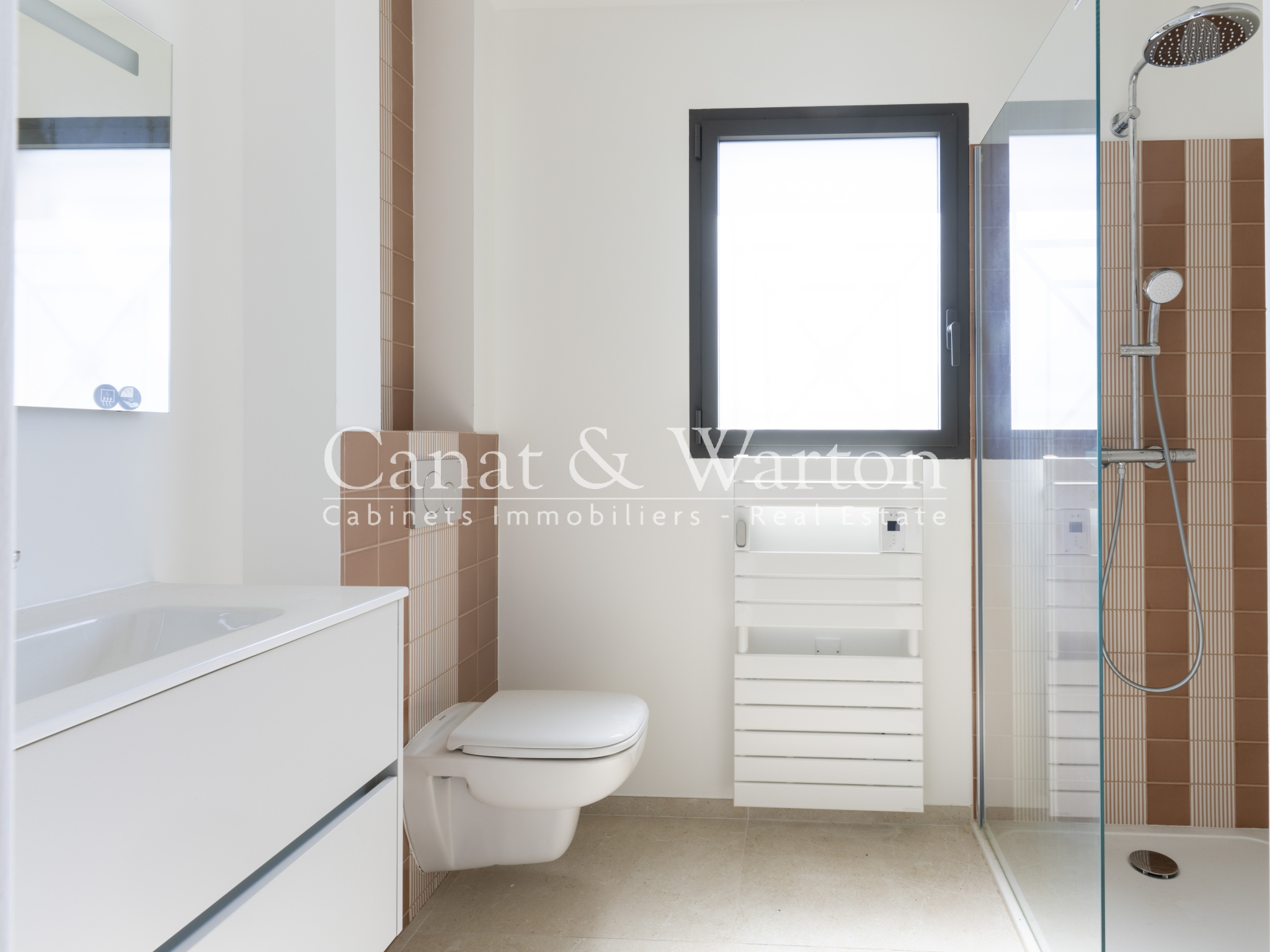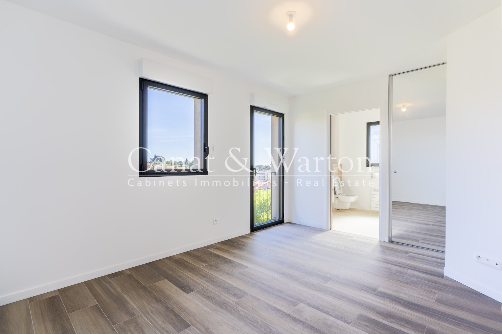 À Hyères, dans l’un des quartiers les plus recherchés et au calme absolu, cette villa neuve d’environ 155 m² offre une vue mer et un accès au centre-ville à pied, un privilège rare dans ce secteur prisé. Conçue avec des prestations soignées, elle propose un vaste espace de vie de 47 m² baigné de lumière grâce à ses grandes baies vitrées, ouvrant chacune sur des terrasses en bois et sur la piscine, avec en toile de fond un jardin entièrement arboré et sans vis-à-vis. La suite principale de plain-pied, d’une surface de 28 m², bénéficie d’une très belle luminosité et d’un accès direct à l’extérieur ; elle dispose également d’une salle d’eau privative, d’un dressing et d’un coin bureau. À l’étage, deux chambres de 18 m² et 26 m², chacune avec leur salle d’eau, profitent d’une vue dégagée. Un WC séparé, un garage de 17 m² et un terrain paysager de 744 m² complètent l’ensemble. Cette villa neuve se distingue autant par la qualité de ses finitions que par son emplacement exceptionnel. À noter : frais de notaire réduits à 3 %.