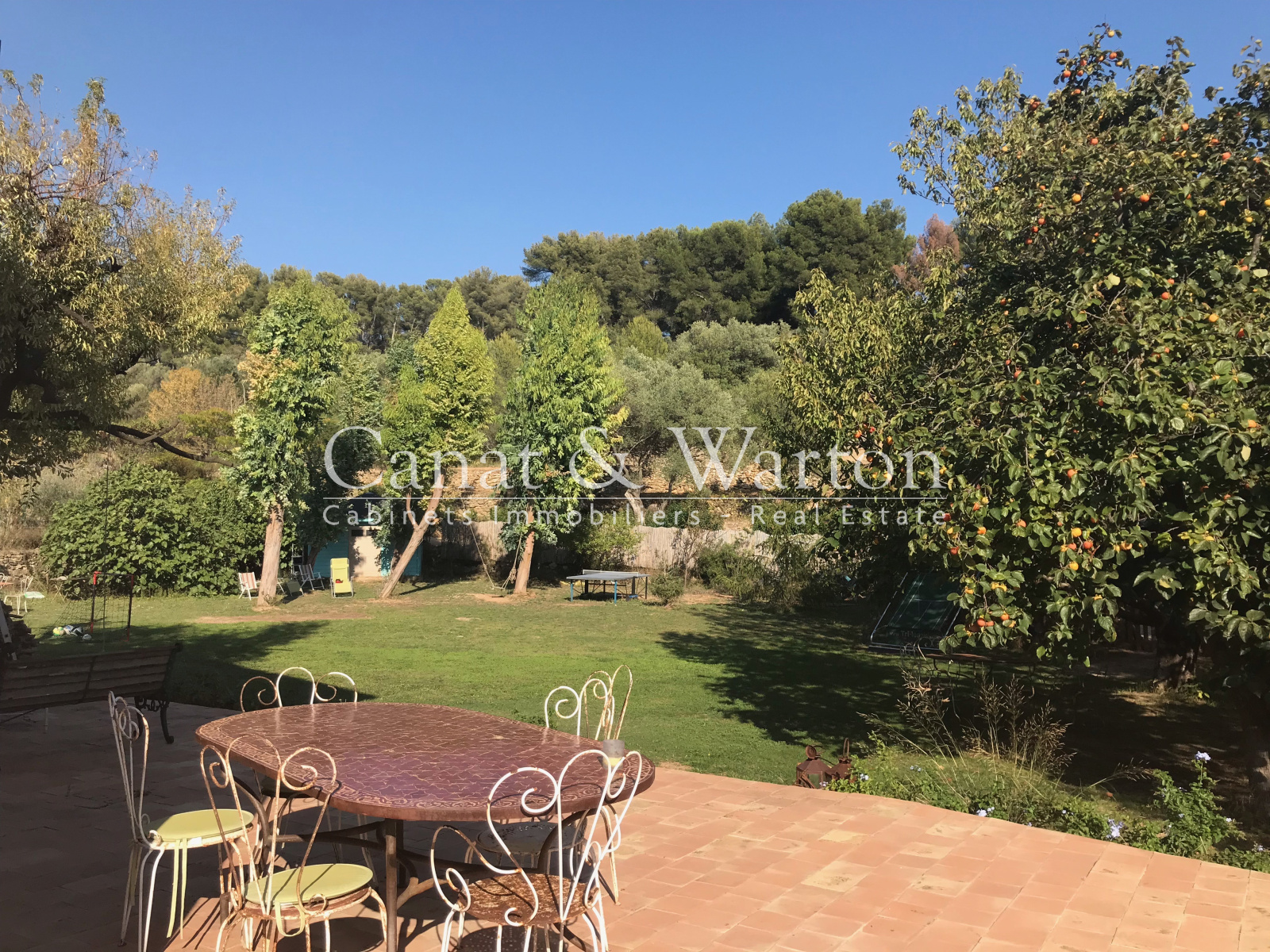 Le jardin est arboré d'arbres centenaires et bénéficie de nombreux espaces ombragés à l'image de la provençe avec la particularité de profiter du canal de provence !