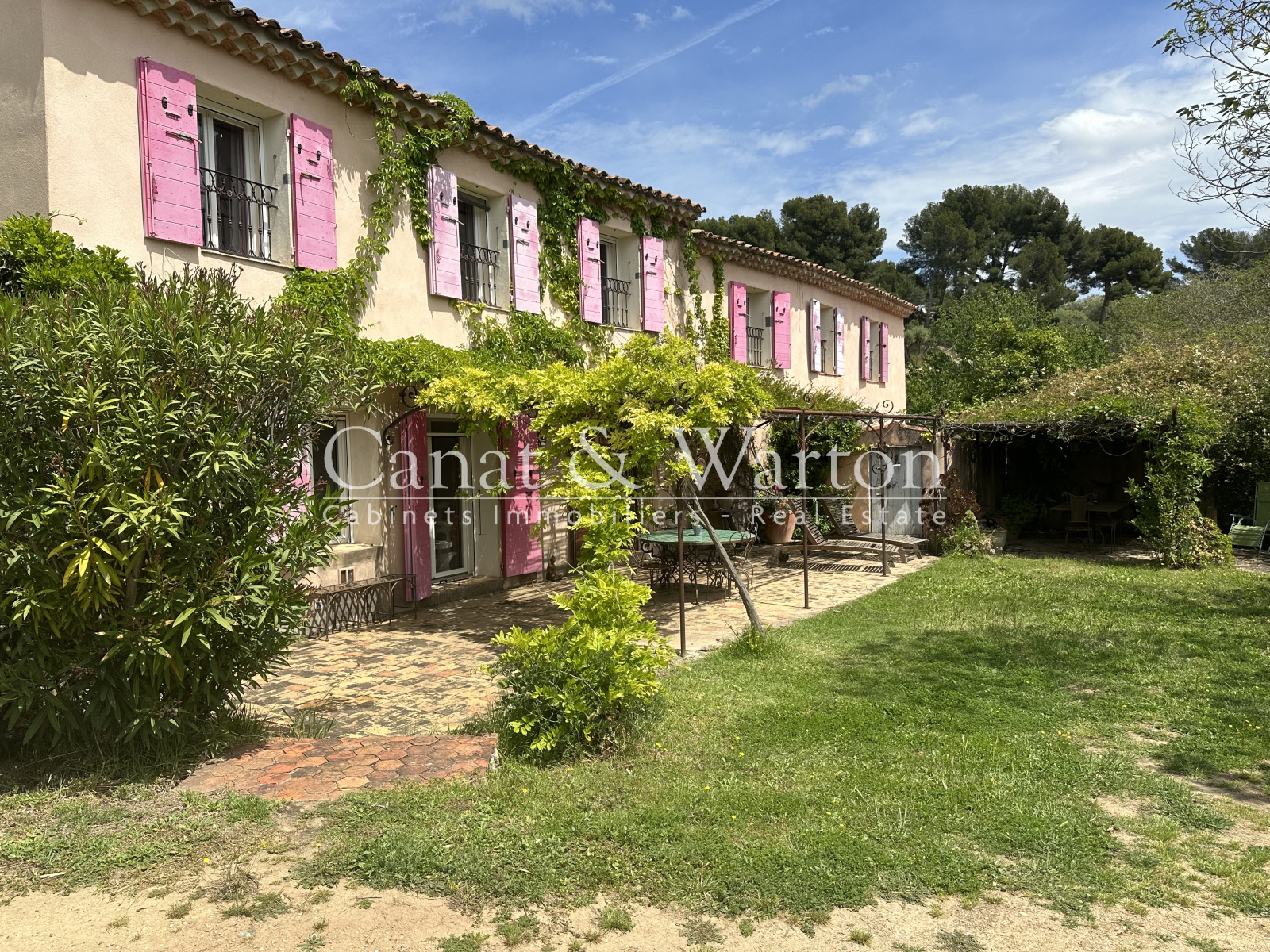 Les 2 habitations ont été restaurées avec goût, l'une avec le charme ancien provençal et l'autre plus contemporaine avec des baies vitrées ouvrant sur le jardin buccolique.
