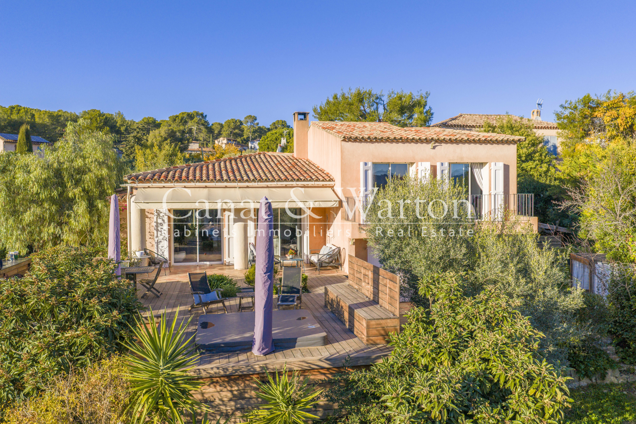 La Cadière d'Azur, villa lumineuse et parfaitement entretenue offrant de beaux volumes et un cadre de vie paisible.