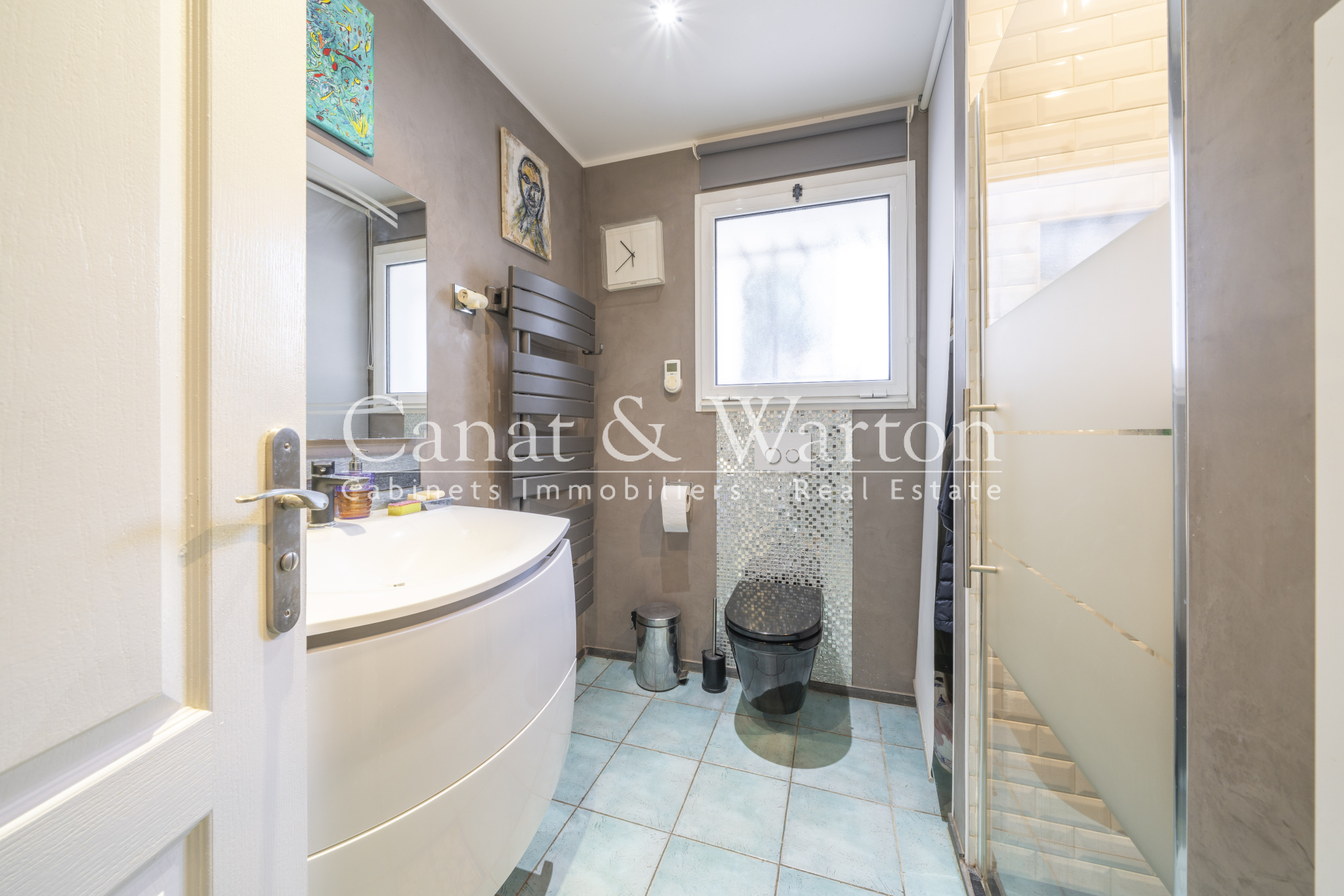 Au rez-de-chaussée, trois chambres, dont une suite parentale de 26 m2 avec dressing, salle de bain et wc séparé, une salle d'eau avec wc, climatisation dans toutes les chambres, aspiration centralisée.