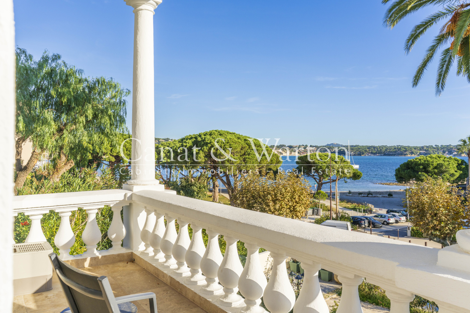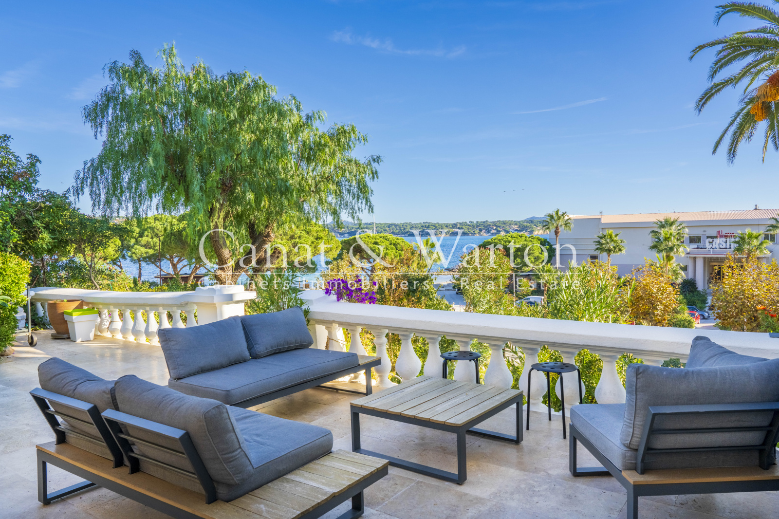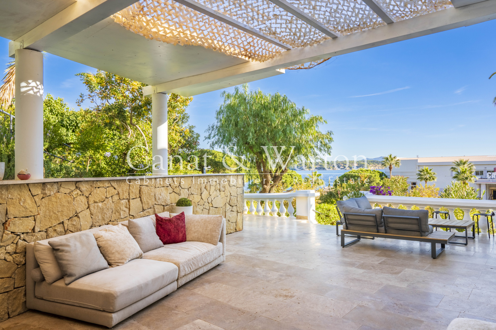 À l’étage une luxueuse master suite avec dressing, salle de bains incluant douche et baignoire, une terrasse privative offrant une vue panoramique sur la mer.