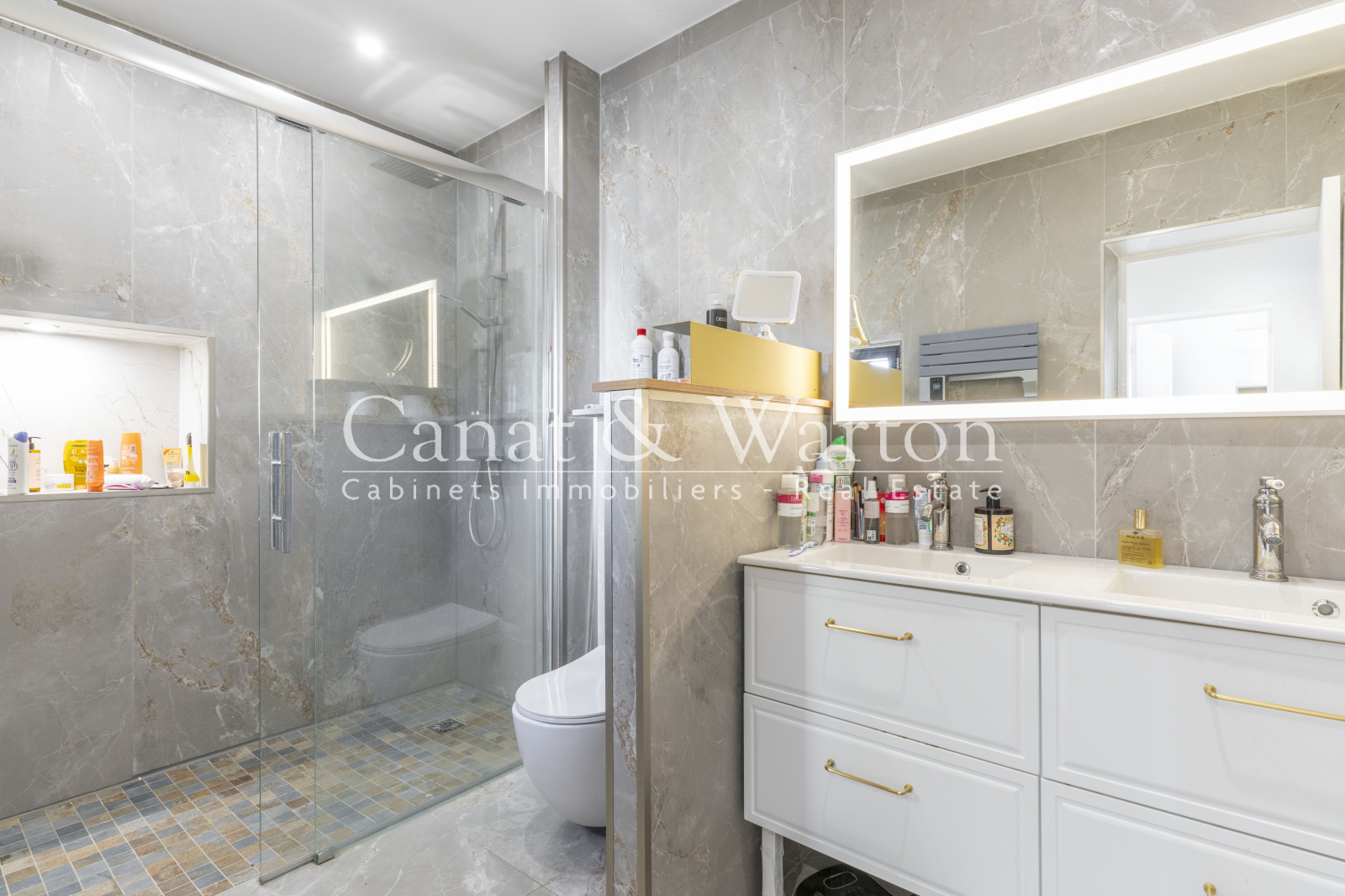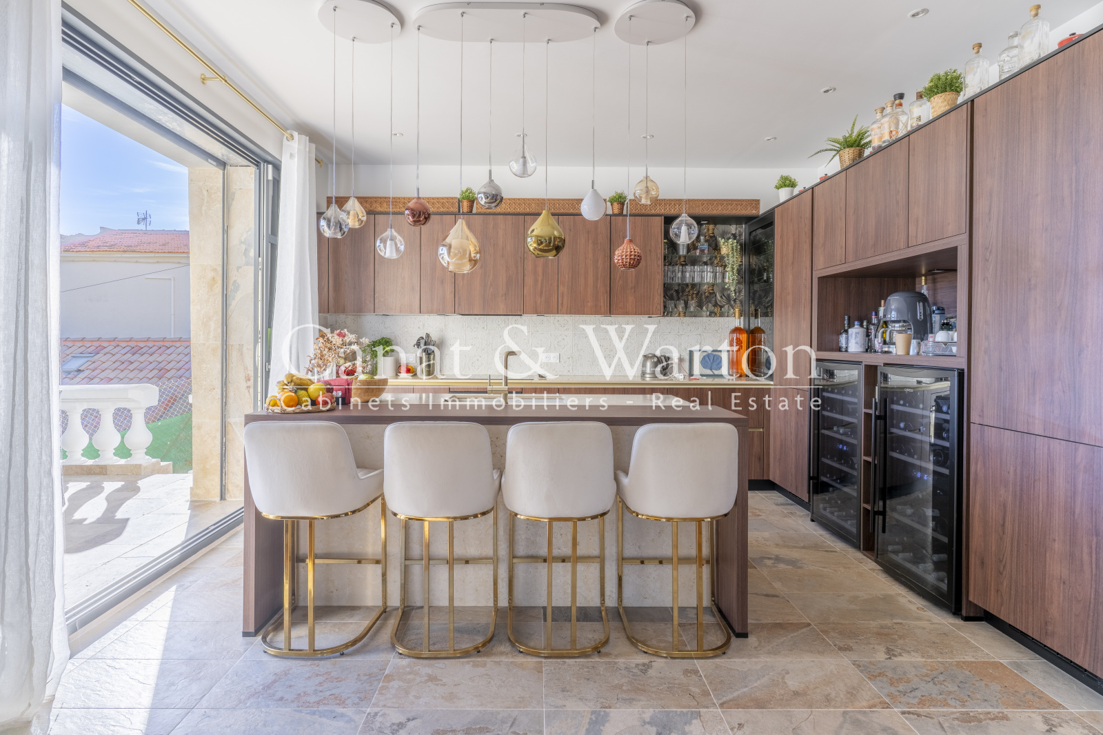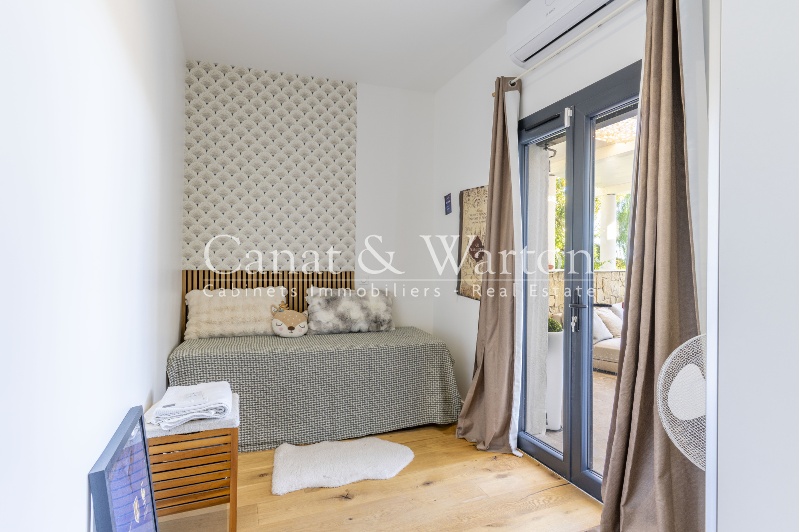 Édifiée sur trois niveaux et baignée de lumière grâce à son exposition plein sud, elle offre une vaste pièce de vie comprenant une cuisine moderne entièrement équipée et un salon élégant ouvert sur la mer. Elle dispose également d’une suite parentale avec dressing et salle d’eau, ainsi que d’une seconde chambre avec salle d’eau attenante.