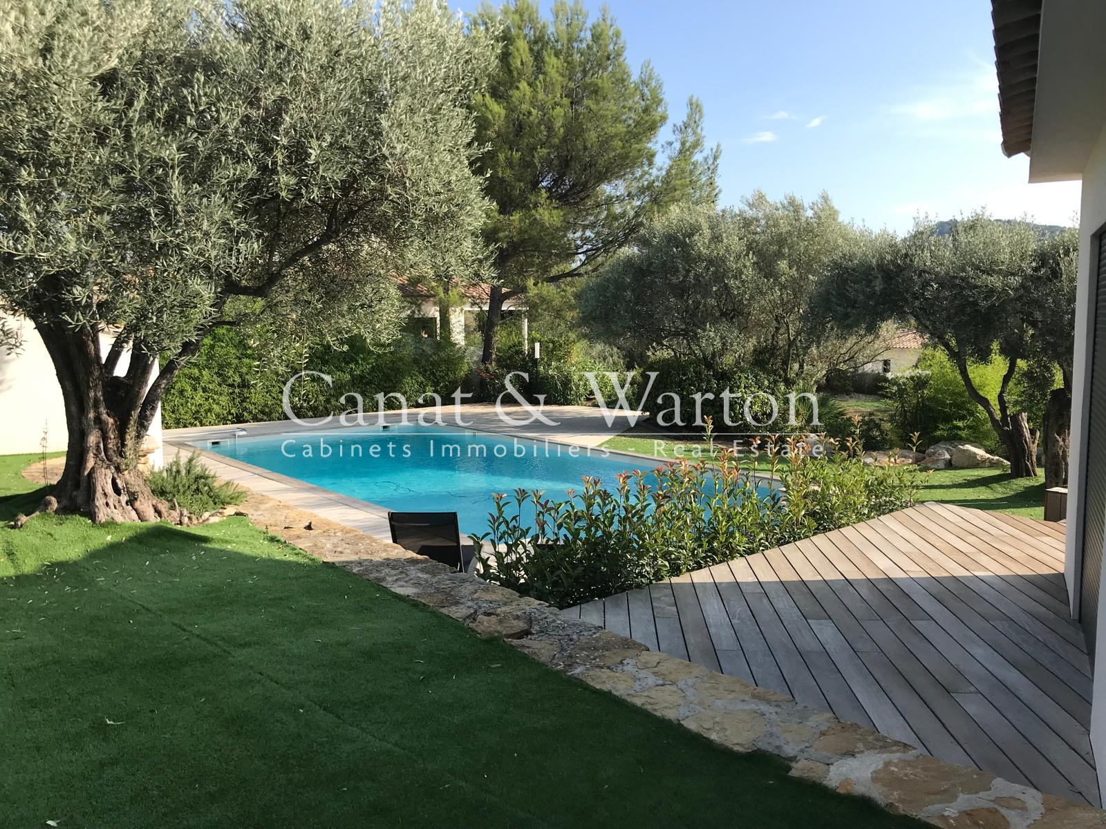 Édifiée sur un terrain plat d'environ 1200 m2, entièrement paysagé et agrémenté d'un arrosage automatique, la villa offre de superbes espaces de détente, piscine sécurisée au Chlore avec plage immergée (13,5 / 5,5 m), terrain de pétanque, espace lounge ombragés et terrasses orientées Sud/Ouest, idéales pour profiter des couchers de soleil.