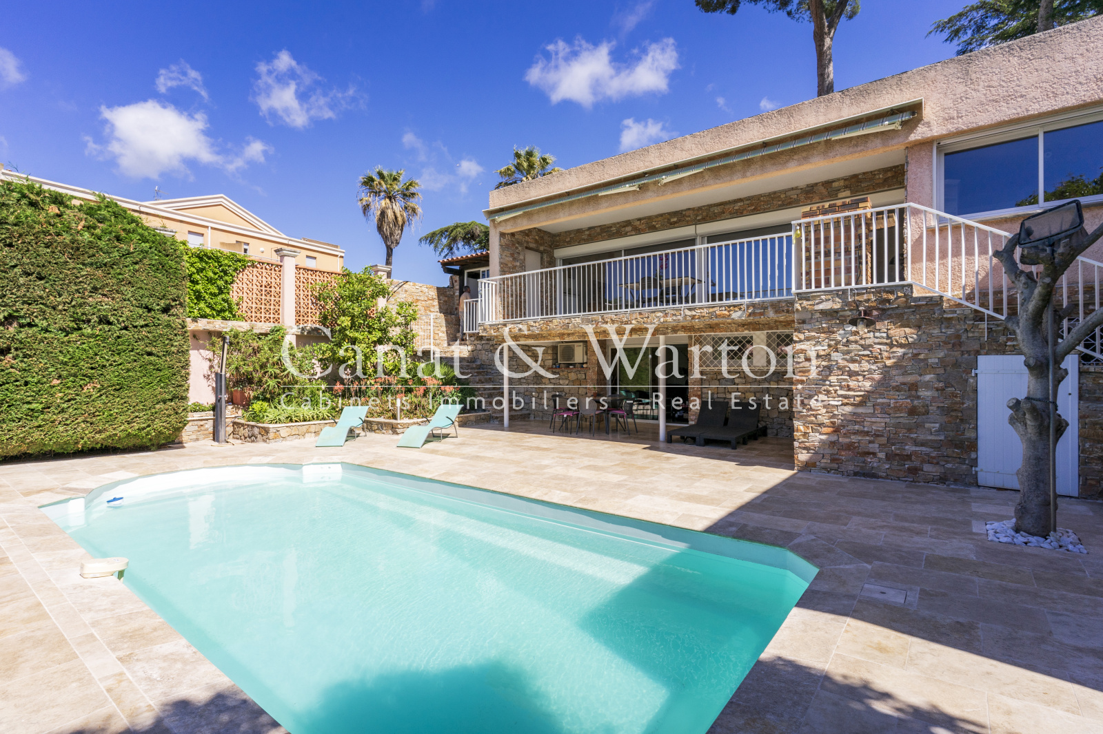 Exclusivité ! Carqueiranne, centre village au calme absolu, villa contemporaine comprenant un beau séjour, 4 chambres, 3 salles d'eau, garage, piscine sur un terrain de 600m². Emplacement rare.