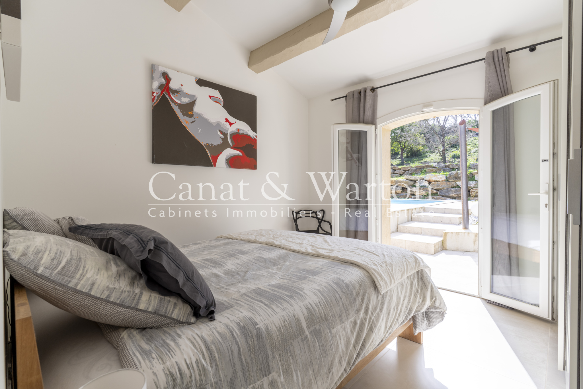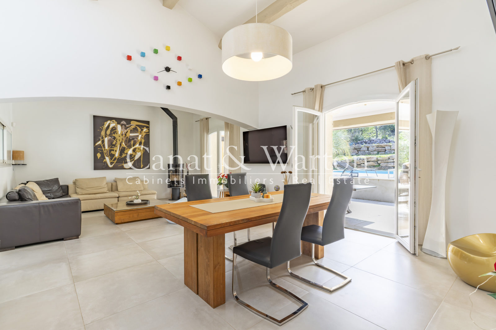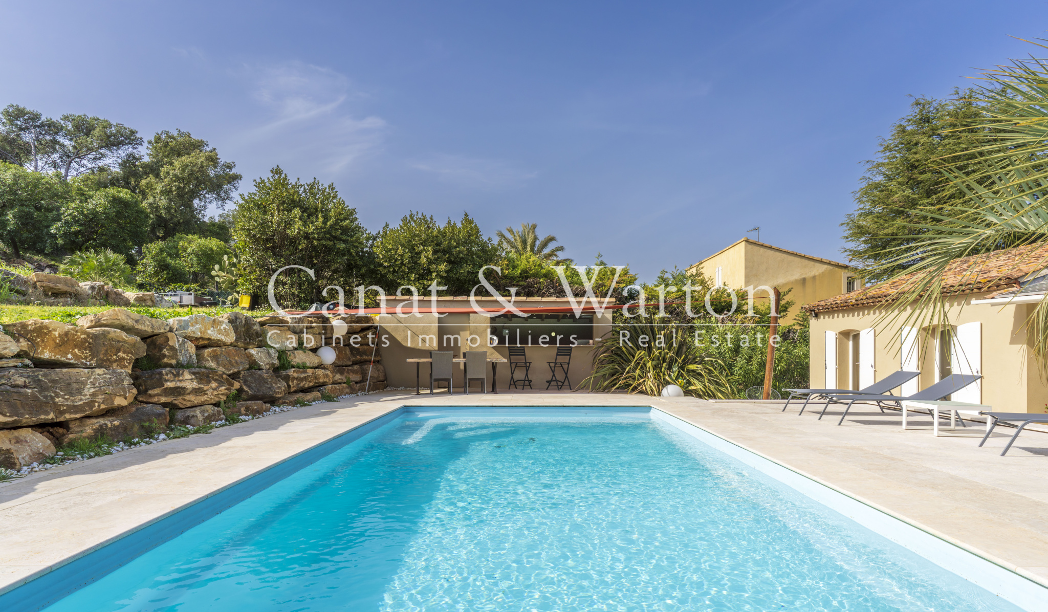 Les pièces de vie s’ouvrent naturellement sur les extérieurs, organisés autour d’un jardin arboré avec un agréable espace boisé. Un boulodrome, une piscine et son pool-house invitent à profiter pleinement des beaux jours dans un cadre préservé.