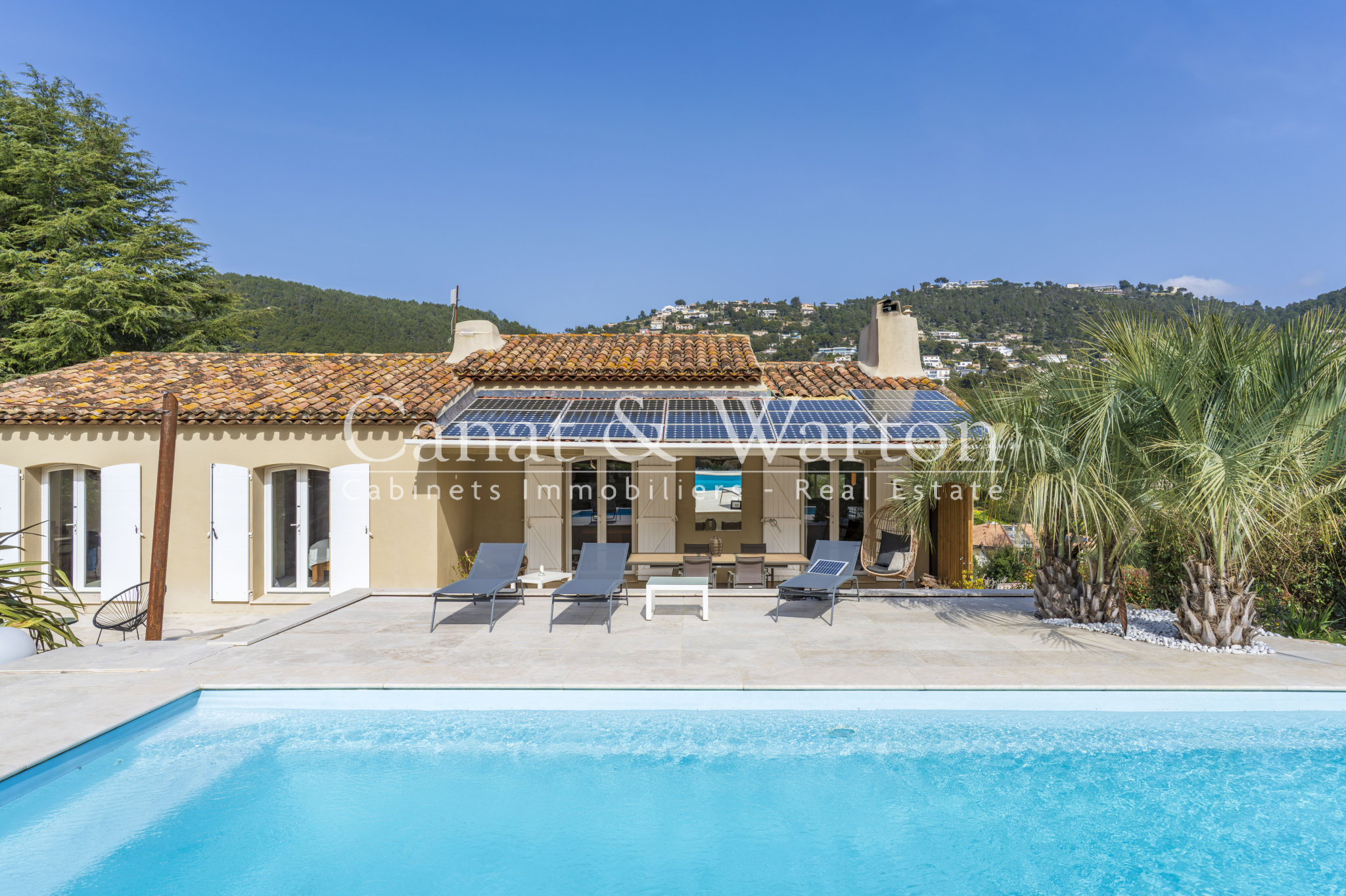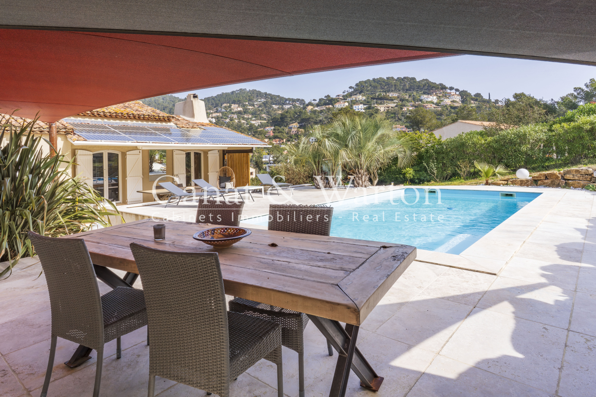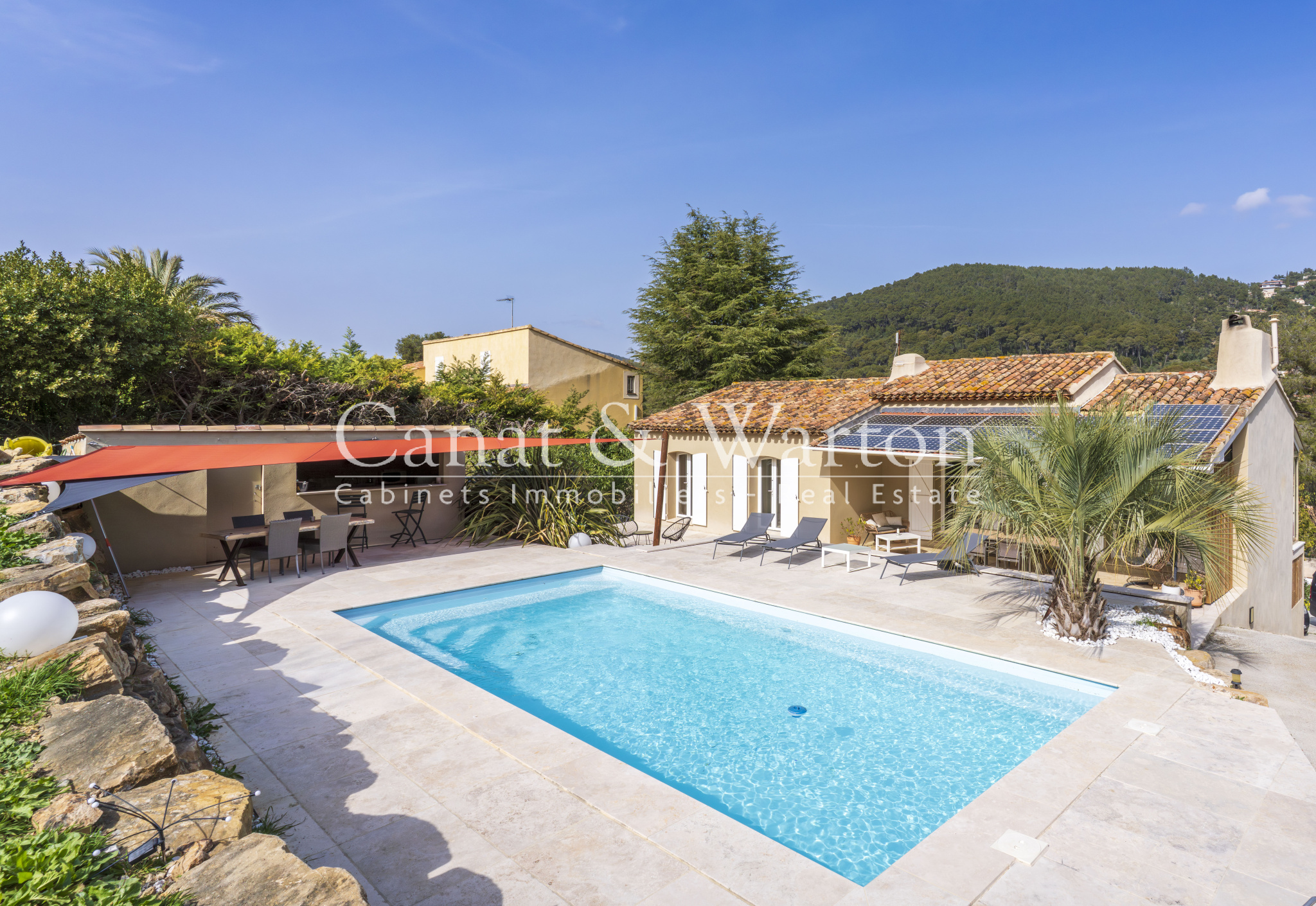 À Carqueiranne (83320), Var, située à quelques minutes de l'aéroport de Hyères et de la gare TGV, cette villa de 160 m² habitables s’inscrit dans un environnement calme et boisé, à proximité du village et des plages. Une adresse recherchée pour son cadre naturel et sa qualité de vie, à quelques minutes seulement des commodités.