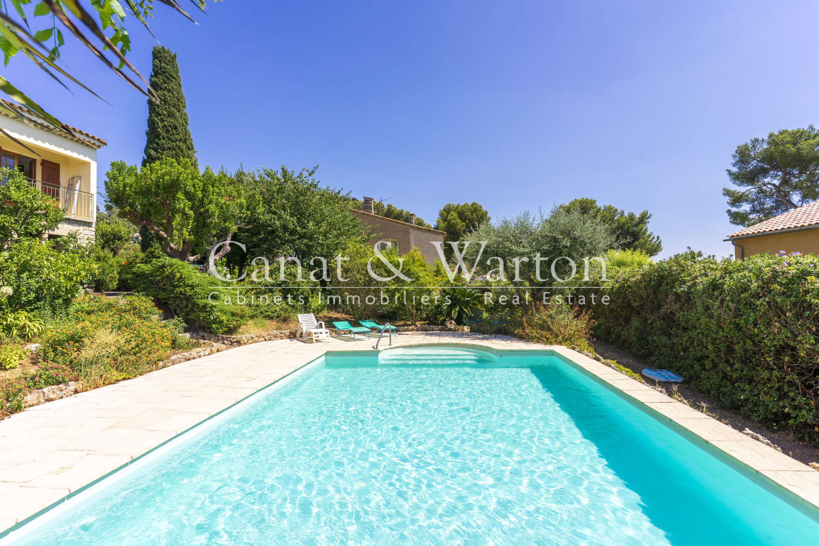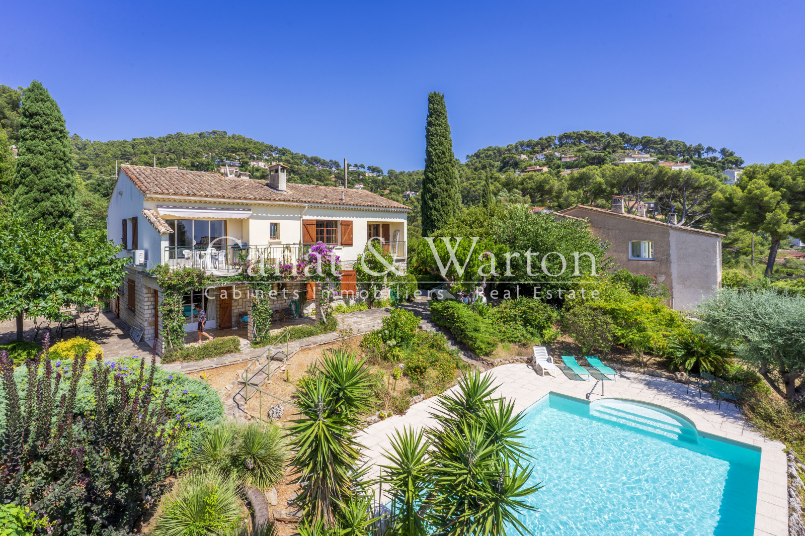 Carqueiranne, dans un quartier résidentiel calme et verdoyant, découvrez cette villa sur 2 niveaux offrant une belle vue mer depuis sa terrasse principale d’environ 24 m². À l’étage, un séjour lumineux avec une cuisine semi-ouverte, deux chambres avec dressing, une salle d’eau et un WC. En rez-de-jardin, un appartement T2 indépendant d’environ 60 m² avec un double séjour, une cuisine indépendante menant vers des terrasses ombragées, une chambre, une salle d’eau et un WC. Garage. L'appartement communique avec l'étage ou peut être rendu indépendant selon vos besoins. Un atelier, une piscine (10x5 m) et plusieurs stationnements complètent ce bien entretenu, sur un terrain de 1200m2.