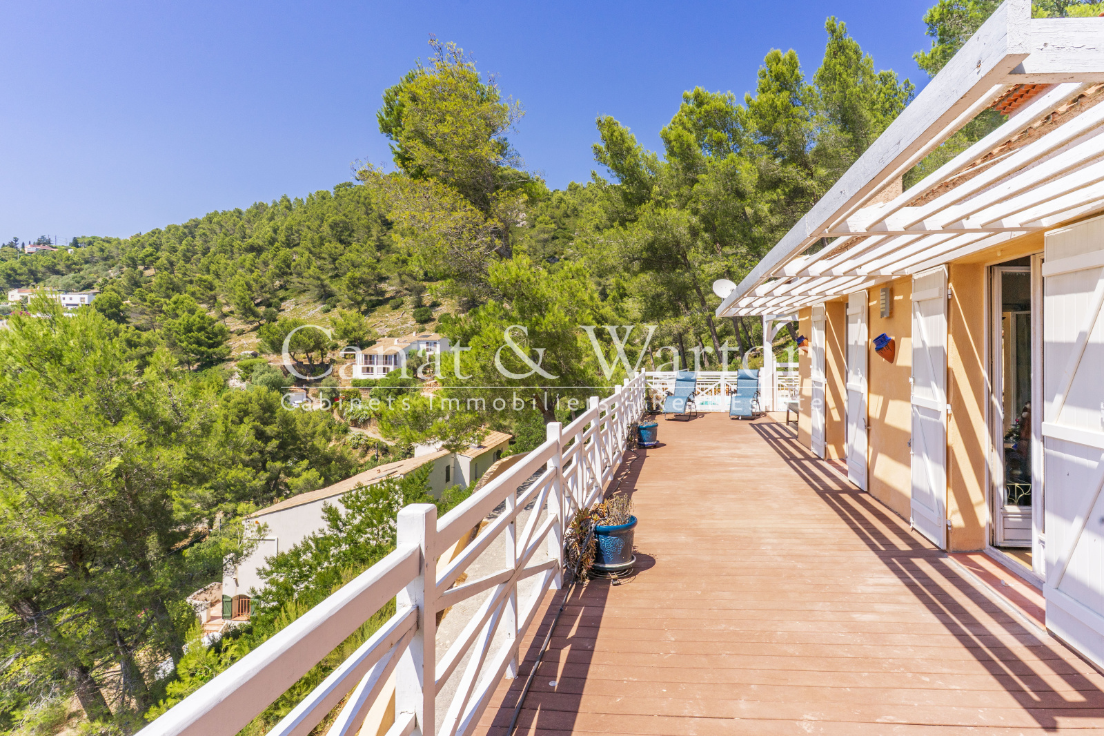 À Carqueiranne (83320), dans le Var, au cœur d’un quartier résidentiel prisé et au calme absolu, cette villa d’environ 120 m² bénéficie d’une superbe vue dominante sur la mer et les collines environnantes, tout en étant idéalement située à proximité de l’aéroport de Hyères, de la gare TGV, des plages et du village de Carqueiranne.