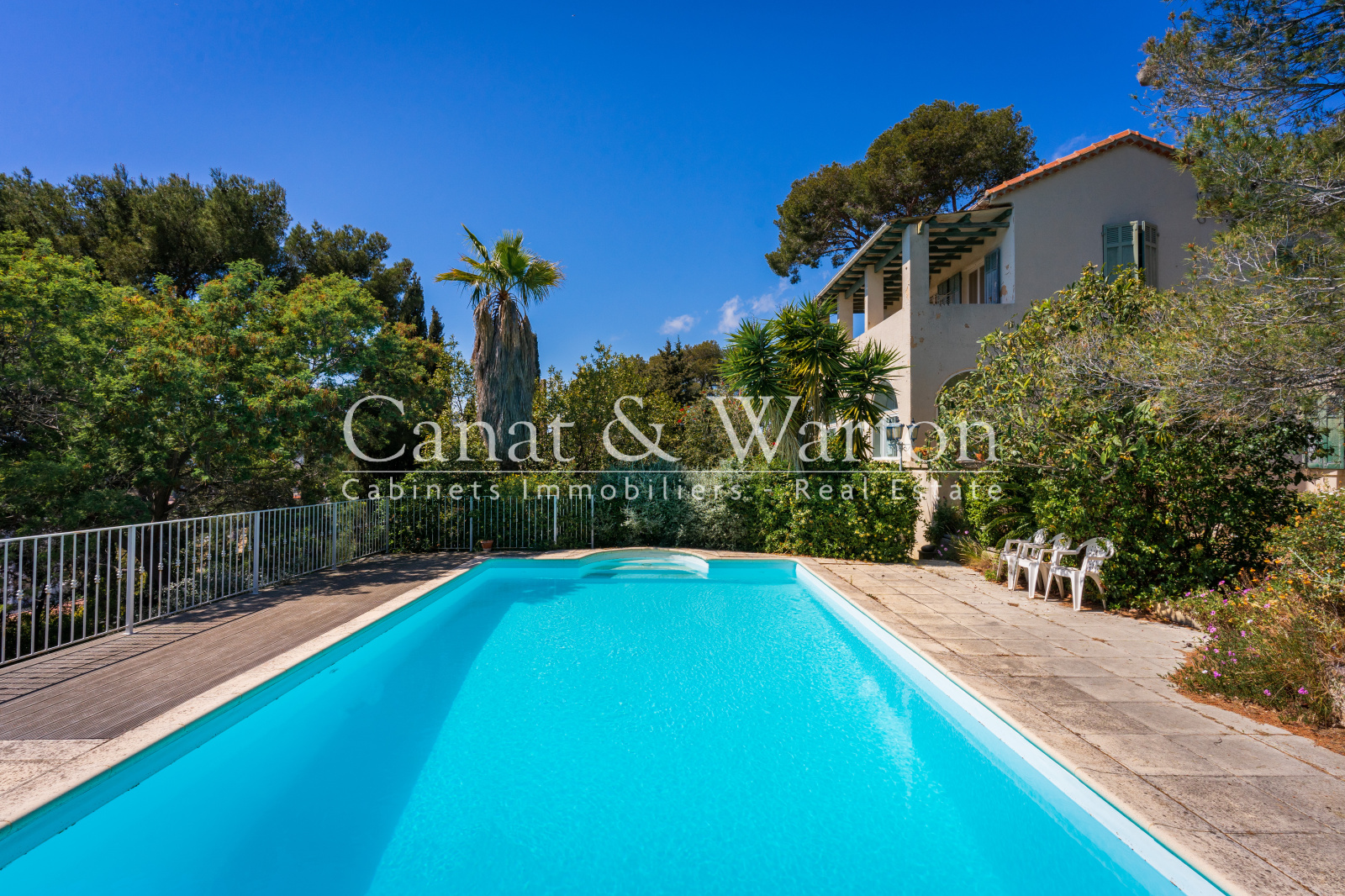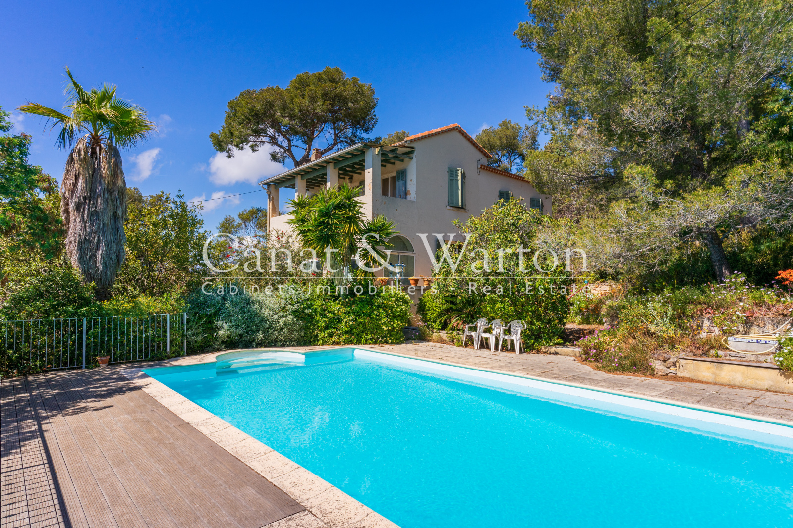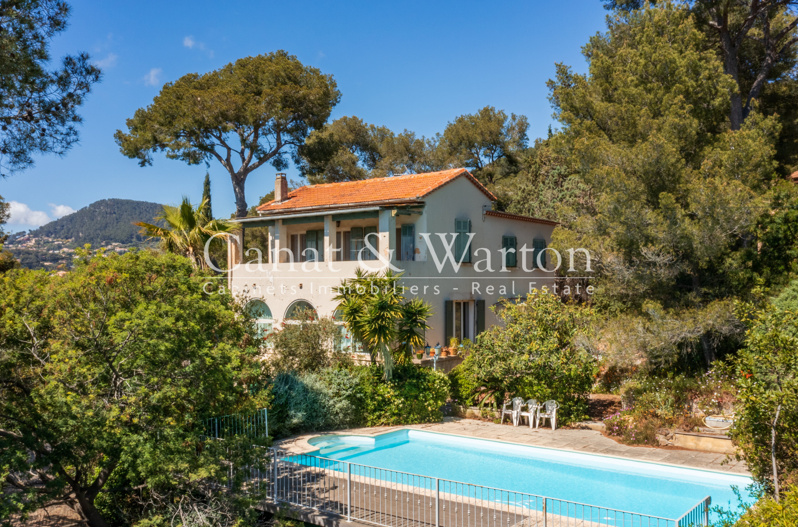 Carqueiranne, charmante bastide des années 1900 avec bel espace jardin et piscine à l'abri des regards, séjour-salle à manger aux beaux volumes, cuisine, 6 chambres, une salle de bains, 2 salles d'eau, dépendances, garage à rénover. Coup de coeur !