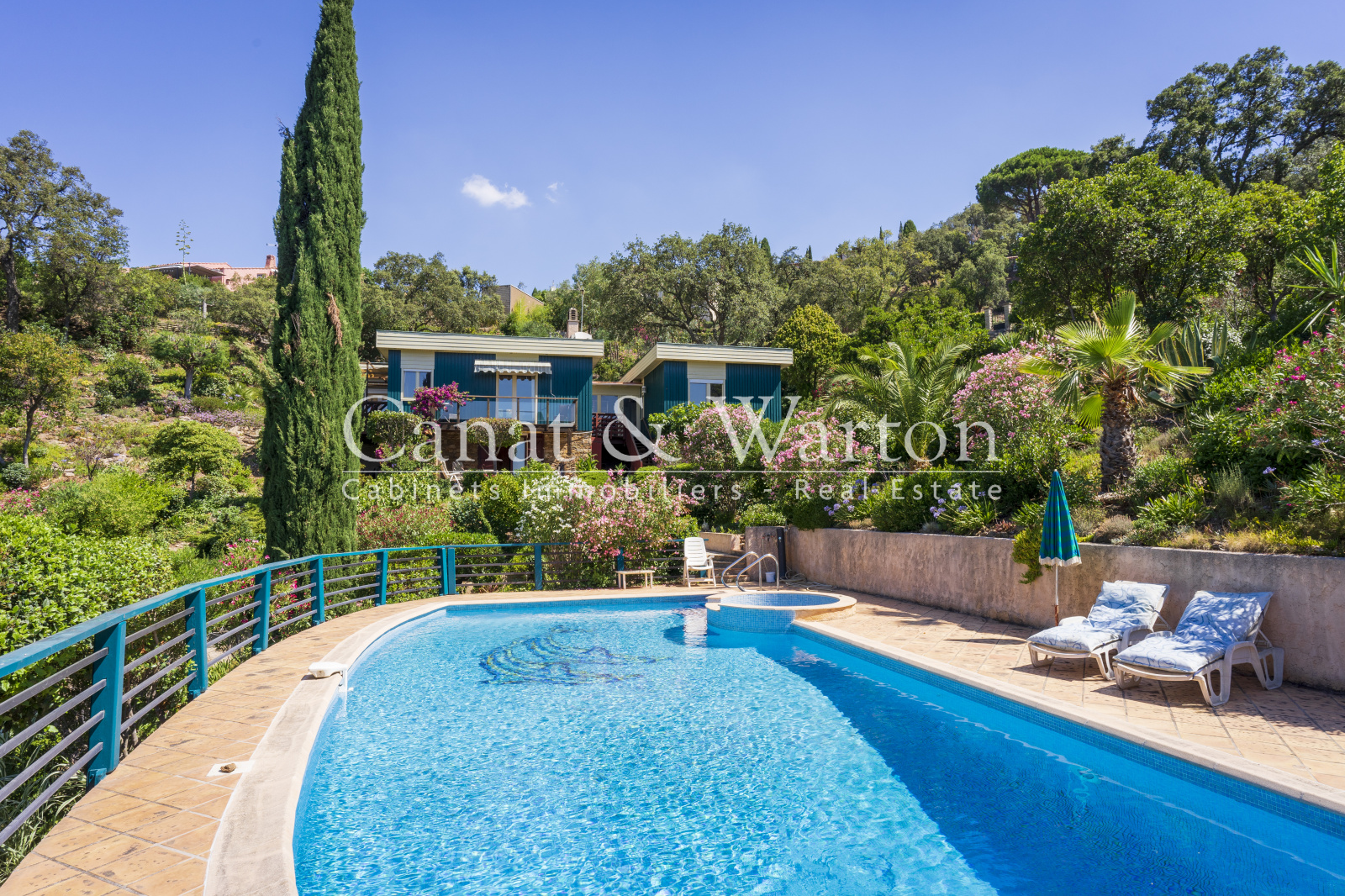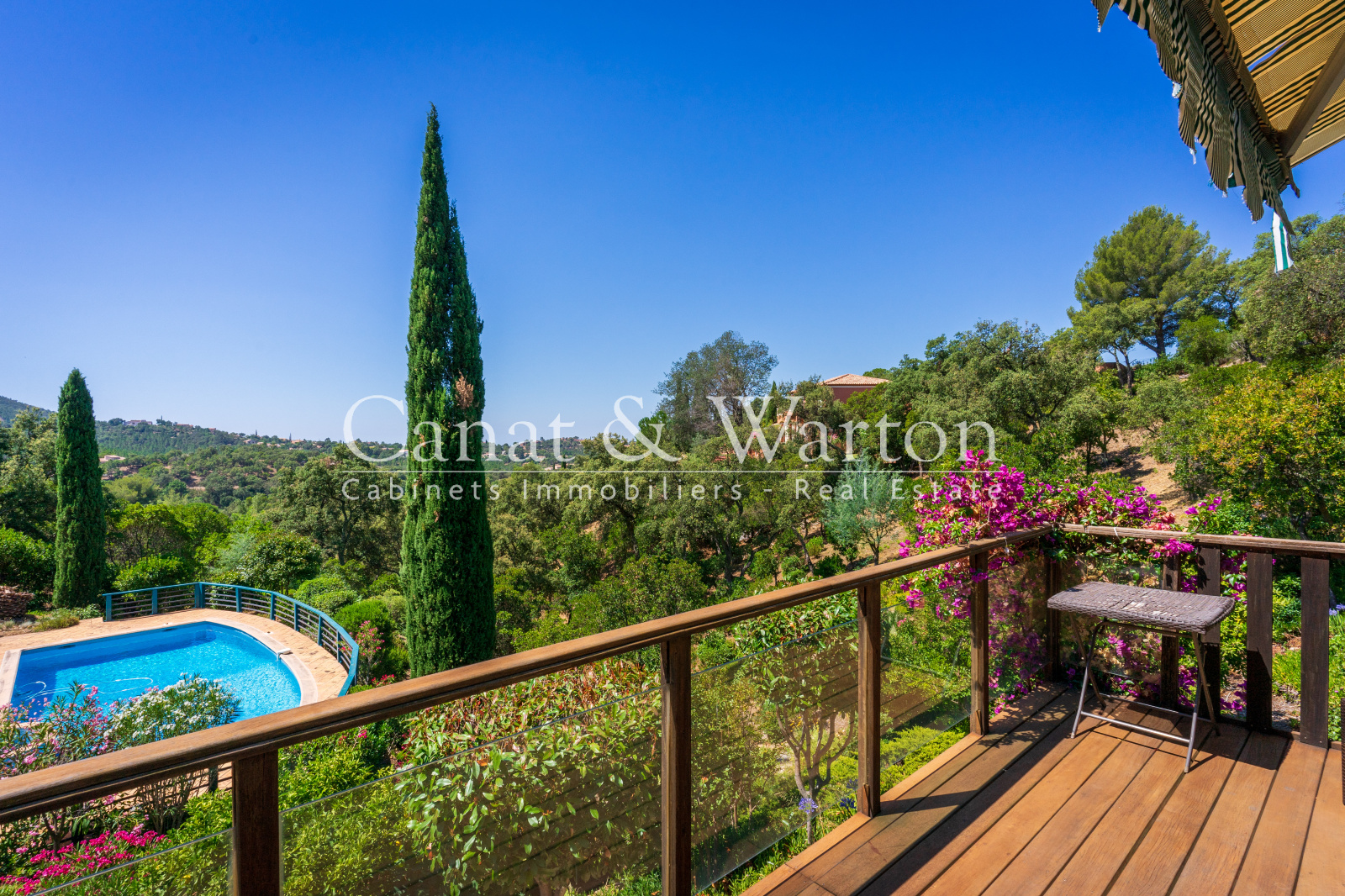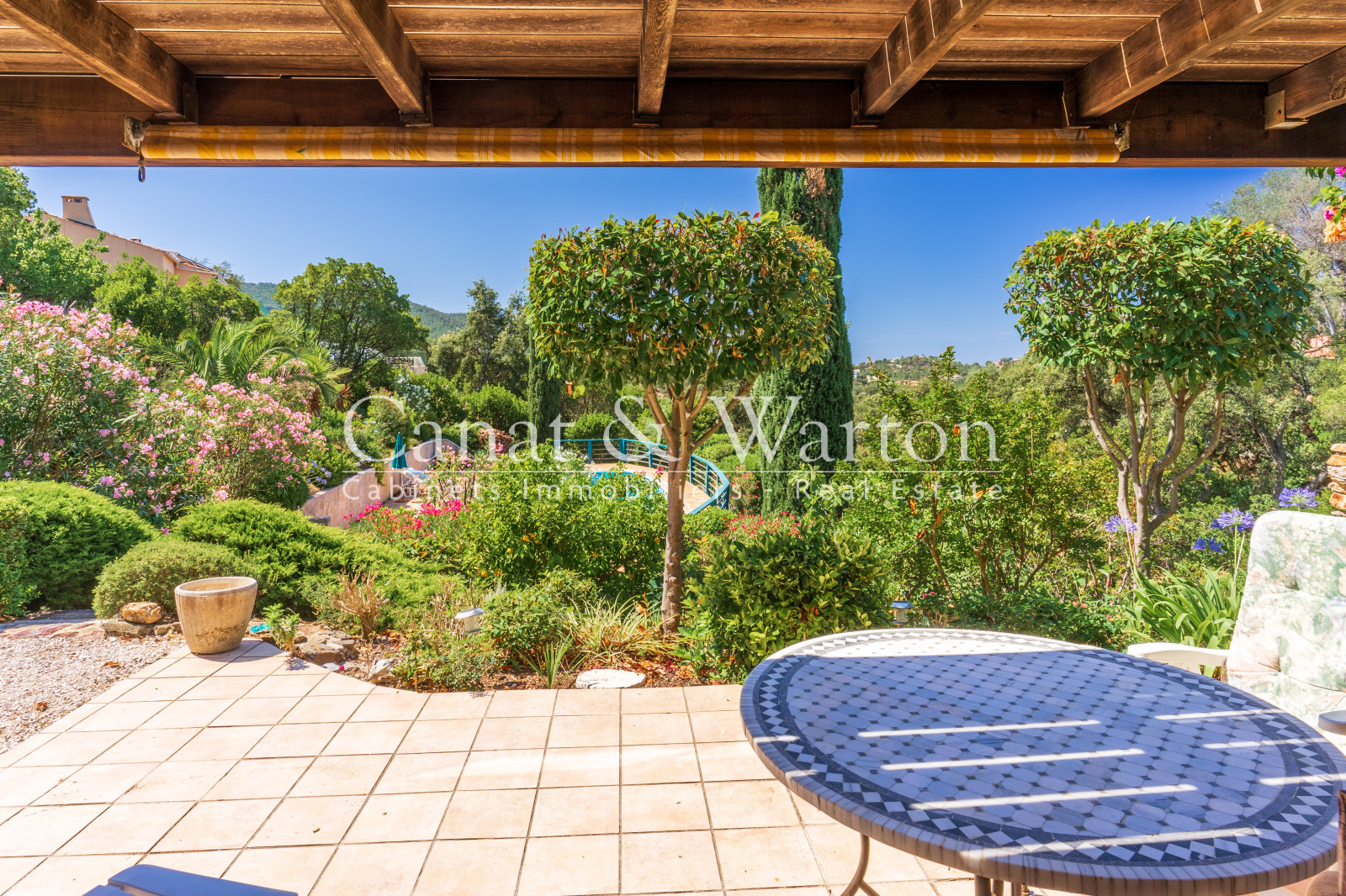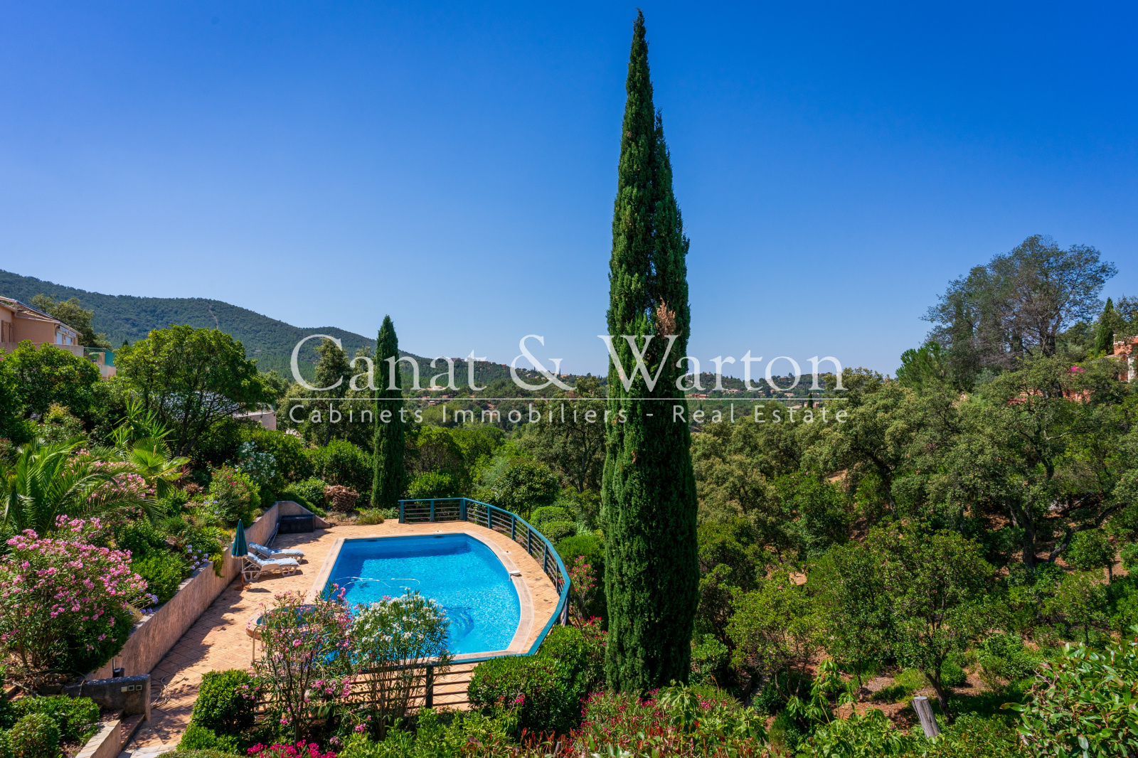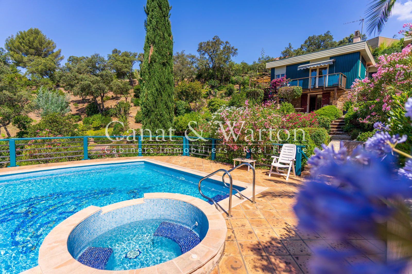 Exclusivité ! La Londe les Maures, dans un domaine à proximité d'un golf, vous apprécierez l'environnement très verdoyant et calme de cette villa. L'accès au niveau principal de la villa est facile. Il se compose d'un séjour - salle à manger avec sa cheminée, une cuisine équipée ouverte sur le séjour, un espace nuit avec une chambre et salle d'eau et un deuxième espace nuit composé d'une chambre et d'un bureau (ou autre chambre) et une salle de bains. Au niveau inférieur, un appartement indépendant T3 complète la villa. Le tout sur un terrain de 4700m2 offrant un bel espace piscine 12x6 avec espace spa. Villa très bien isolée à faible consommation énergétique ! DPE D