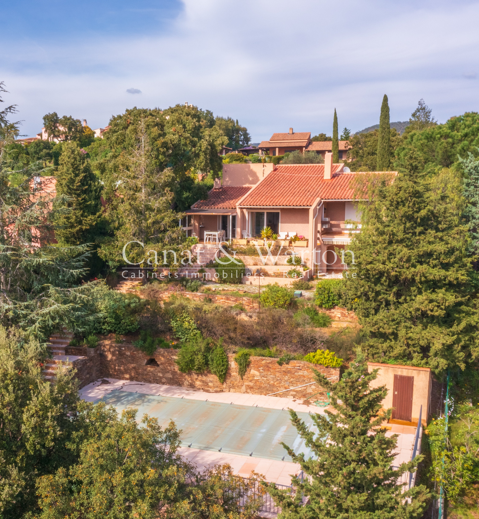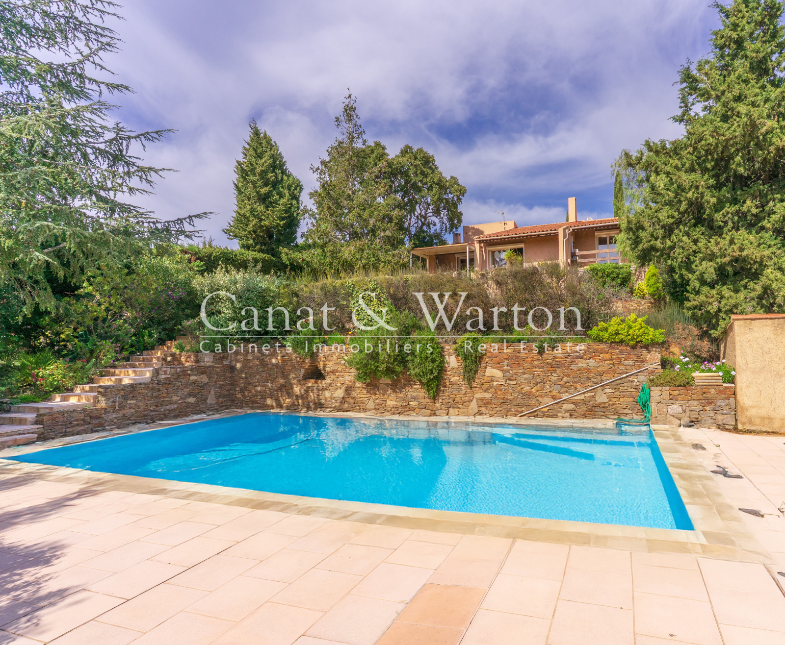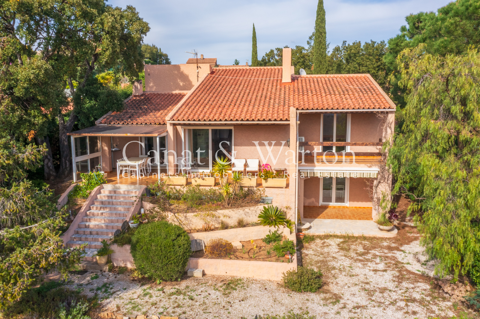 La Londe les Maures, dans le domaine prisé de Valcros, réputé pour son golf, découvrez cette villa traditionnelle, construite dans les années 80, offrant une vue imprenable sur la mer. Au rez-de-chaussée, une belle entrée vous permet d'accéder à un salon chaleureux avec cheminée, prolongé d'une salle à manger avec une belle hauteur sous plafond, ouvrant sur une terrasse face à la mer. La cuisine fonctionnelle donne sur une terrasse couverte, idéale pour vos repas en extérieur. Ce niveau comprend également deux chambres, une salle de bain, un toilette séparé, une buanderie et un patio vitré. En mezzanine, un bureau et une chambre mansardée offrent un espace de travail ou un couchage d'appoint. En rez-de-jardin, un séjour-cuisine s'ouvre sur une terrasse avec vue sur le jardin. Vous y trouverez une grande chambre de 23m², une chambre cabine, une salle d'eau avec toilette, et une cave. À l'extérieur, profitez d'un jardin paysager entièrement clos, en restanques, avec plusieurs espaces de détente : piscine traditionnelle, boulodrome, terrasse couverte et sanitaire. En annexe, un carport et une aire de stationnement complètent ce bien. Cette villa authentique est à rafraîchir et allie charme et confort de vie, idéale pour les amoureux de la nature et de la tranquillité. A voir sans tarder !