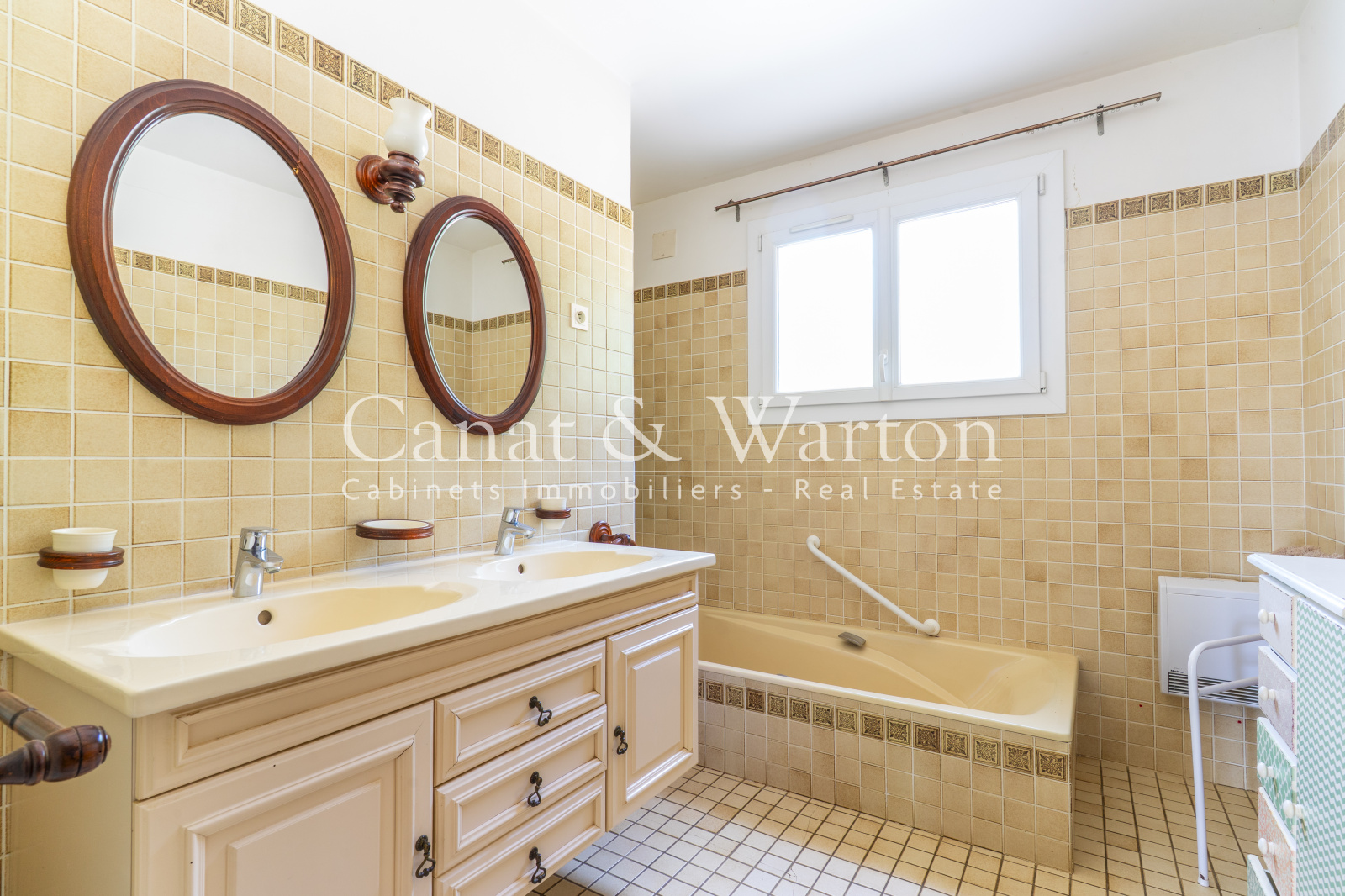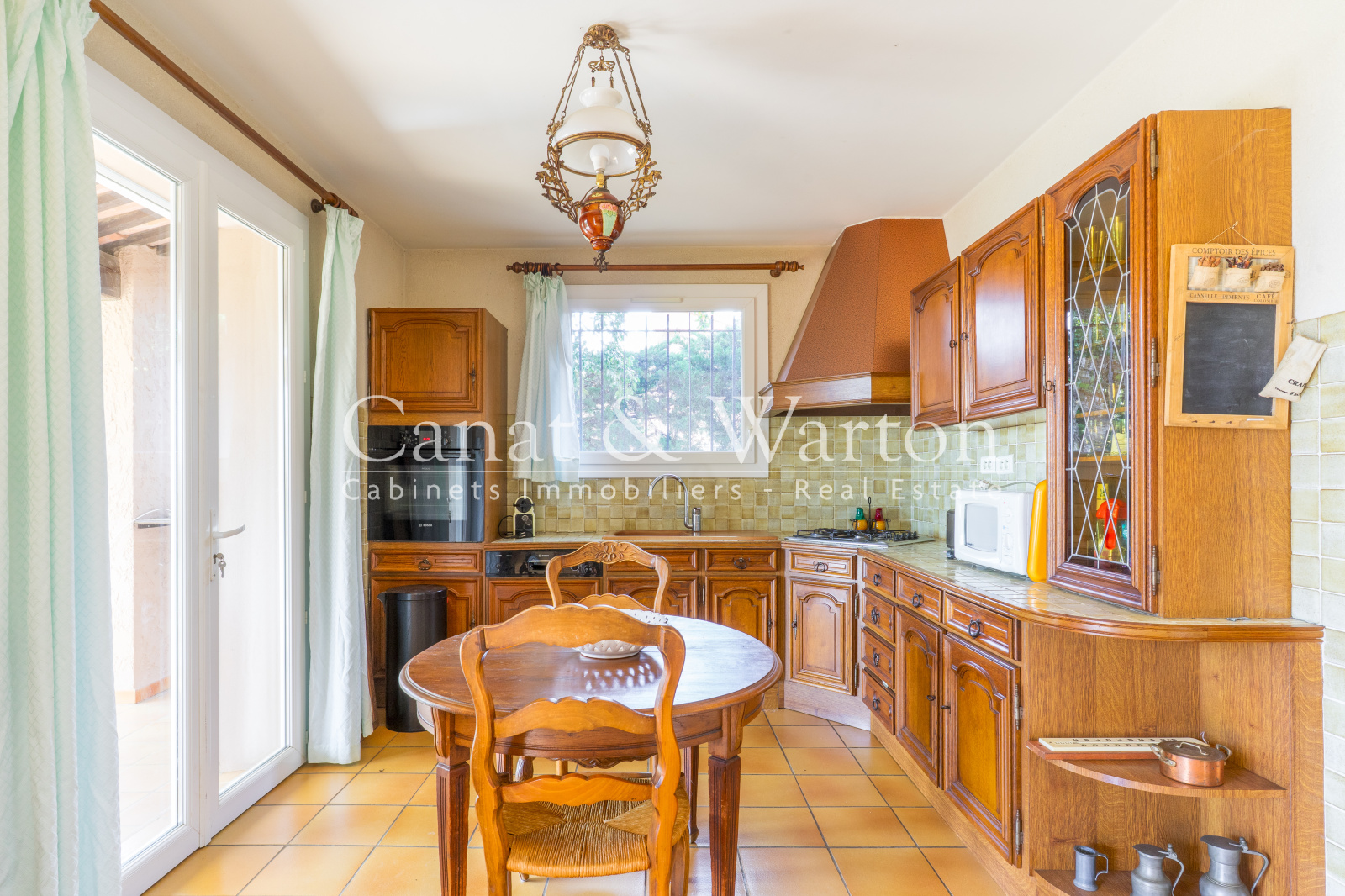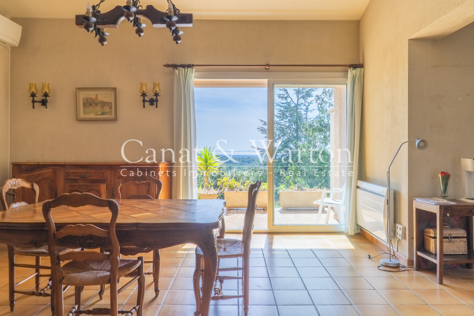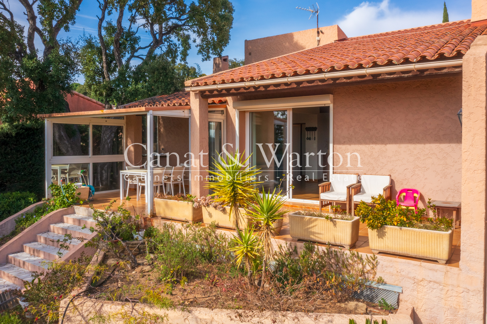 La Londe les Maures, dans le domaine prisé de Valcros, réputé pour son golf, découvrez cette villa traditionnelle, construite dans les années 80, offrant une vue imprenable sur la mer. Au rez-de-chaussée, une belle entrée vous permet d'accéder à un salon chaleureux avec cheminée, prolongé d'une salle à manger avec une belle hauteur sous plafond, ouvrant sur une terrasse face à la mer. La cuisine fonctionnelle donne sur une terrasse couverte, idéale pour vos repas en extérieur. Ce niveau comprend également deux chambres, une salle de bain, un toilette séparé, une buanderie et un patio vitré. En mezzanine, un bureau et une chambre mansardée offrent un espace de travail ou un couchage d'appoint. En rez-de-jardin, un séjour-cuisine s'ouvre sur une terrasse avec vue sur le jardin. Vous y trouverez une grande chambre de 23m², une chambre cabine, une salle d'eau avec toilette, et une cave. À l'extérieur, profitez d'un jardin paysager entièrement clos, en restanques, avec plusieurs espaces de détente : piscine traditionnelle, boulodrome, terrasse couverte et sanitaire. En annexe, un carport et une aire de stationnement complètent ce bien. Cette villa authentique est à rafraîchir et allie charme et confort de vie, idéale pour les amoureux de la nature et de la tranquillité. A voir sans tarder !
