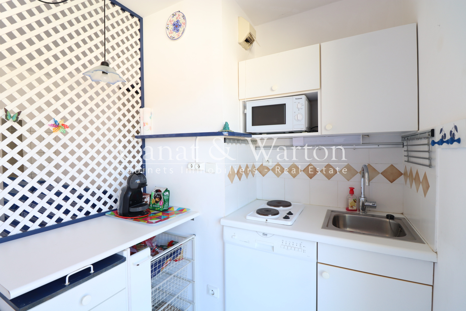 CANAT & WARTON Golfe de Saint Tropez, présente EN EXCLUSIVITÉ ce studio-cabine en dernier étage avec ascenseur à Cavalaire. Idéalement situé à 100 mètres de la plage de Cavalaire, ce studio-cabine est de 26,30 m2 loi Carrez avec une terrasse ouverte d'environ 8 m2 exposée Ouest. Composé par un hall d'entrée en cabine, séjour avec une cuisine ouverte équipée, salle de douche & wc. Parfait pour les vacances comme résidence secondaire. Copropriété loi N°65-557 du 10 juillet 1965 : 90 lots - Quote-part/an : 750 € - Aucune procédure en cours. Les informations sur les risques auxquels ce bien est exposé sont disponibles sur le site Géorisques www.georisques.gouv.fr. Flavien GRANDMAIRE, directeur de l'agence CANAT & WARTON Golfe de Saint Tropez est à votre disposition au 143 Rue du Port 83240 Cavalaire (+33)647524642 canatwartoncavalaire@gmail.com WE SPEAK ENGLISH-WIR SPRECHEN DEUTSCH. 2 AGENCES IMMOBILIÈRES DANS LE GOLFE DE SAINT TROPEZ: CAVALAIRE ET LA CROIX VALMER