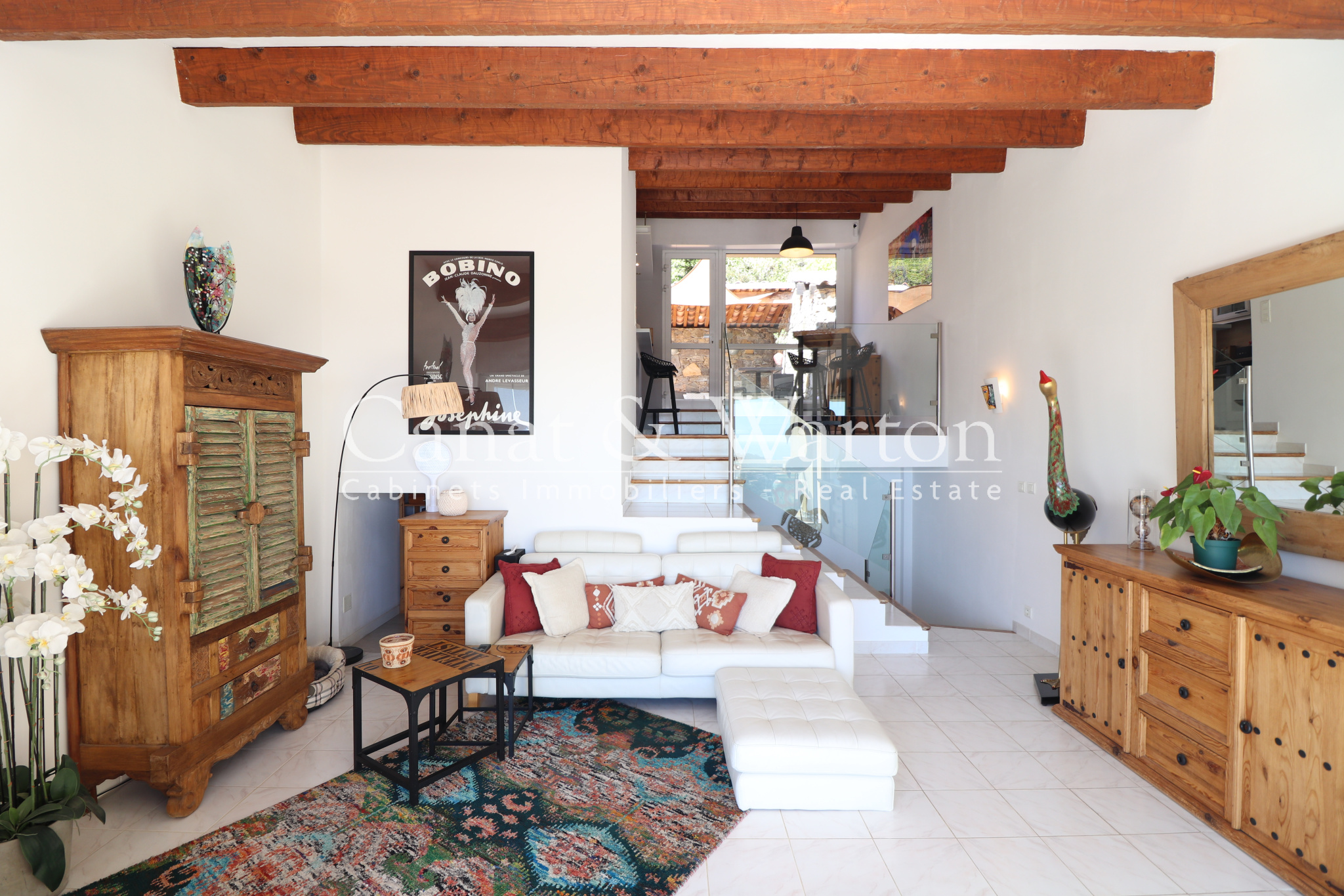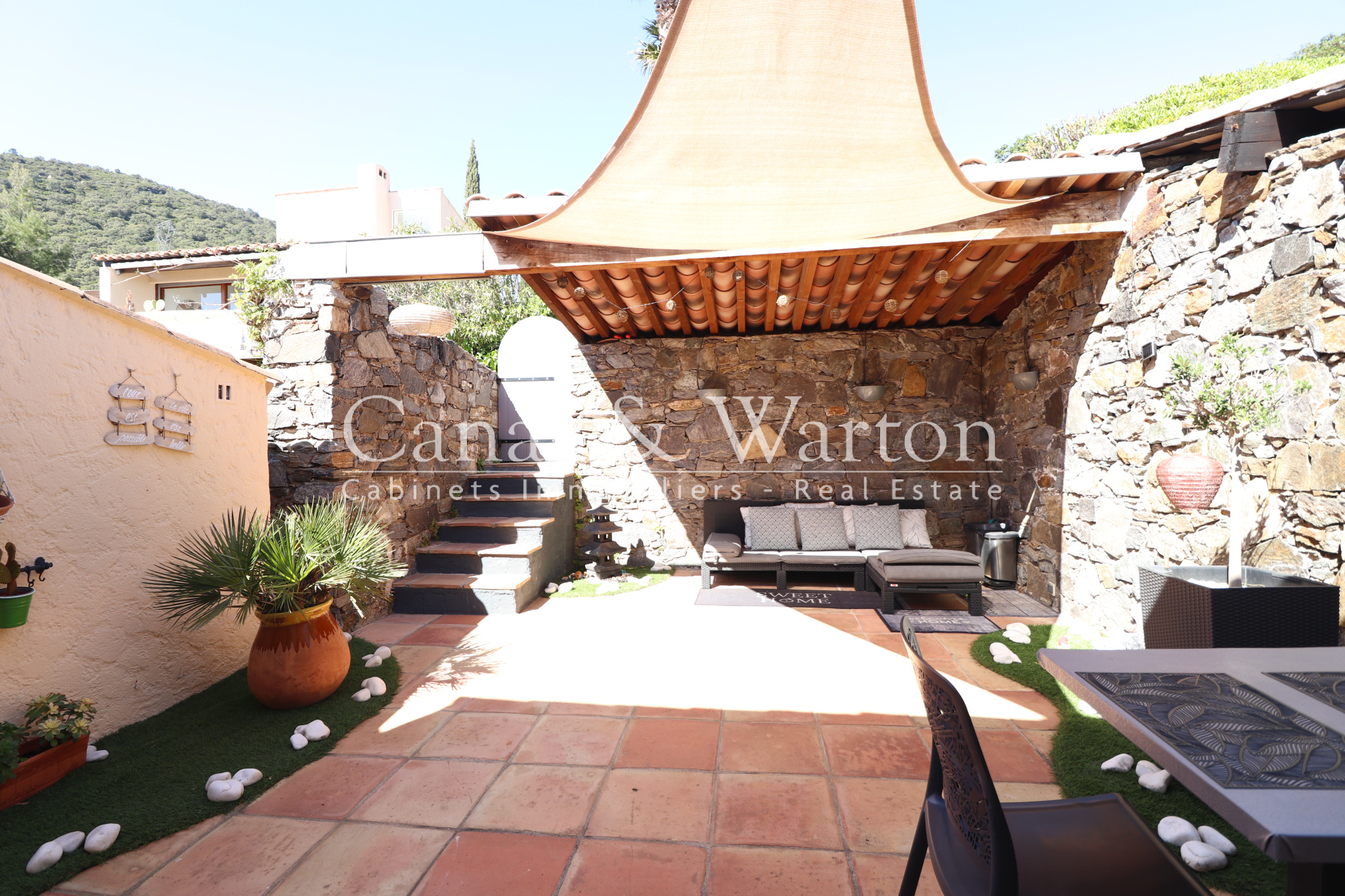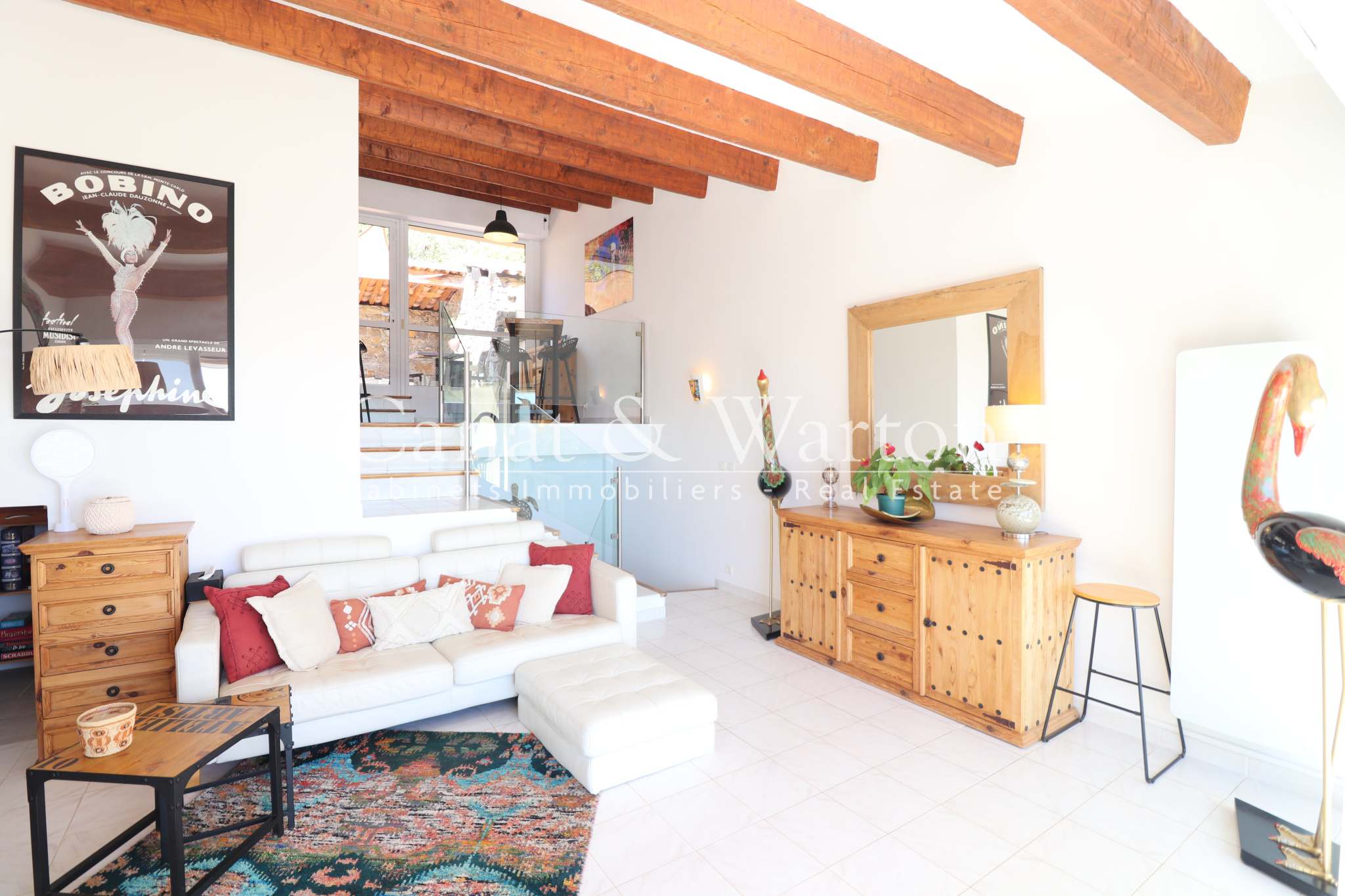 CANAT & WARTON Golfe de Saint Tropez, présente ce mazet rénové à Cavalaire offrant une vue exceptionnelle sur la baie et les collines. Idéalement situé au calme dans une impasse, ce mazet jumelé de 77.40m² loi Carrez surplombant la Baie de Cavalaire est conçu en triplex avec une exposition Sud-ouest et 2 terrasses. Vous serez accueillis par une première terrasse et barbecue, le tout donnant directement sur l'entrée, cuisine ouverte équipée avec cellier, salle à manger. En demi-niveau inférieur, séjour d'environ 20 m² ouvrant sur une terrasse d'environ 10 m². Au niveau inférieur, grand dressing pouvant être transformé en chambre supplémentaire et une salle de douche et wc. Ensuite 2 chambres climatisées avec la vue vue mer. Parking privatif vient compléter ce bien. Copropriété loi N°65-557 du 10 juillet 1965 : 42 lots - Quote-part/an : 1400 € - Aucune procédure en cours. Les informations sur les risques auxquels ce bien est exposé sont disponibles sur le site Géorisques www.georisques.gouv.fr. Flavien GRANDMAIRE, directeur de l'agence CANAT & WARTON Golfe de Saint Tropez est à votre disposition au 143 Rue du Port 83240 Cavalaire (+33)647524642 canatwartoncavalaire@gmail.com WE SPEAK ENGLISH-WIR SPRECHEN DEUTSCH. 2 AGENCES IMMOBILIÈRES DANS LE GOLFE DE SAINT TROPEZ: CAVALAIRE ET LA CROIX VALMER