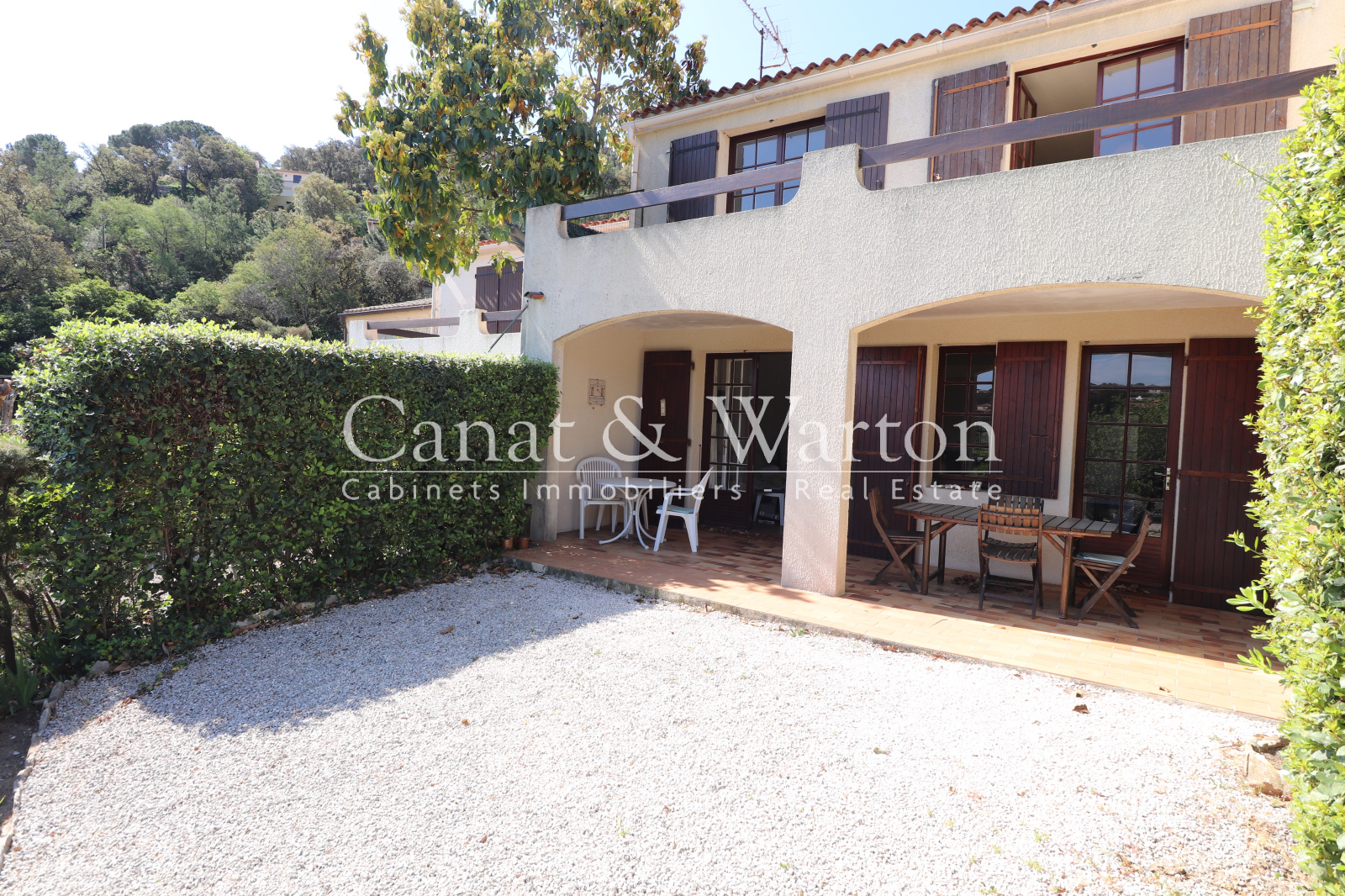 CANAT & WARTON Golfe de Saint Tropez, présente ce mas à Cavalaire avec vue mer situé au calme dans une petite copropriété avec une piscine. Ce mas est de 81,71 m2 loi Carrez avec une terrasse de 20 m2 et un jardin d'environ 50 m2. Petite vue mer. Une copropriété sécurisée de seulement 5 mas. Il est composé par un hall d'entrée, séjour/ salle à manger, une cuisine séparée avec l'accès sur la terrasse, 2 chambres ouvrant sur un balcon, une salle de douche & wc séparé. Un garage de 22 m2 vient compltéter ce bien. Copropriété loi N°65-557 du 10 juillet 1965 : 5 lots - Quote-part/an : 2 500 € - Procédure en cours. Les informations sur les risques auxquels ce bien est exposé sont disponibles sur le site Géorisques www.georisques.gouv.fr. Flavien GRANDMAIRE, directeur de l'agence CANAT & WARTON Golfe de Saint Tropez est à votre disposition au 143 Rue du Port 83240 Cavalaire (+33)647524642 canatwartoncavalaire@gmail.com WE SPEAK ENGLISH-WIR SPRECHEN DEUTSCH