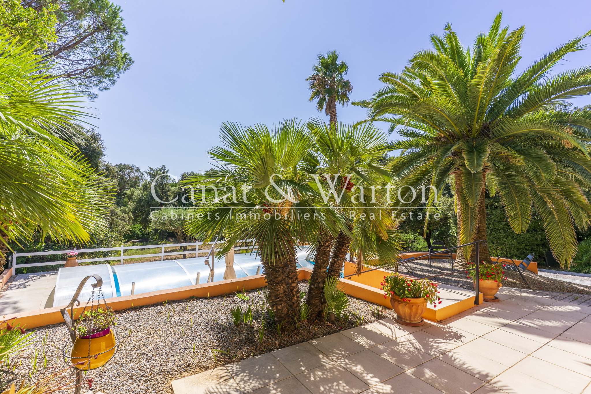 CANAT & WARTON Golfe de Saint Tropez presents this villa in a private estate in La Croix Valmer. Ideally located 500 meters from the village and 1.5 km from the beach, this detached villa offers approximately 120 m² of living space on a flat, landscaped plot of 2,477 m². It comprises an entrance hall, a spacious living room with a fully equipped open-plan kitchen, four bedrooms, two shower rooms, and three toilets. A large cellar is also included. Several south-facing terraces offer complete privacy. A swimming pool surrounds a beautiful landscaped garden. A pétanque court and ample parking complete this property. Flavien GRANDMAIRE, director of the CANAT & WARTON Golfe de Saint Tropez agency, is available at 143 Rue du Port, 83240 Cavalaire, France (+33)647524642, canatwartoncavalaire@gmail.com. WE SPEAK ENGLISH - WIR SPRECHEN DEUTSCH. Information on the risks to which this property is exposed is available on the Géorisques website: www.georisques.gouv.fr. 2 REAL ESTATE AGENCIES IN THE GULF OF SAINT-TROPEZ: CAVALAIRE AND LA CROIX-VALMER