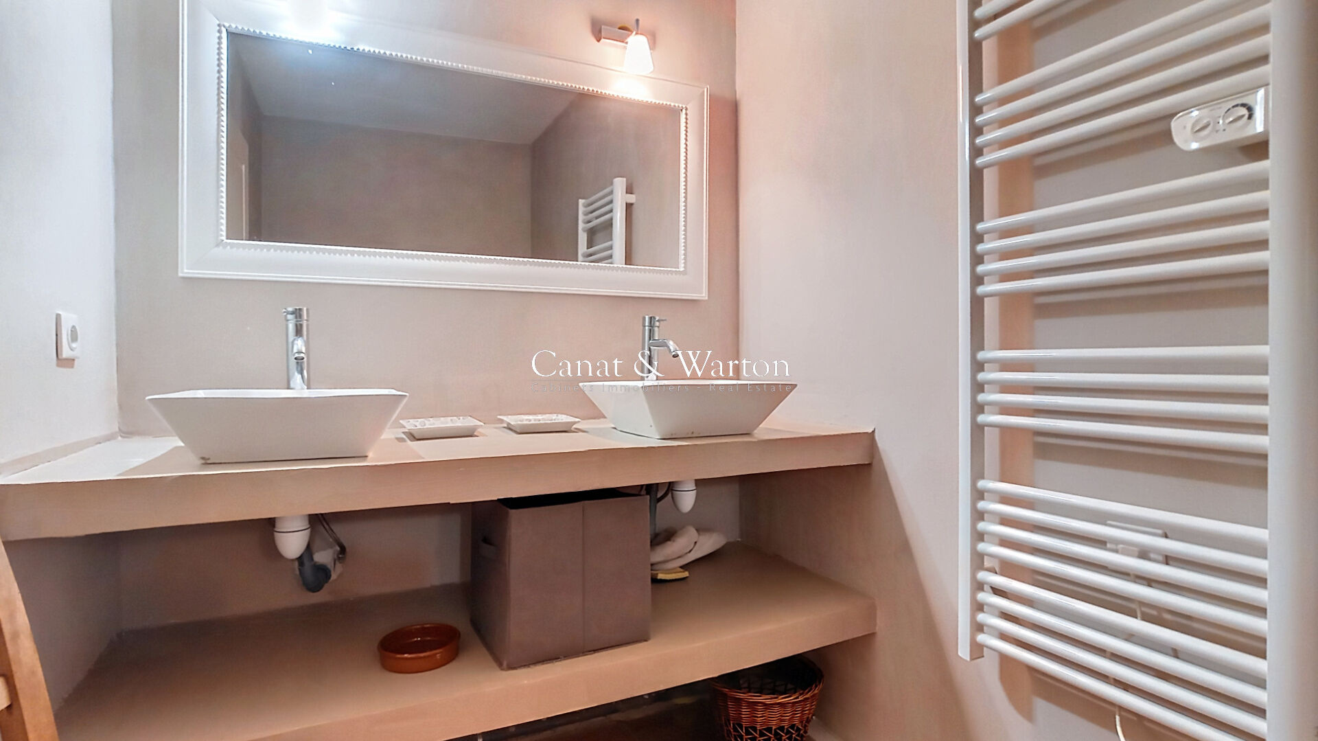 Dès l'entrée, le ton est donné : un vaste hall dessert un séjour chaleureux baigné de lumière ainsi qu'une grande cuisine indépendante entièrement équipée, tous deux ouverts sur les terrasses et le jardin. Deux chambres avec salle d'eau privative complètent ce niveau, ainsi que des sanitaires indépendants.
