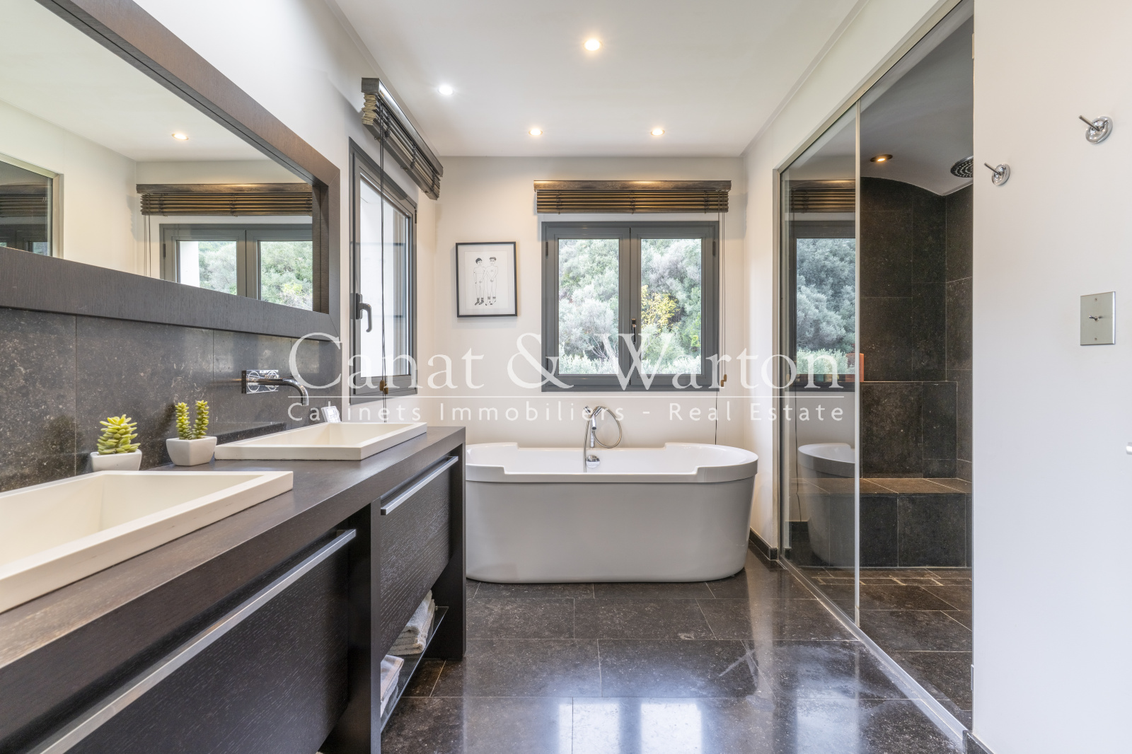 À l’étage, un espace bureau précède une splendide suite parentale bénéficiant d’une terrasse privative, d’un dressing sur mesure et d’une salle de bains équipée d’une baignoire et d’une grande douche hammam.