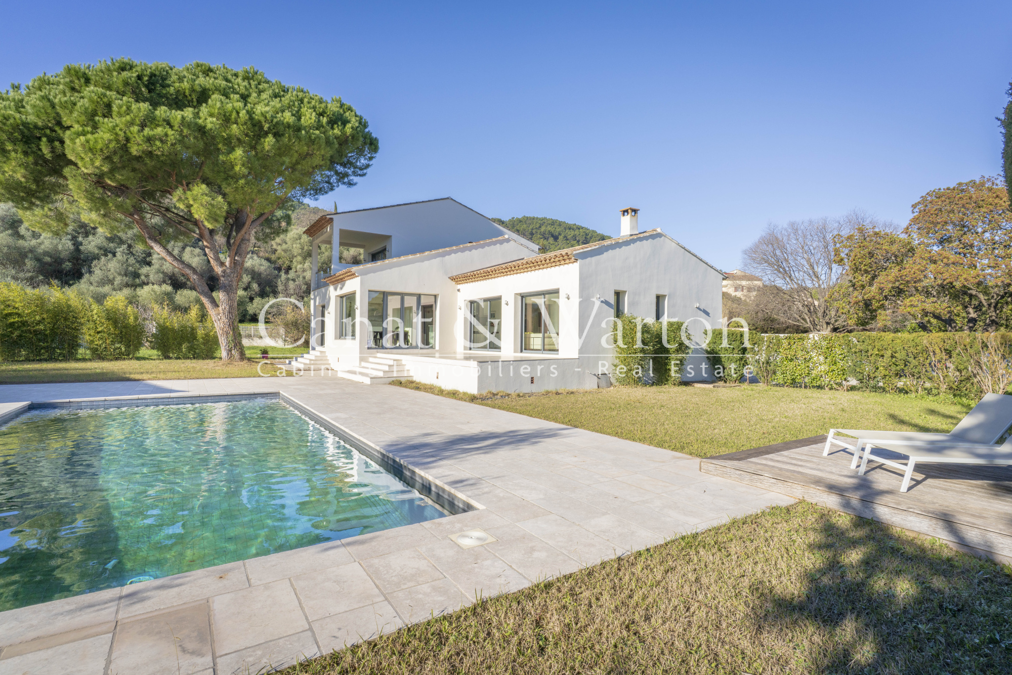 À l’extérieur, un magnifique terrain plat, clos et arboré de plus 2 000 m² accueille de jolis arbres fruitiers et un pool house de 30 m² avec cuisine équipée et wc.
