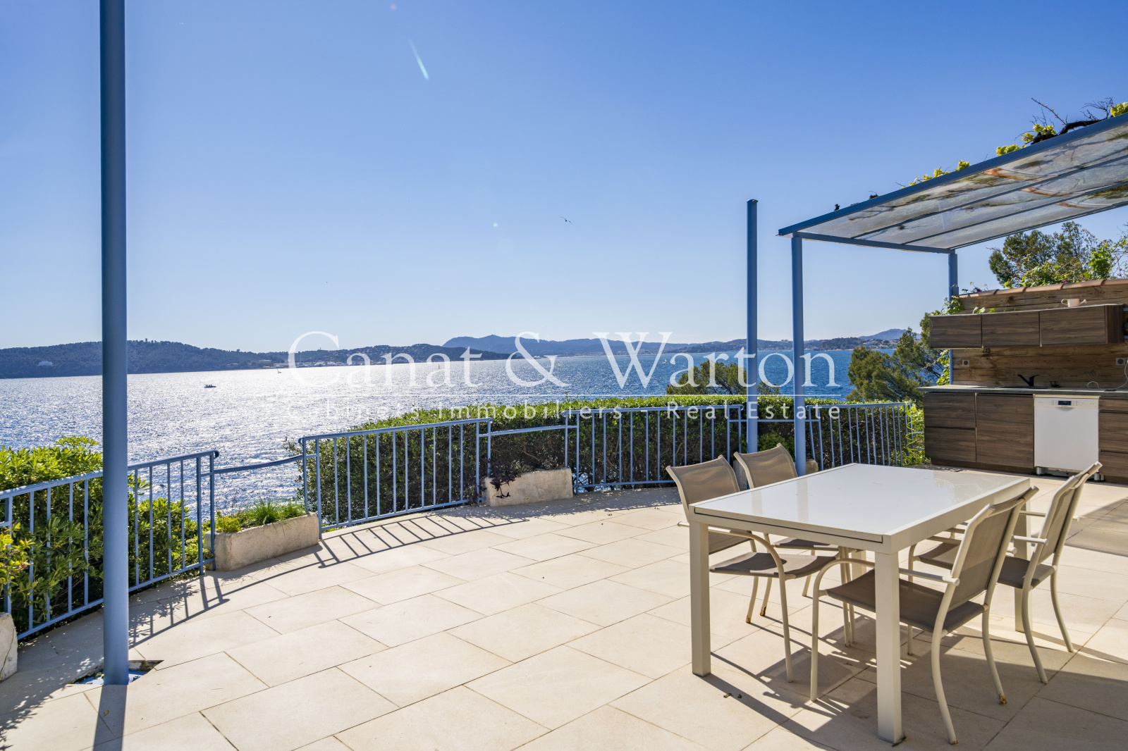 Idéalement située en première ligne, les pieds dans l’eau, Canat & Warton vous propose cette villa méditerranéenne de 165 m², nichée en pleine nature dans un cadre paisible et préservé. Elle bénéficie d’un accès direct à des criques sauvages ainsi que d’une vue panoramique exceptionnelle sur la baie de Toulon.