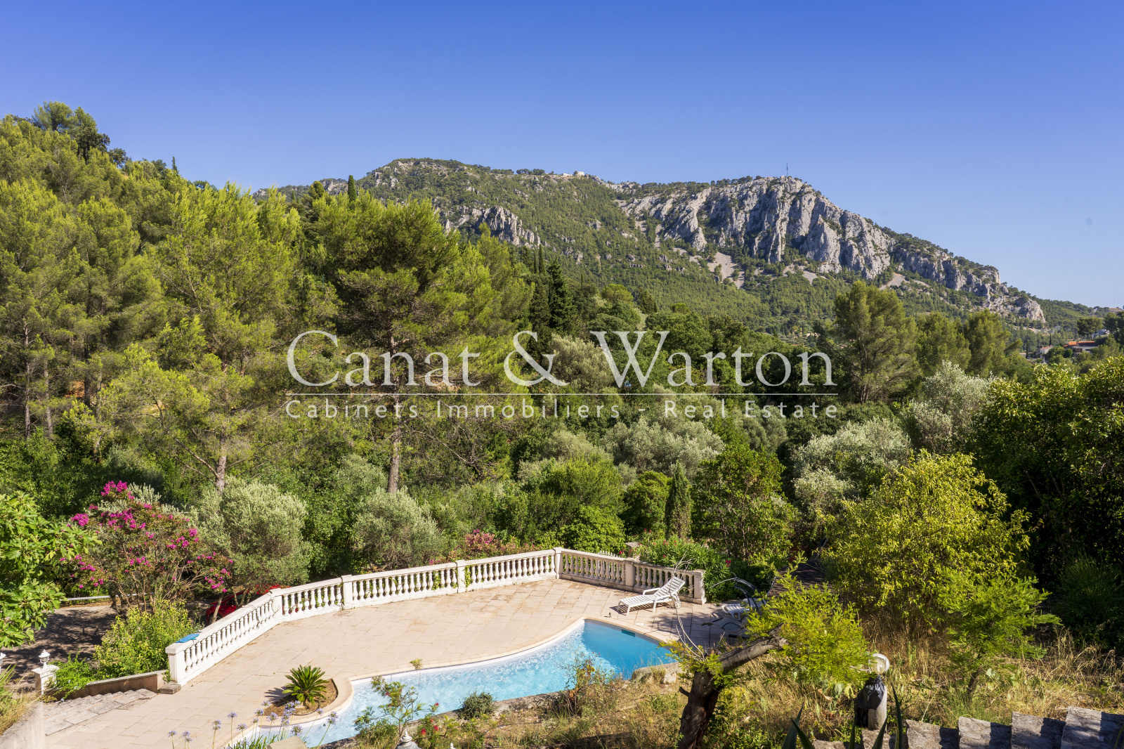 Toulon Ouest, dans un environnement bucolique avec vue sur le Mont Faron, nous vous proposons cette belle villa traditionnelle d'environ 140m2. La villa vous offre au rez-de-chaussée un espace salon - salle à manger avec cheminée et sa cuisine équipée, une chambre et une salle d'eau. A l'étage, vous trouverez 3 chambres dont une avec placards, une salle de bains, toilette. Nombreux rangements. Un très bel espace piscine sur un terrain de 3200 m2. Pour les amateurs de campagne proche des commodités.