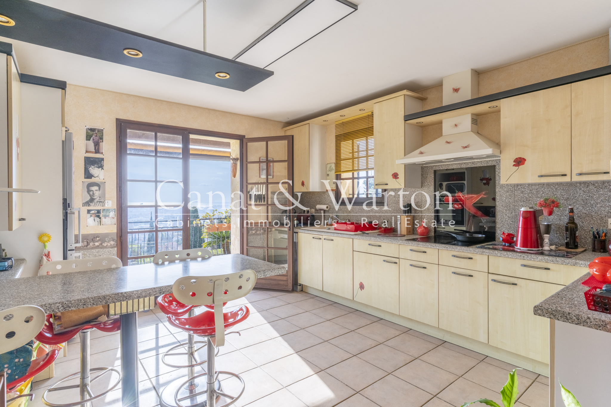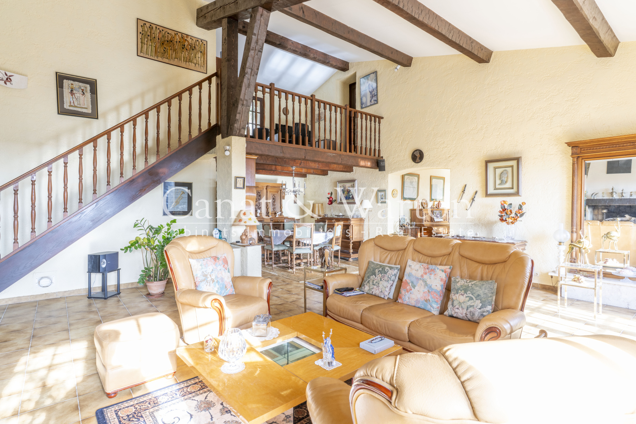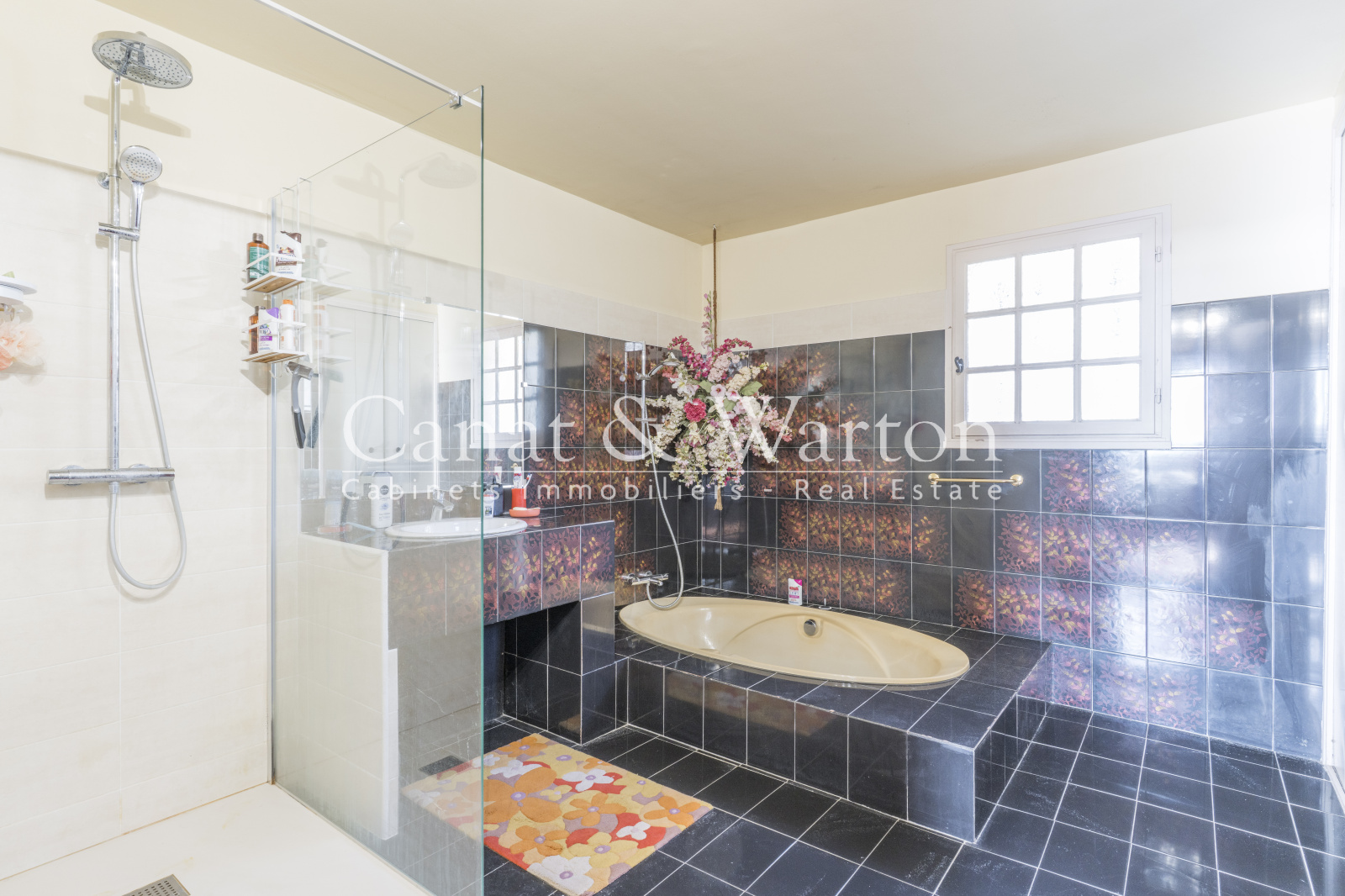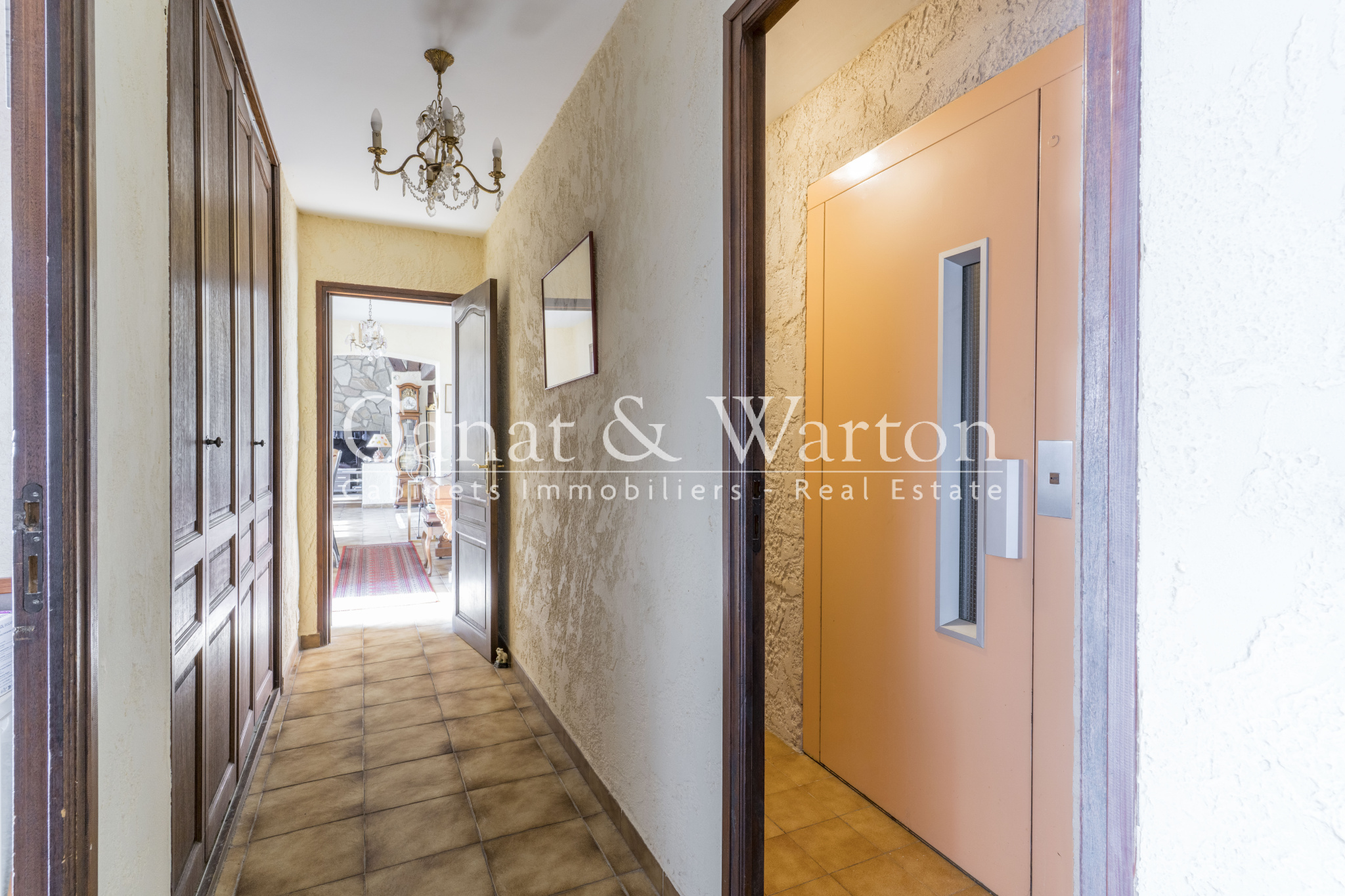 La villa dispose également d’un vaste garage de 36 m², d’un ascenseur desservant le niveau principal, ainsi que d’une cave et d’un atelier, apportant de précieux espaces de rangement et annexes.