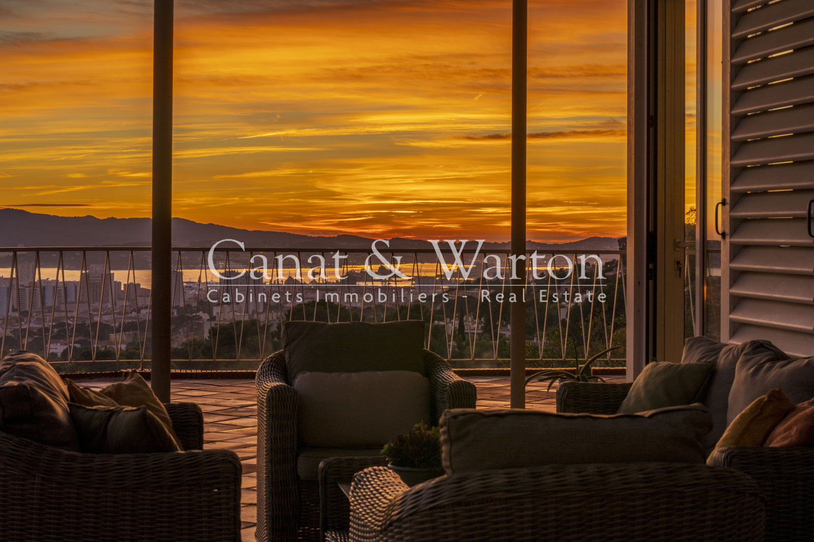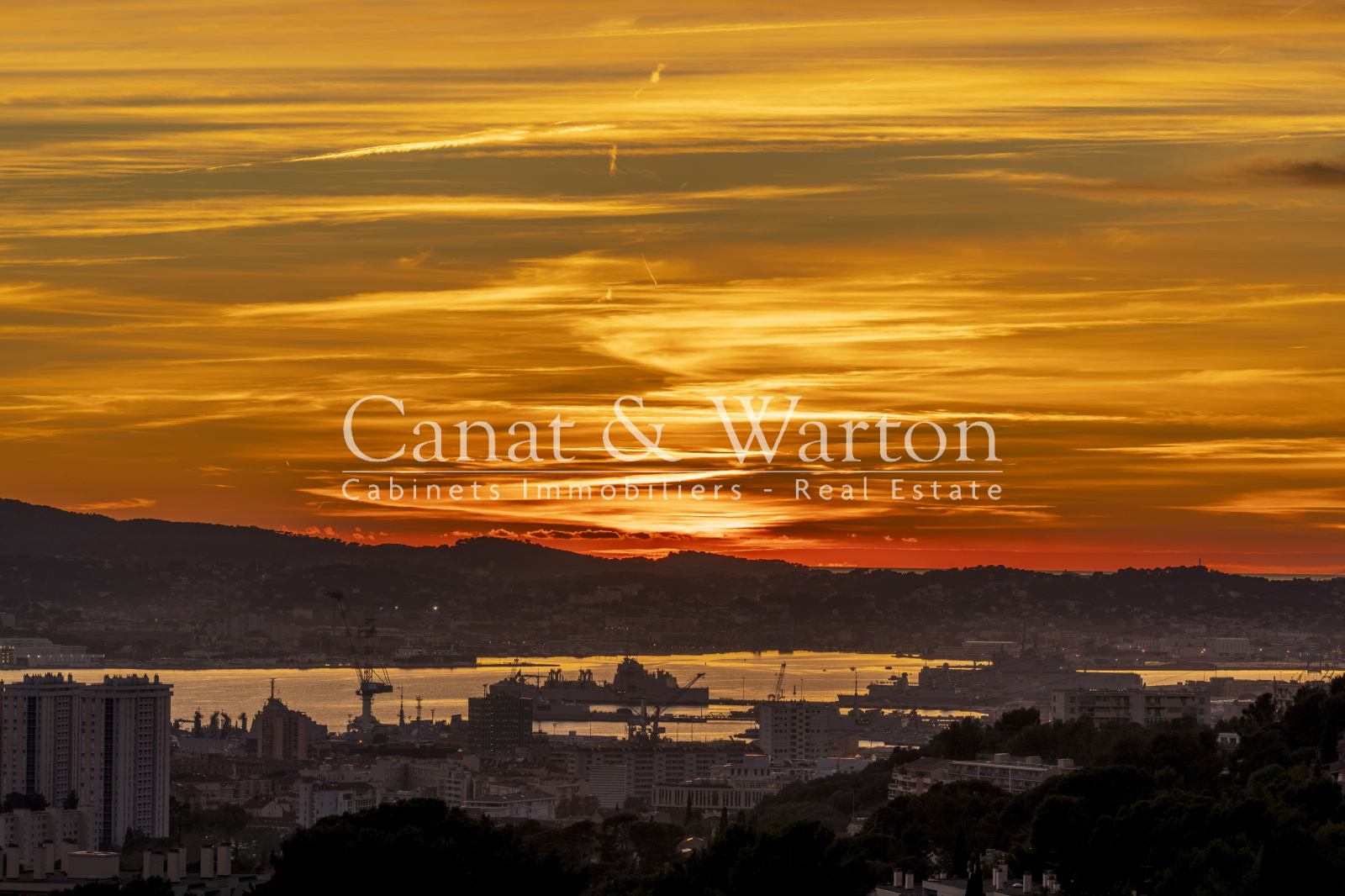 TOULON FARON MAGNIFIQUE VILLA D'ARCHITECTE VUE MER édifiée en 1963 sur une parcelle de plus de 6300m² de terrain au calme et bénéficiant d'une magnifique vue mer panoramique orientée Sud-Ouest.