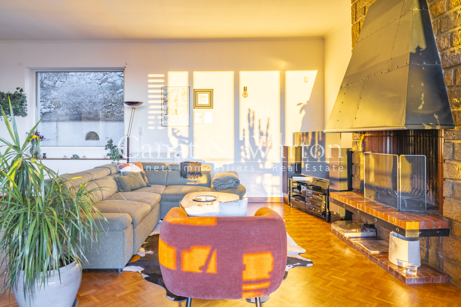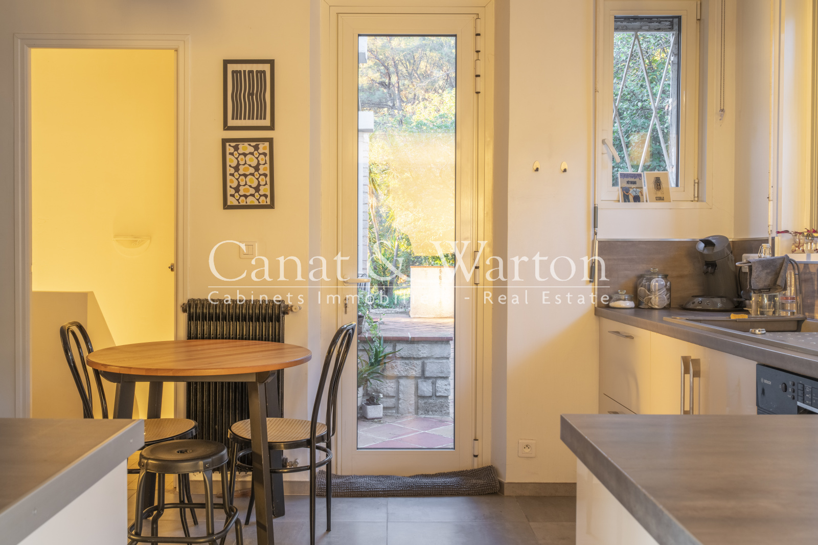 Au rez-de-jardin : accessible par son escalier intérieur, un salon, deux chambres, une buanderie, une chaufferie, une salle d'eau, un grand garage de 45m² et une cave.