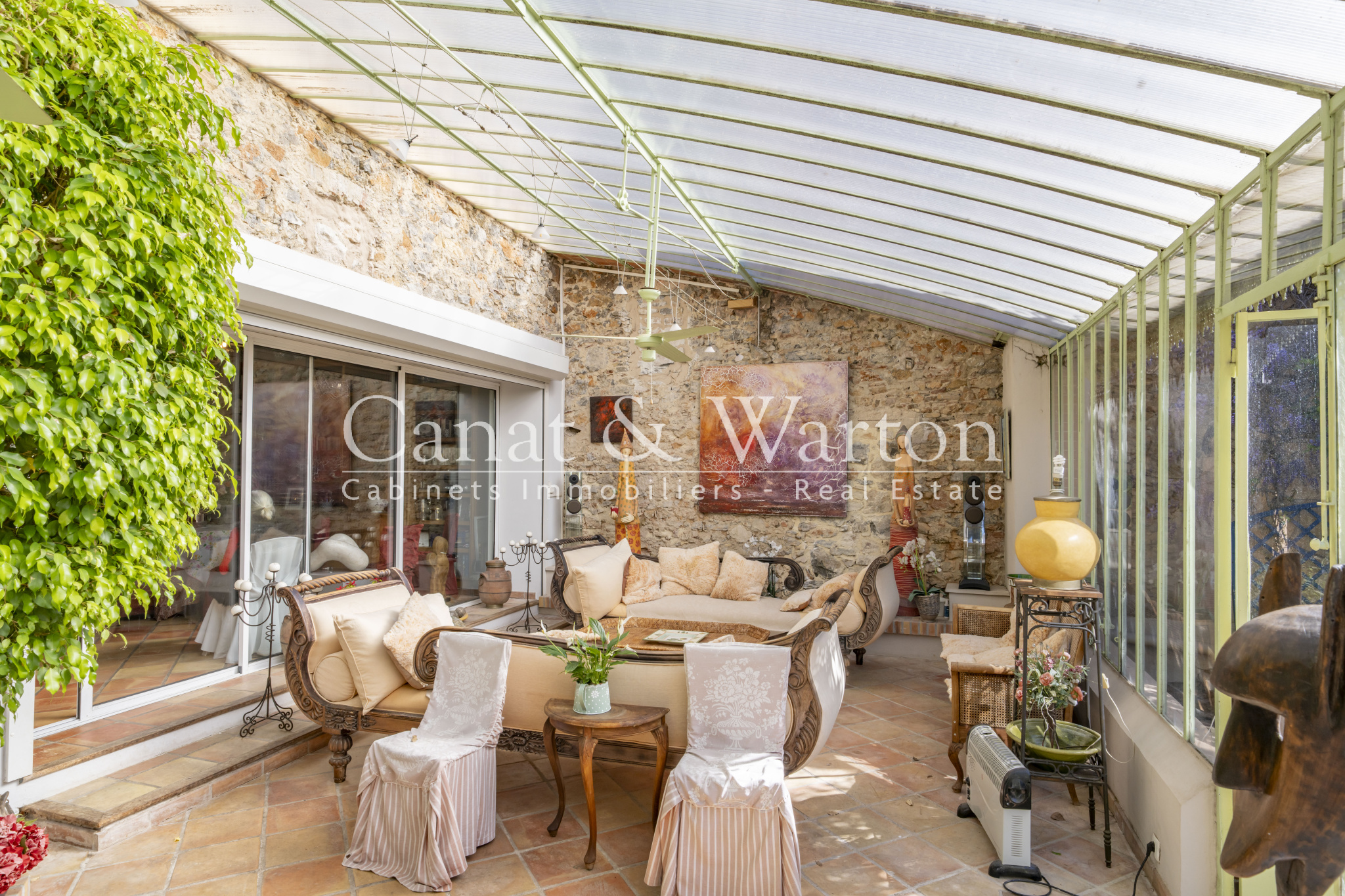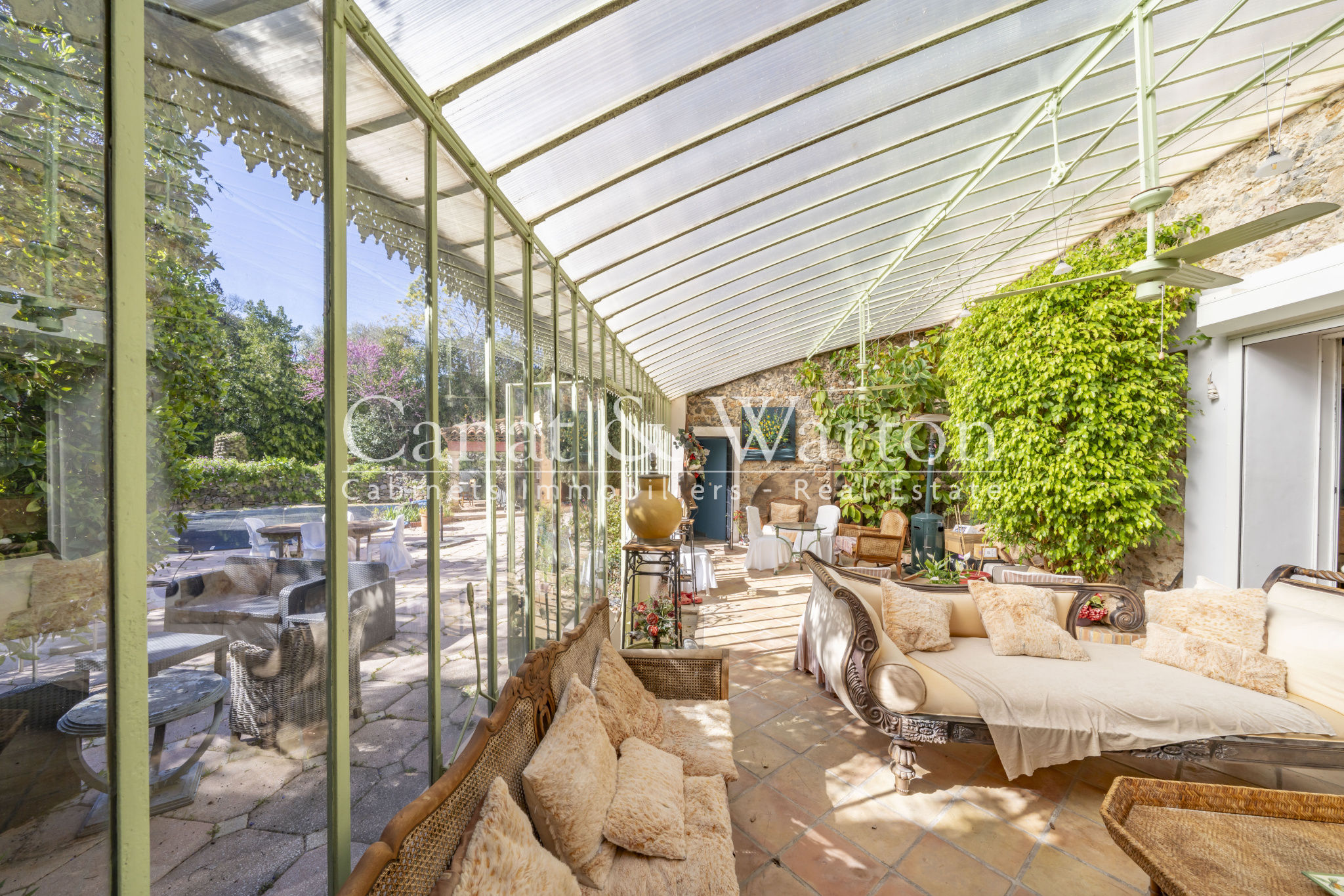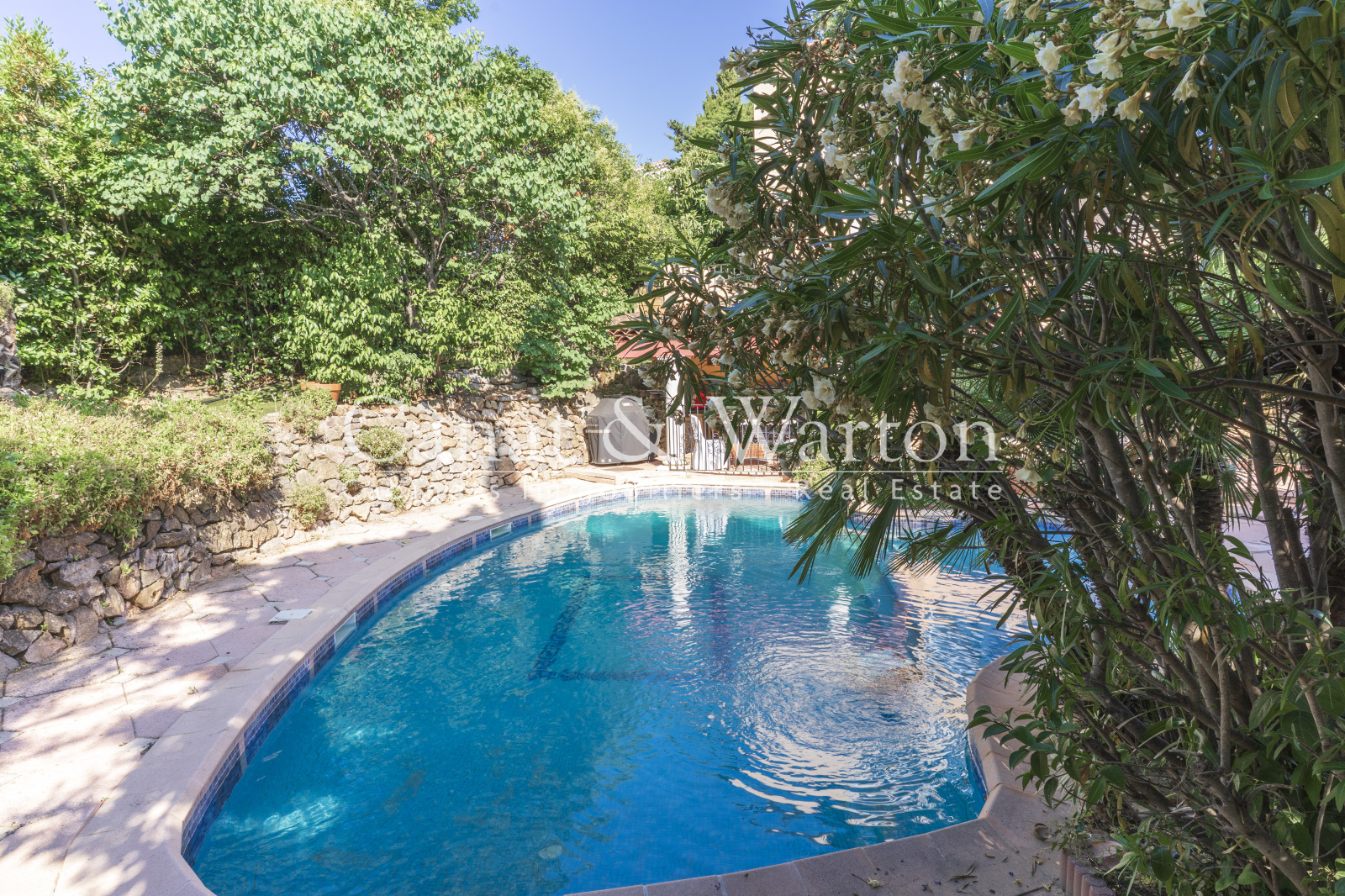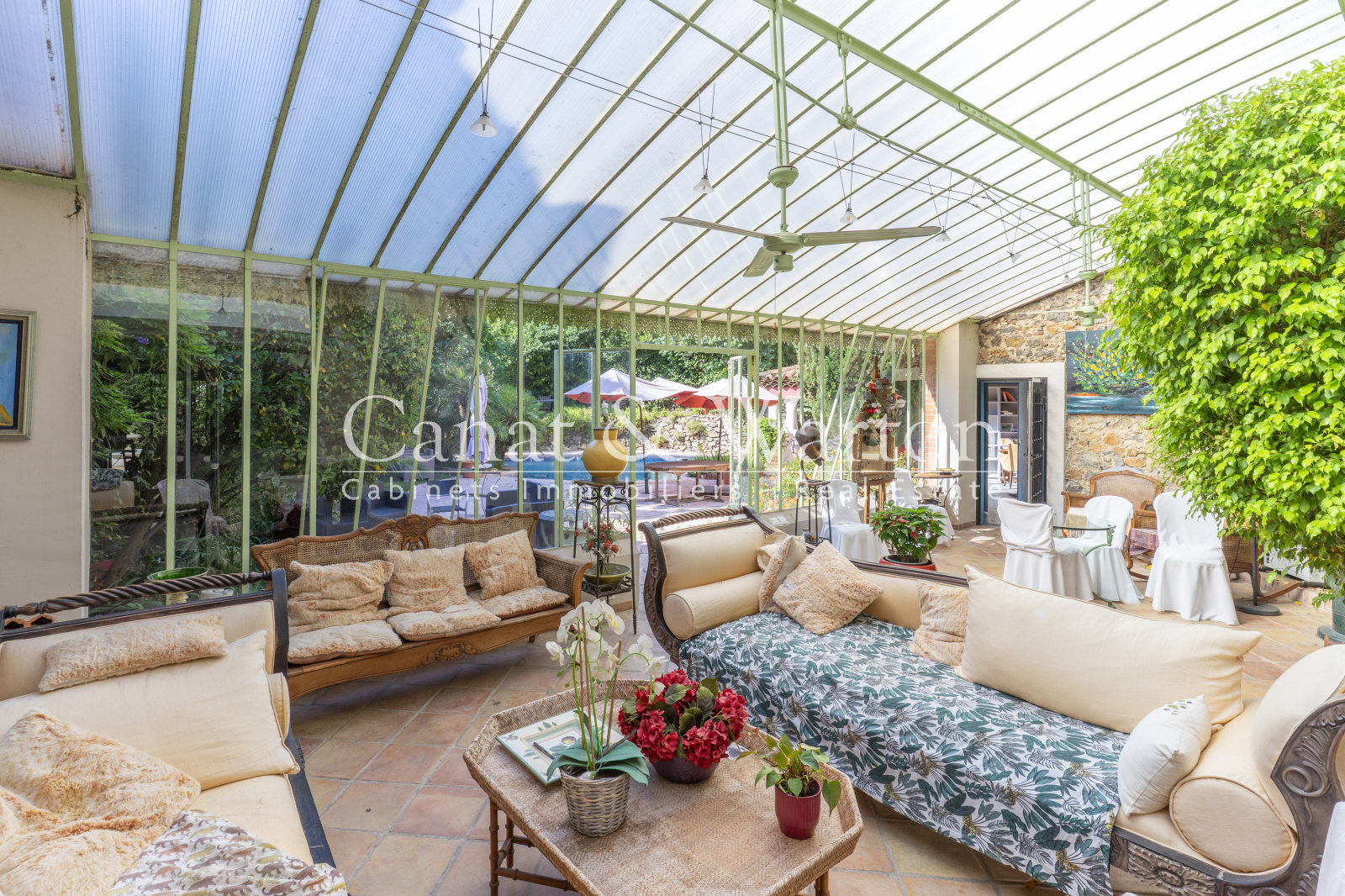 TOULON CAP BRUN, nichée dans son écrin de verdure à l'abris des regard, pour cette propriété de charme très bien située, au plus grand calme et à un quart d'heure à pieds des criques sauvages. La maison principale développe des volumes très spacieux baignés de lumière. Le séjour de plus de 65 m² dispose d'une cheminée et d'un plafond cathédrale avec charpente apparente qui lui confère beaucoup de caractère. Une magnifique verriere Napoleon III sert de liaison entre la pièce à vivre et le jardin et offre un bel espace de réception. L'espace piscine est entouré de larges plages et sans aucun vis à vis, le jardin étant intime et très verdoyant. Cuisine équipée de qualité traitée elle aussi en verrière, patio végétalisé, 4 chambres traitées en suite dont une de plain-pied donnant sur terrasse et jardin, espace bureau. Un studio indépendant de 30 m² environ complète l'ensemble et peut constituer un logement de gardien. Propriété coup de coeur ! DPE C.