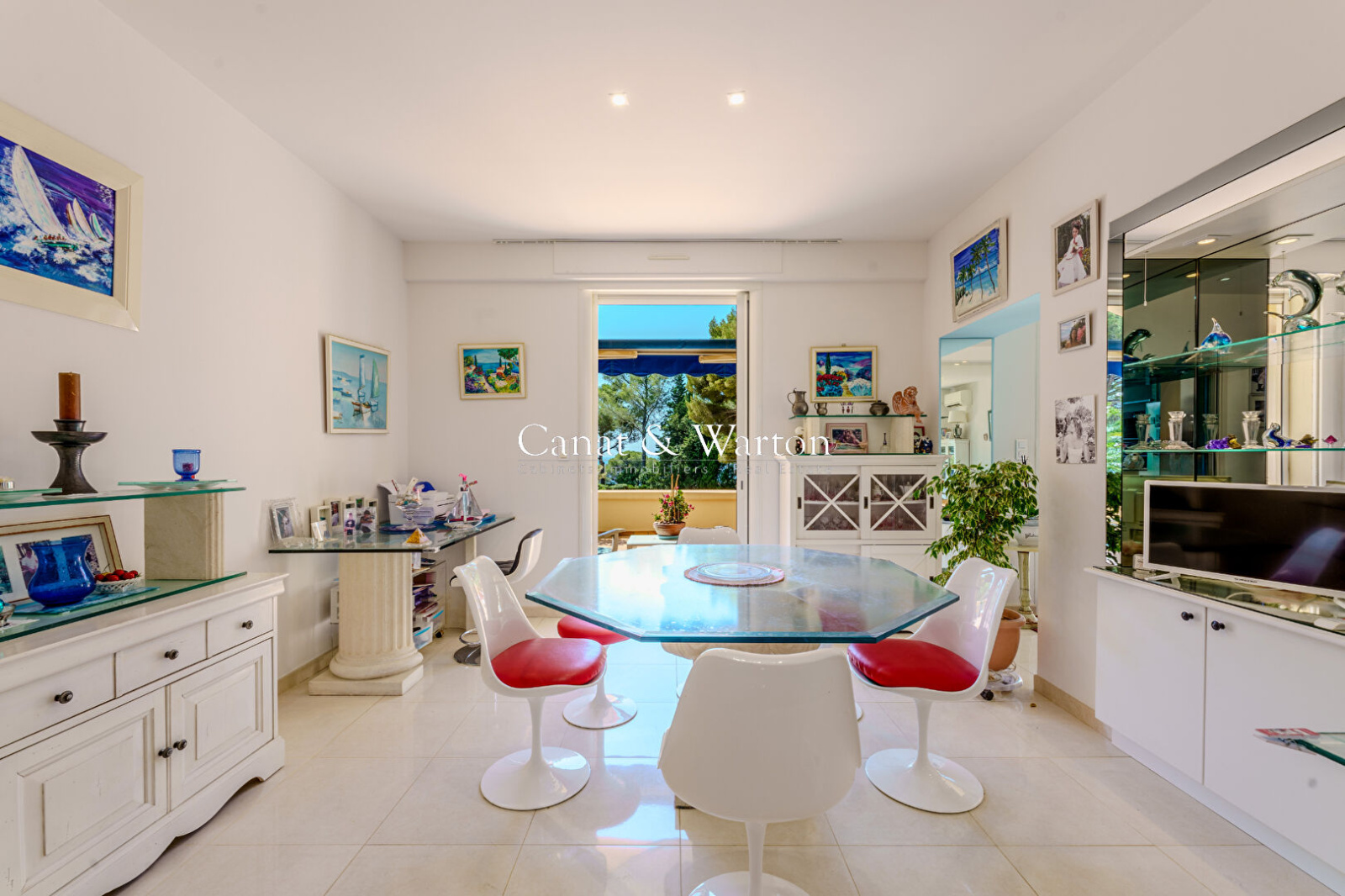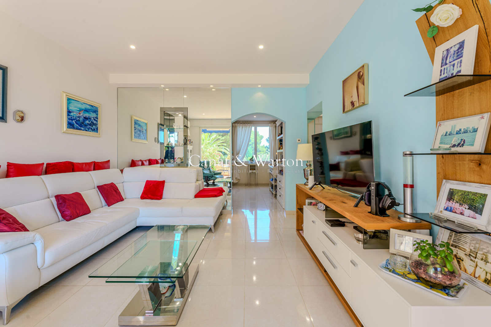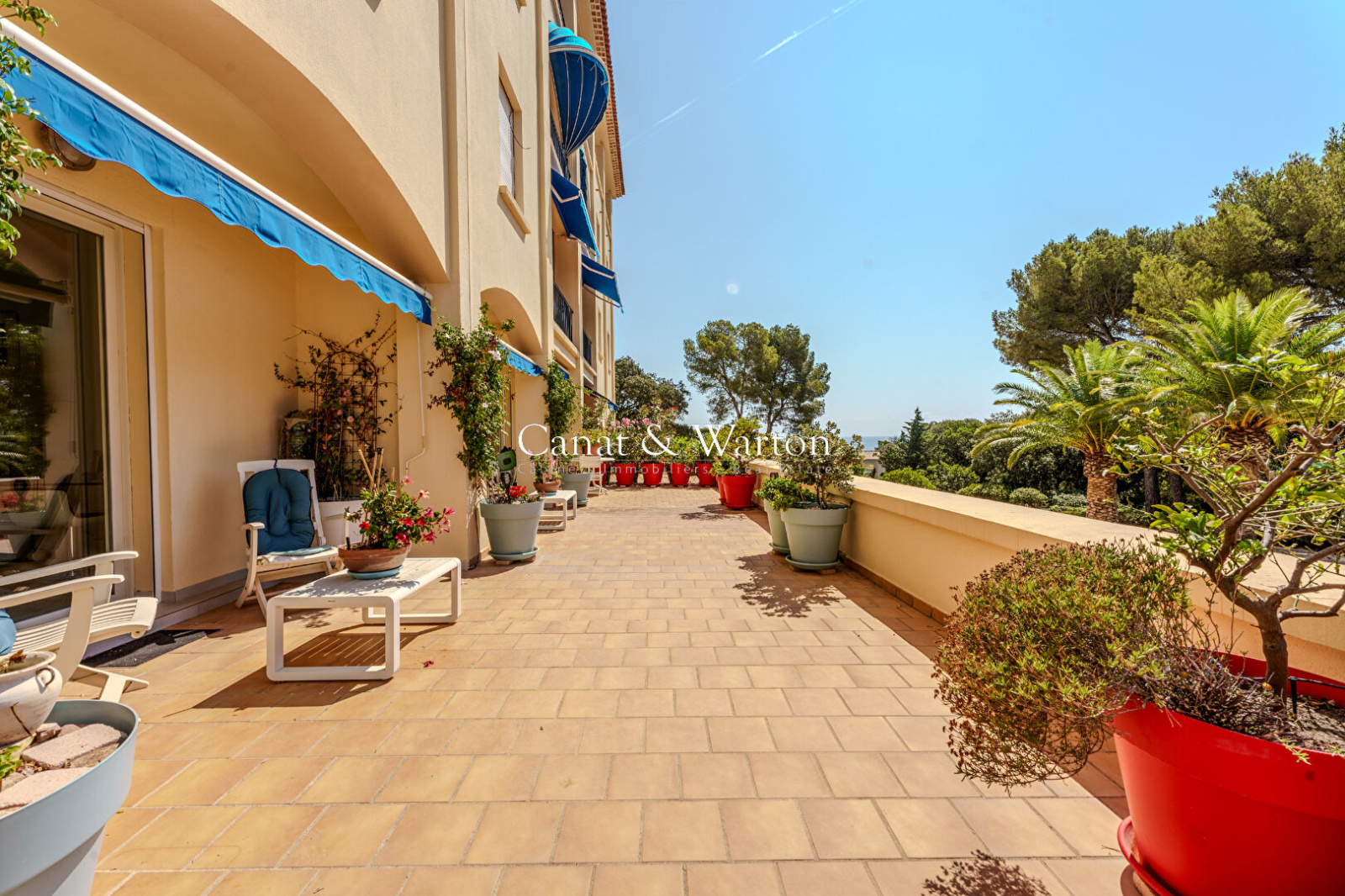 L'appartement séduit par son vaste séjour baigné de lumière, ouvert sur une exceptionnelle terrasse de 85 m² orientée face à la mer. Une cuisine semi-ouverte, entièrement équipée et accompagnée d'une arrière-cuisine fonctionnelle, complète harmonieusement l'espace de vie.