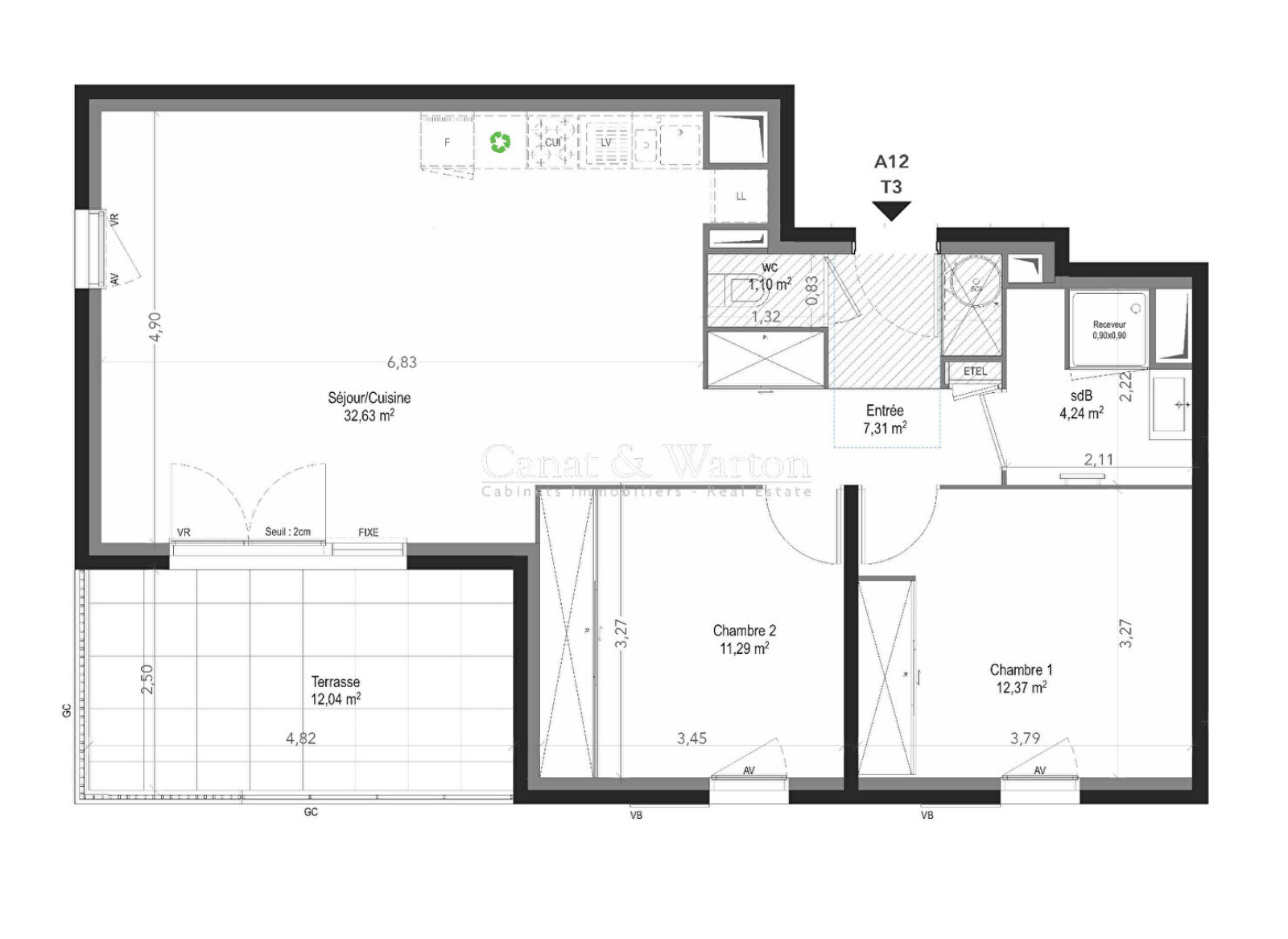 Résidence de standing seulement quelques lots. Appartement spacieux T3 avec terrasse.