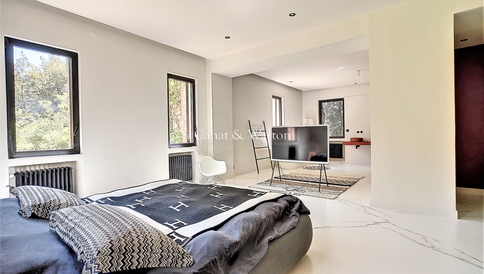 À l'intérieur, vous serez immédiatement séduit par la pièce de vie baignée de lumière, offrant une vue imprenable sur le jardin. La villa dispose également d'un séjour de 100m², de cinq chambres, dont deux suites, un bureau sous véranda, offrant tout le confort nécessaire pour une vie paisible et agréable.