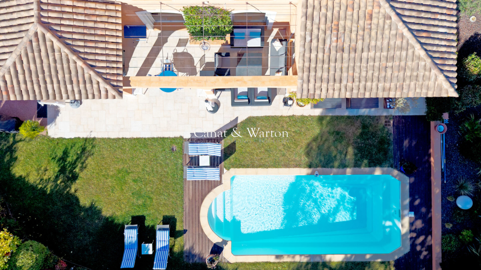 Édifiée sur un jardin paysager sans vis-à-vis, elle offre une agréable piscine exposée plein sud et de beaux espaces de détente.
