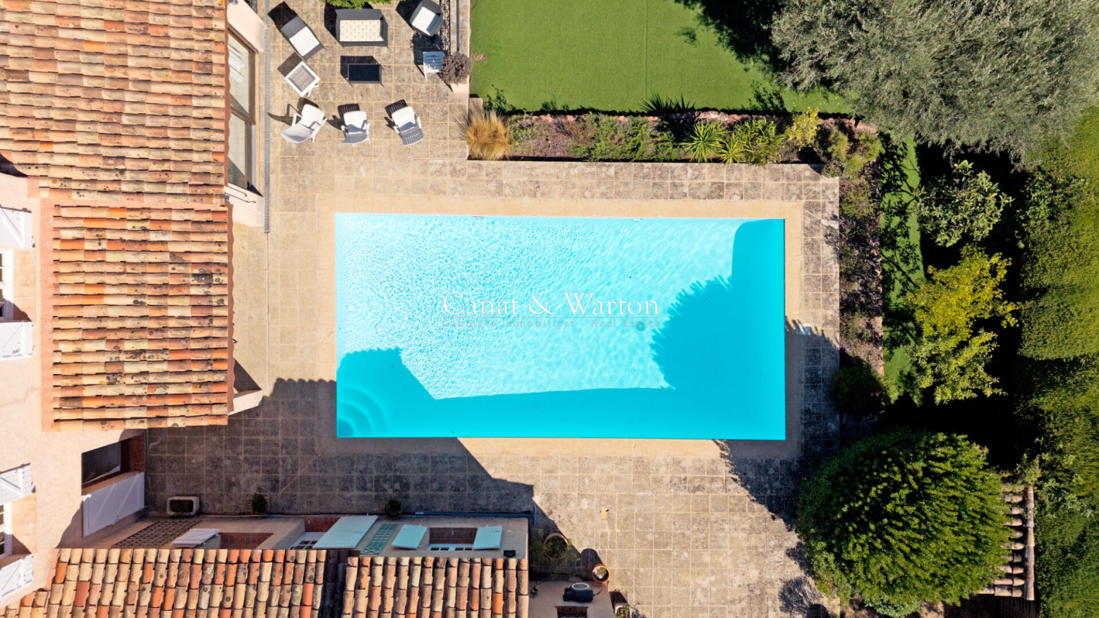 Édifiée sur un terrain arboré de 1 300 m², la propriété séduit par son jardin soigné et sa piscine 9 x 4,50 m.