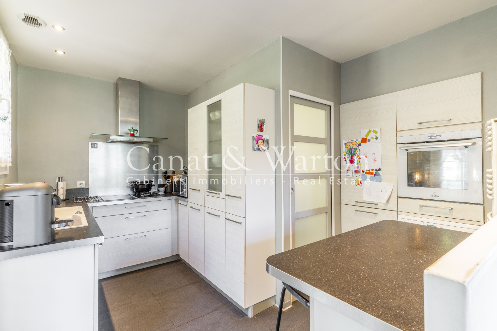 La cuisine semi-ouverte allie convivialité et fonctionnalité.