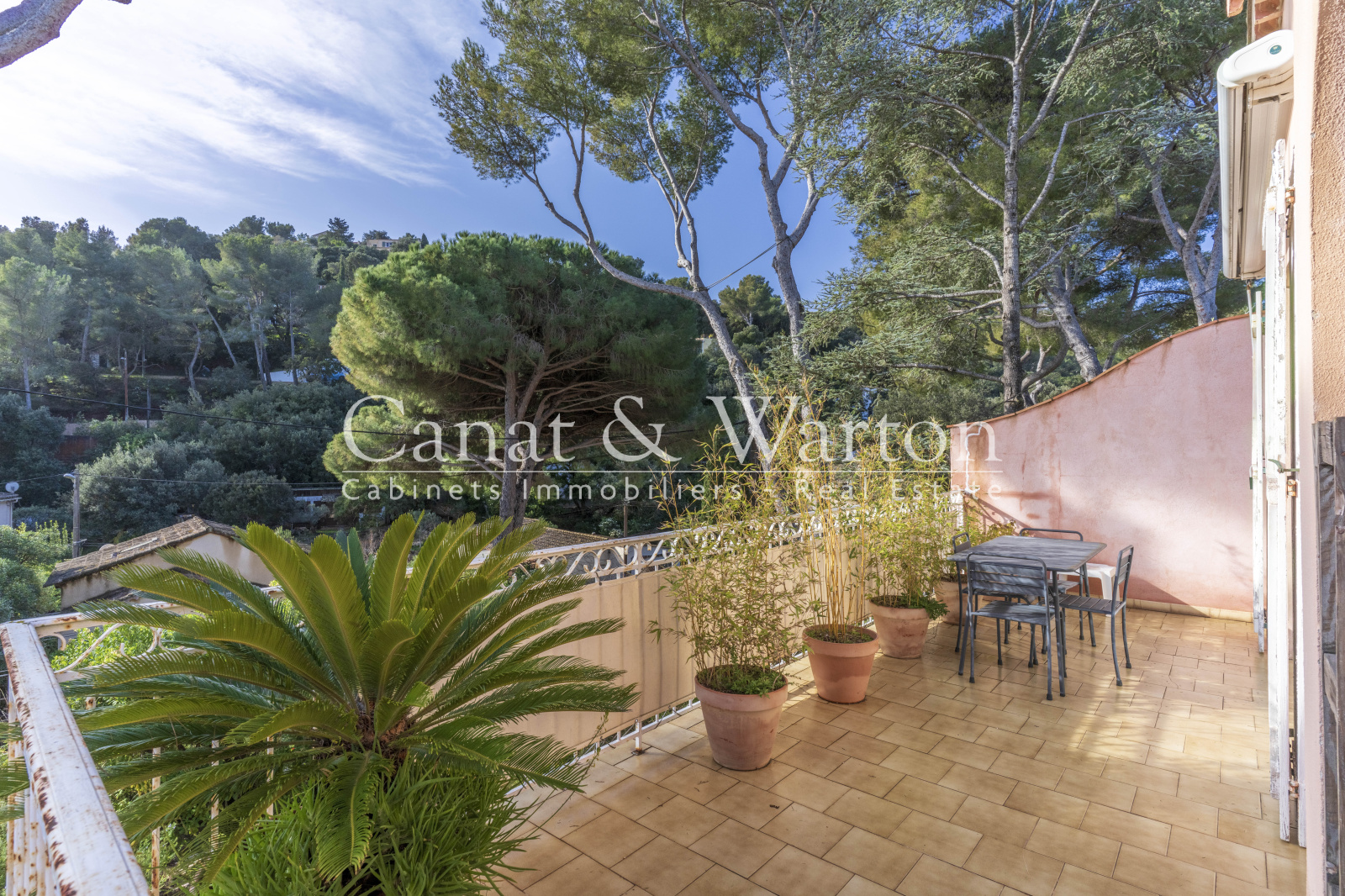 À l'arrière, une terrasse couverte prolonge harmonieusement les espaces de vie et invite à profiter pleinement des douces soirées méditerranéennes.
