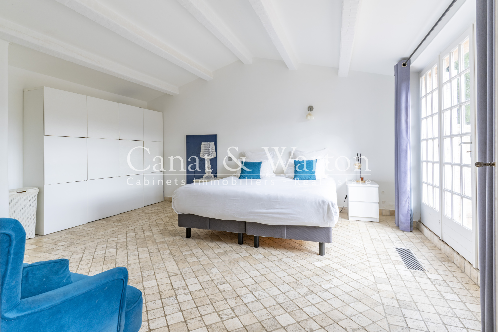 Espaces nuit pensés pour l'intimité. Au rez-de-chaussée, une suite avec salle d'eau, une deuxième suite avec salle d'eau et hamman, une chambre et wc séparés.