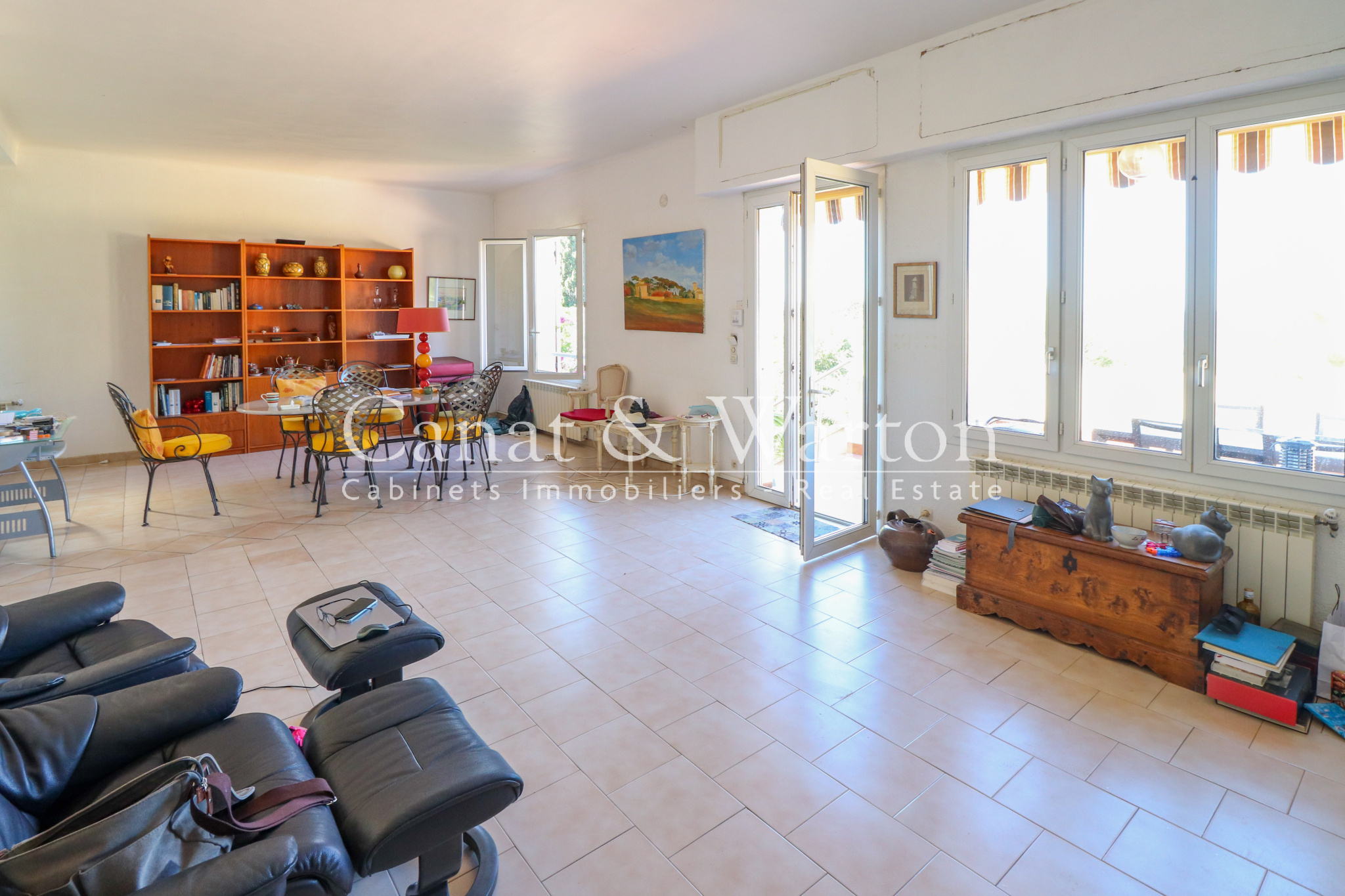 CANAT & WARTON Golfe de Saint Tropez presents this villa in Rayol-Canadel with panoramic sea views. Ideally located just a short walk from the sea, this villa offers approximately 200 sq m of living space on two levels, set on a 1903 sq m landscaped plot. It comprises a spacious living room opening onto a large terrace of over 40 sq m, a separate kitchen, a bedroom with a dressing room, a shower room, and a WC. On the garden level are two independent apartments, one a one-bedroom (T2) and the other a two-bedroom (T3). A garage is also included. The property boasts a magnificent landscaped garden. Numerous renovation possibilities or the potential for new construction are available. A complete brochure is available upon request. Flavien GRANDMAIRE, director of the CANAT & WARTON Golfe de Saint Tropez agency, can be reached at 143 Rue du Port, 83240 Cavalaire, France (+33)647524642, canatwartoncavalaire@gmail.com. We speak English - We speak German. Information on the risks to which this property is exposed is available on the Géorisques website: www.georisques.gouv.fr. 2 REAL ESTATE AGENCIES IN THE GULF OF SAINT-TROPEZ: CAVALAIRE AND LA CROIX-VALMER